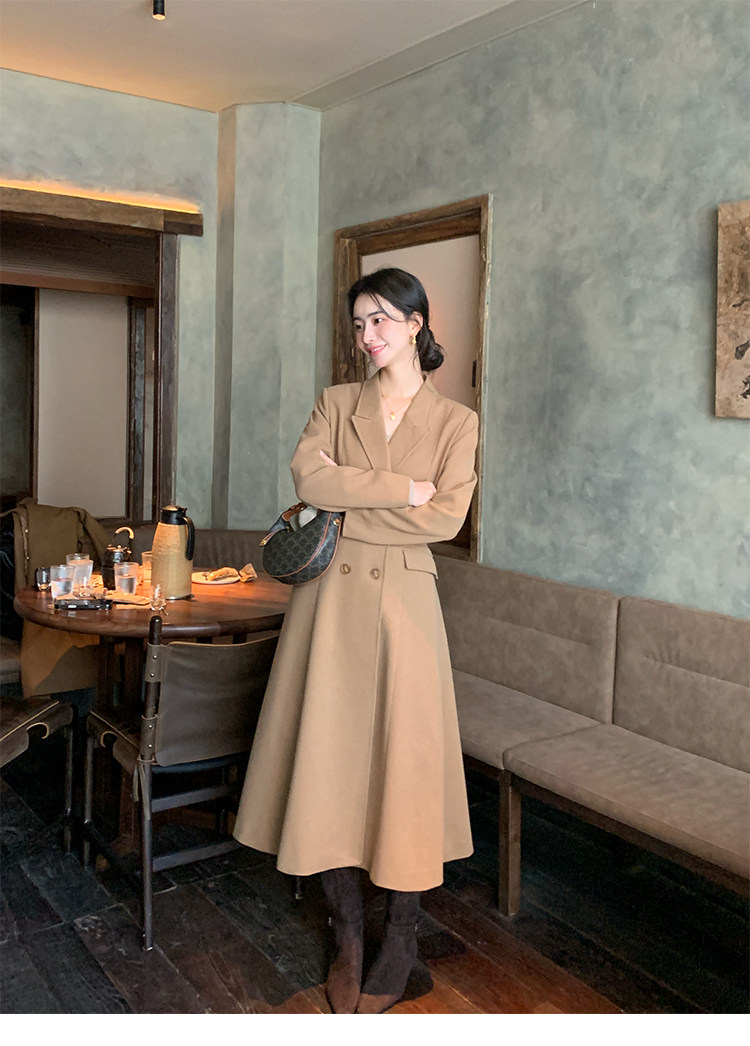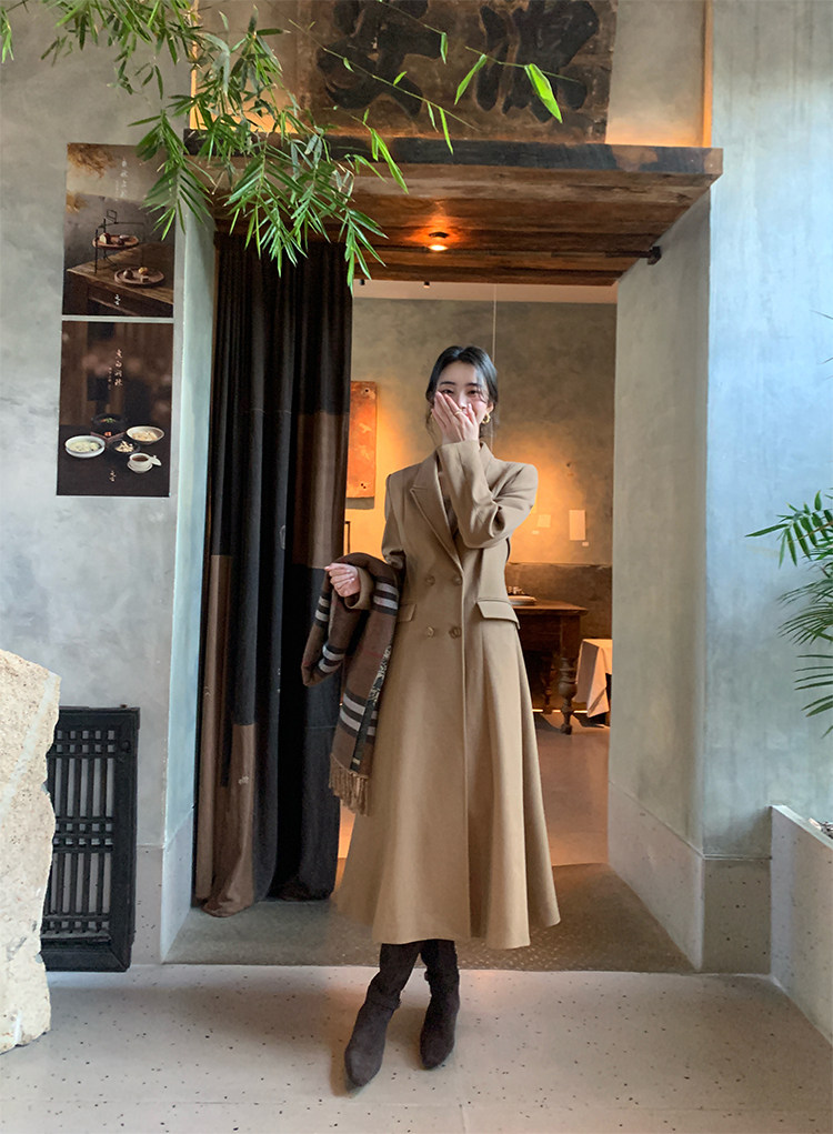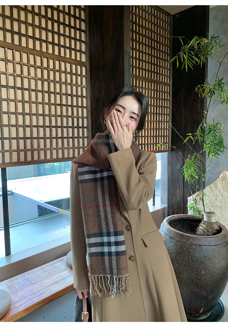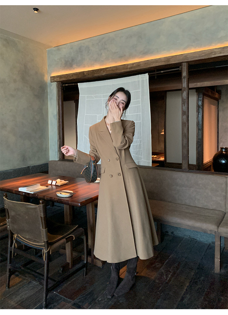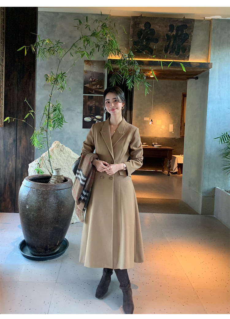 Pusumede Black Hepburn-Style Woolen Coat for Women, High-End, Waist-Cinching, Slimming, Long, Elegant Woolen Coat