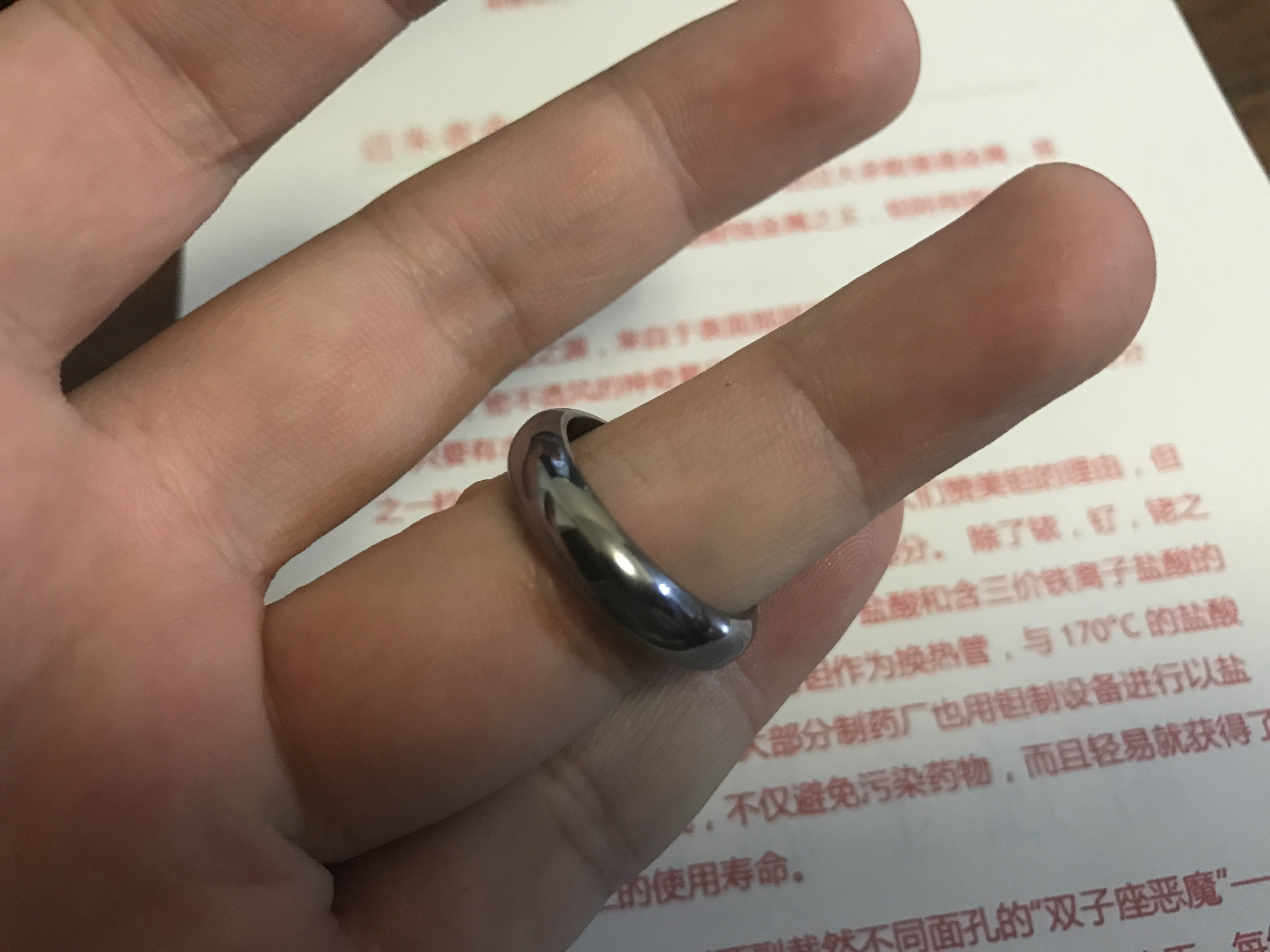佩戴时注意保护则可以保持长期的镜面表面,但是,如果不注意保护到处蹭,那任何金属戒指,不管多硬,一天下来基本都会刮花的!