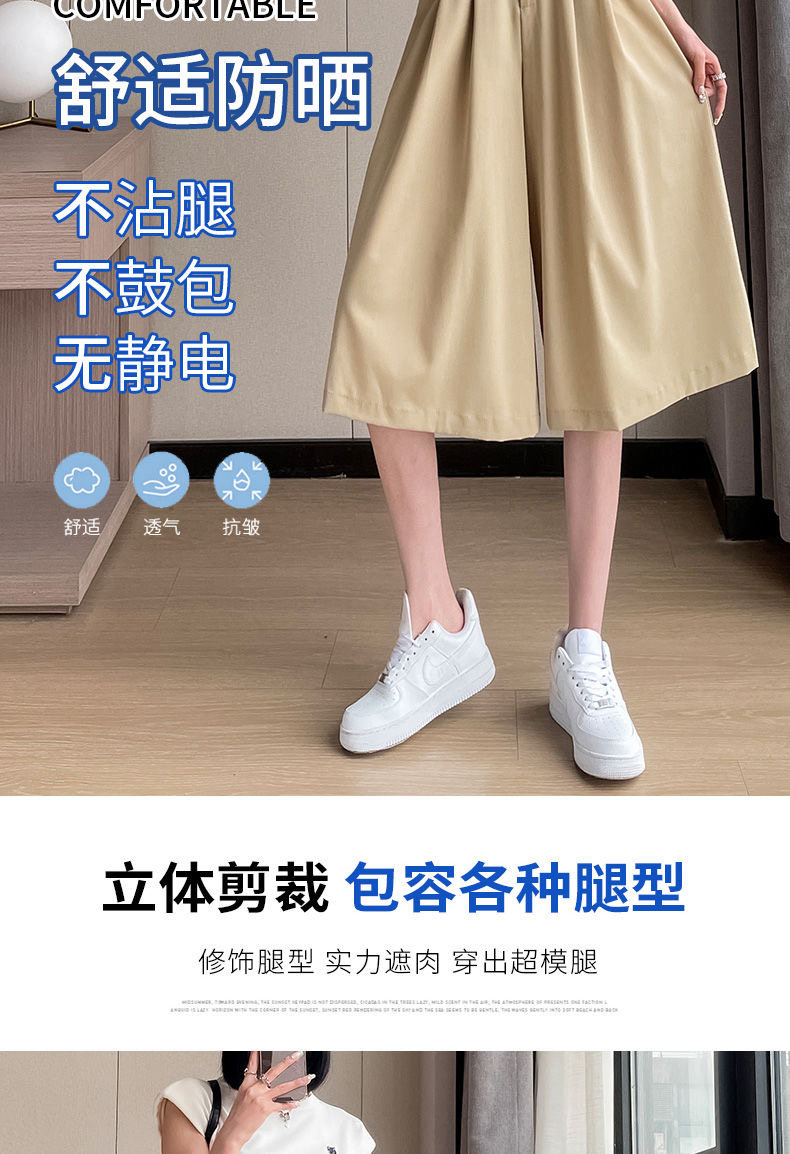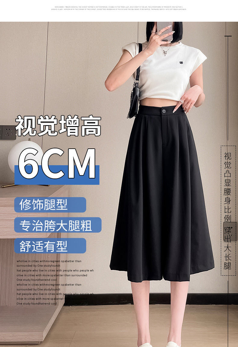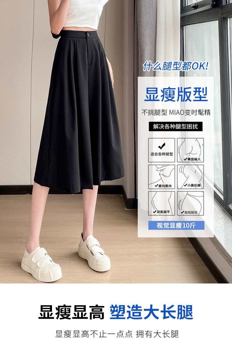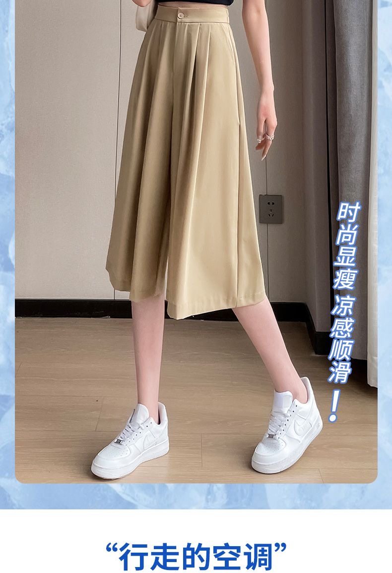 Women's Suit Capri Pants 2023 Summer New Korean Style High-Waisted Ice Silk Wide-Leg Pants Loose Casual Slimming Skirt Pants