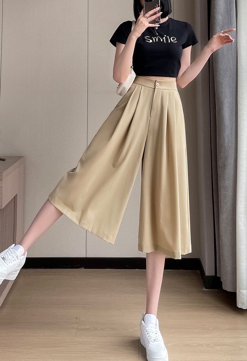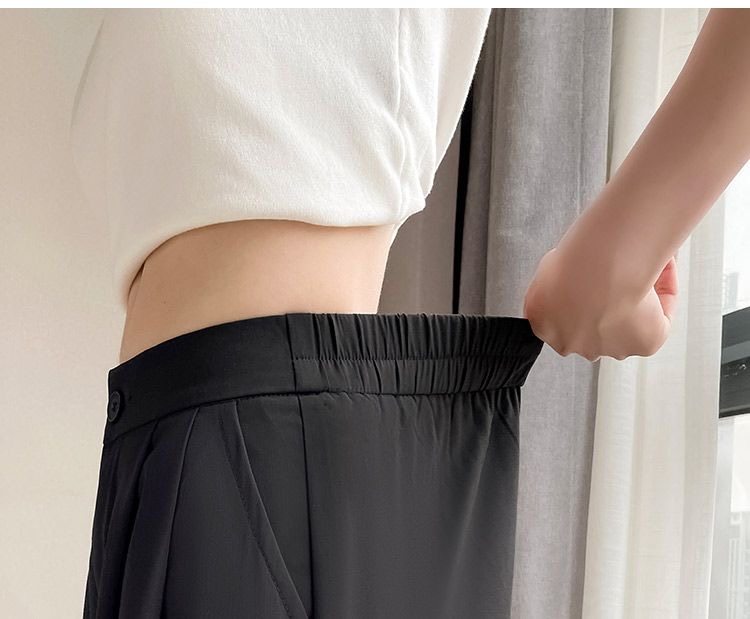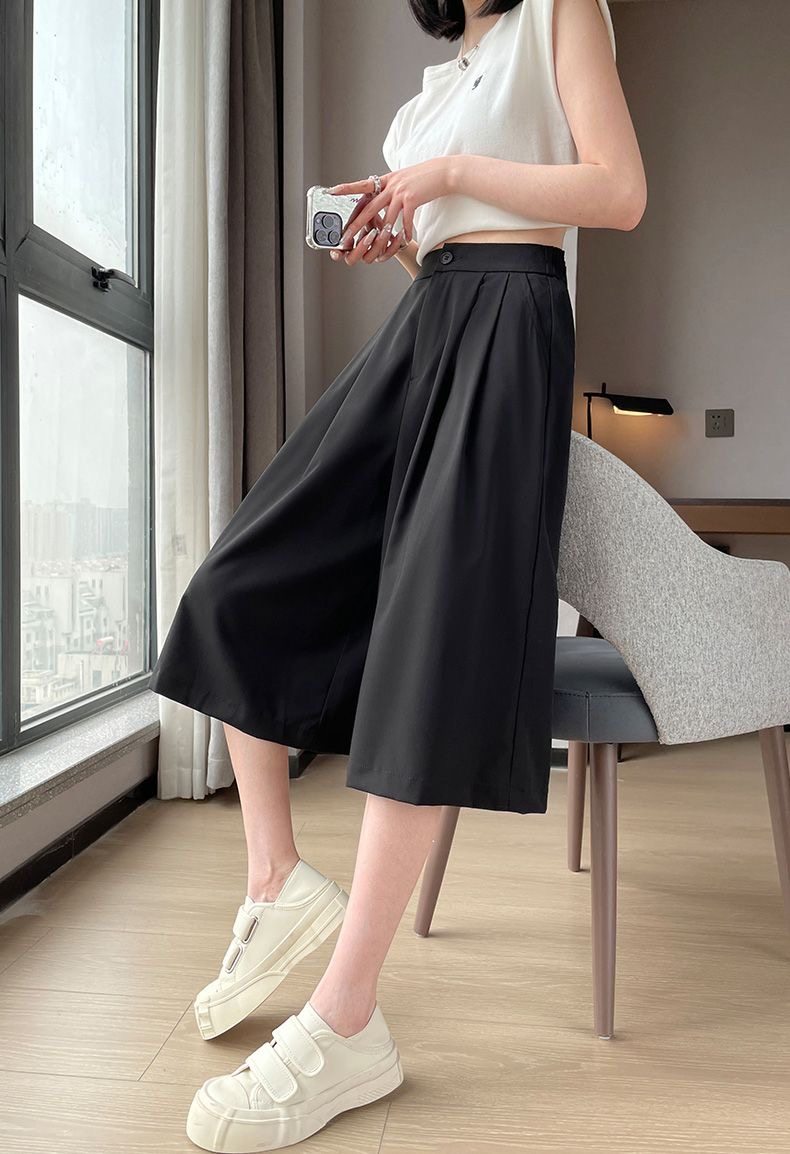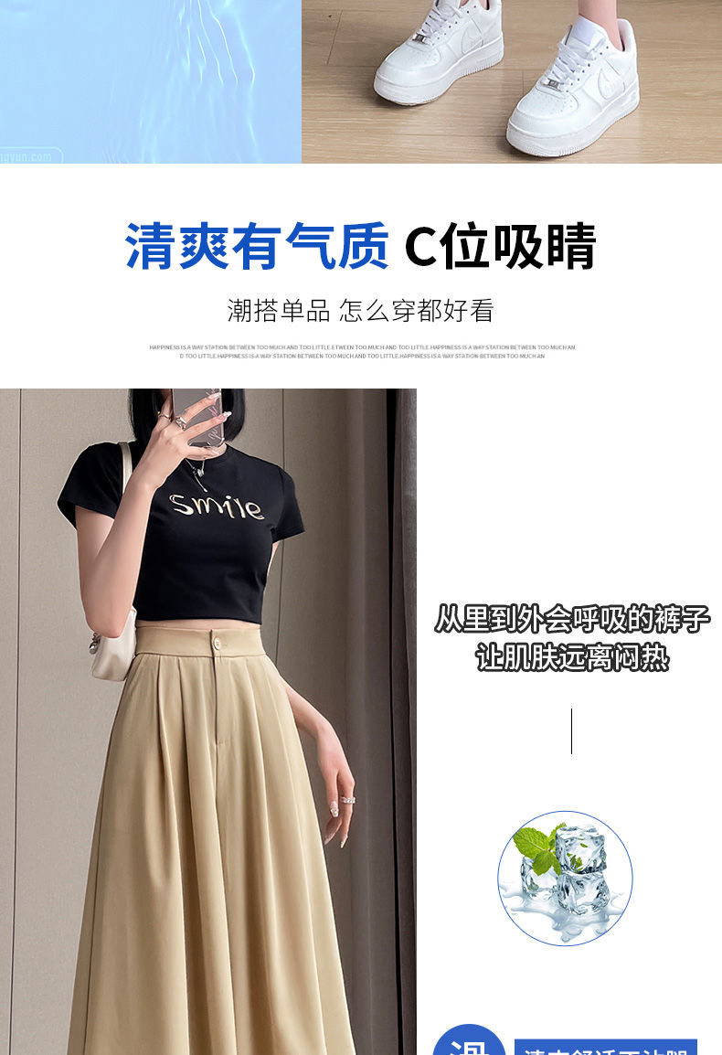 Women's Suit Capri Pants 2023 Summer New Korean Style High-Waisted Ice Silk Wide-Leg Pants Loose Casual Slimming Skirt Pants