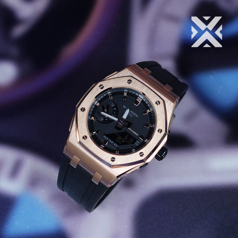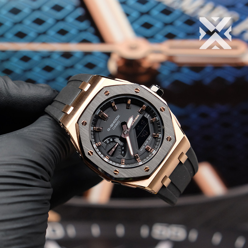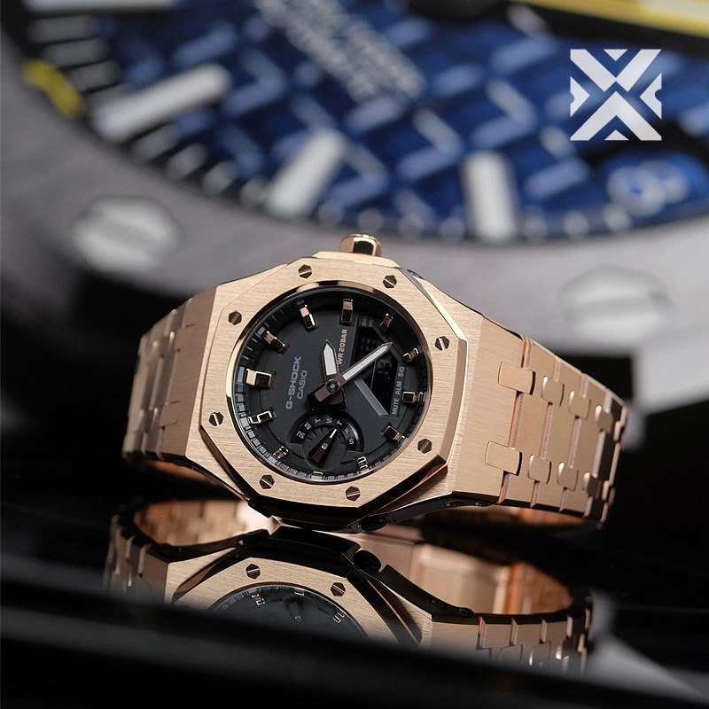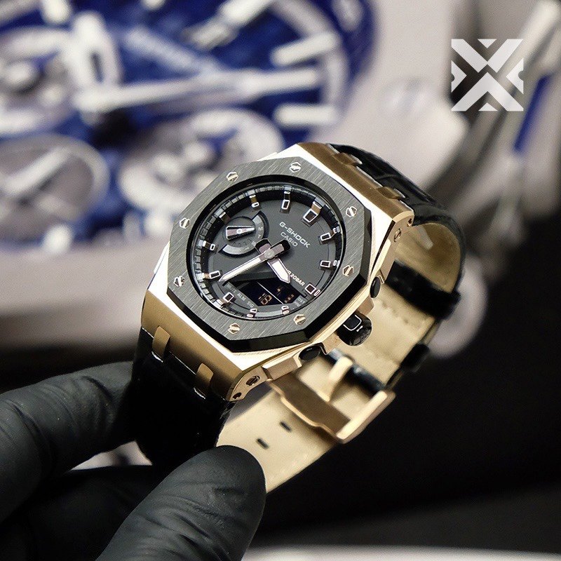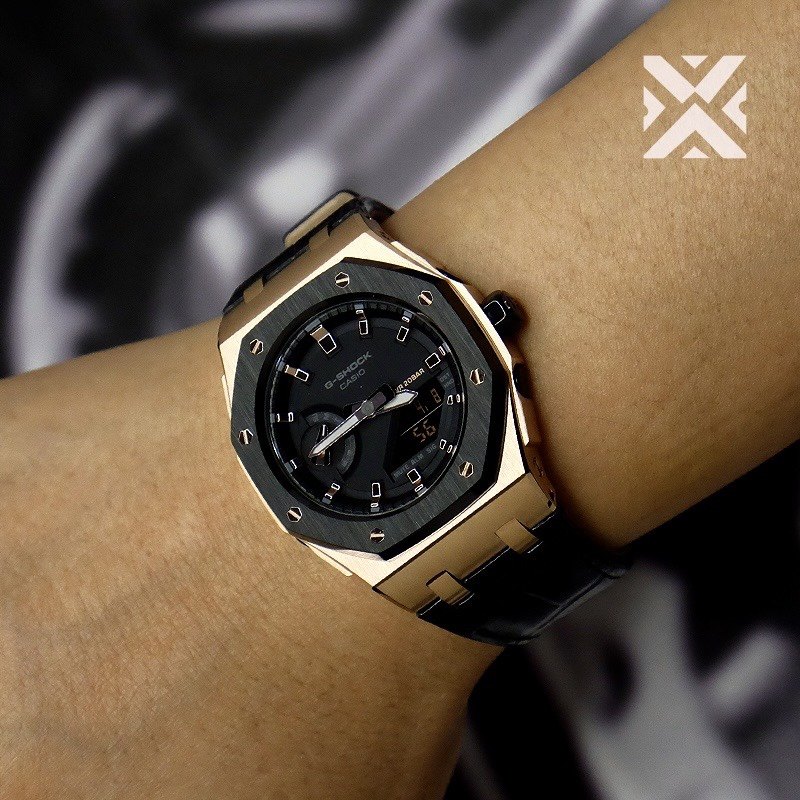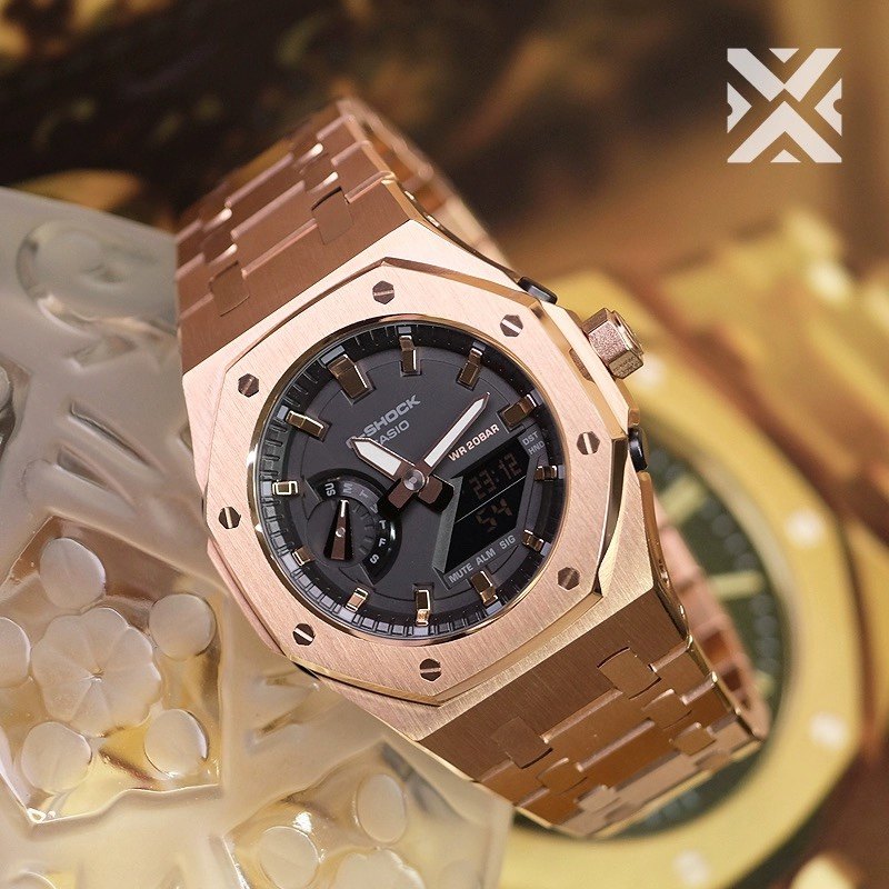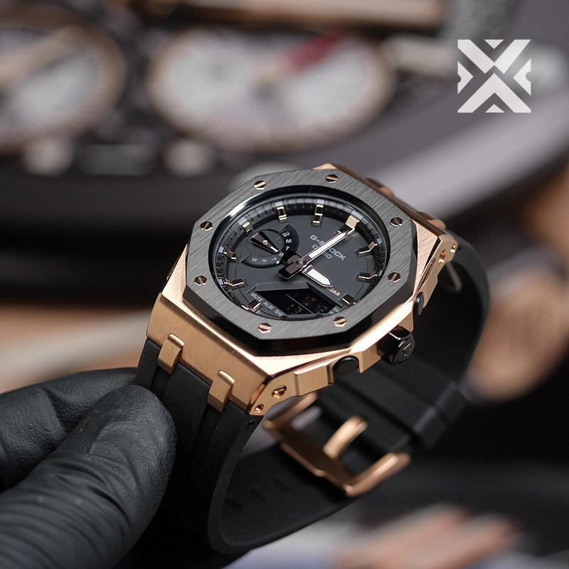 2025 New Model Gmas2100 Modification Parts Farmhouse Oak Finished Watch Black Rose Gold Case Small Black Gold Offshore