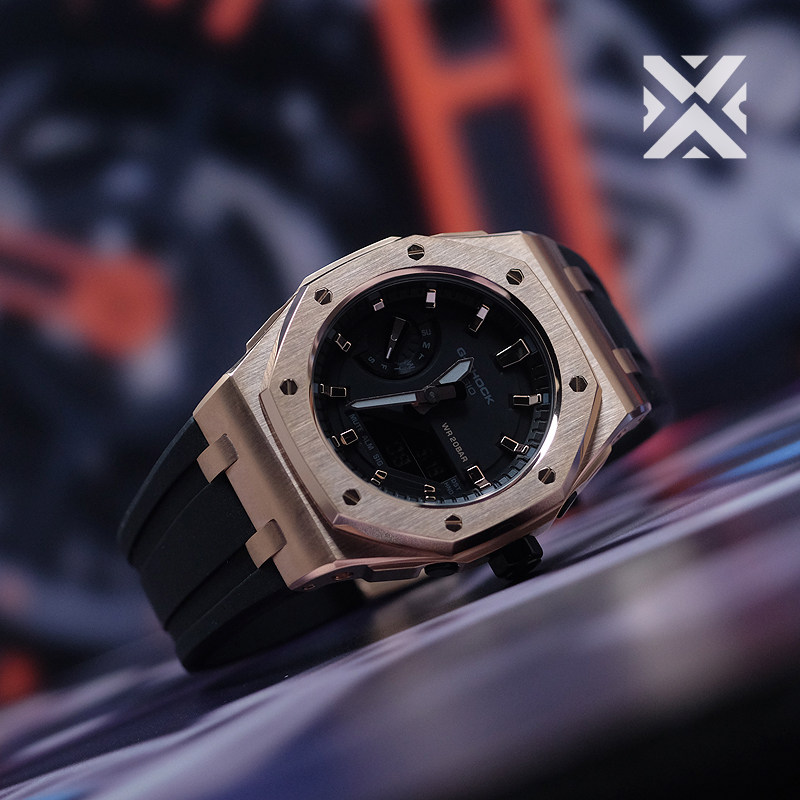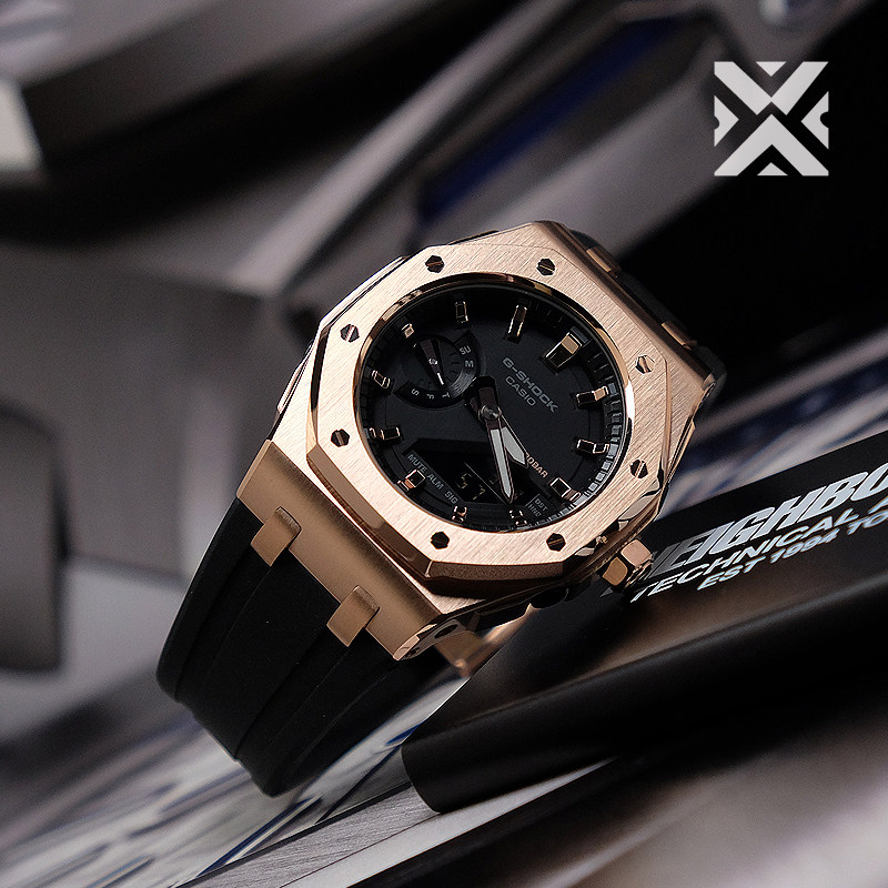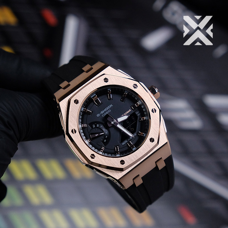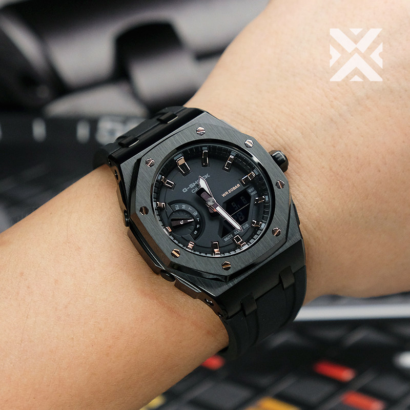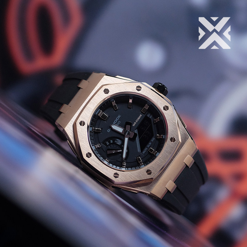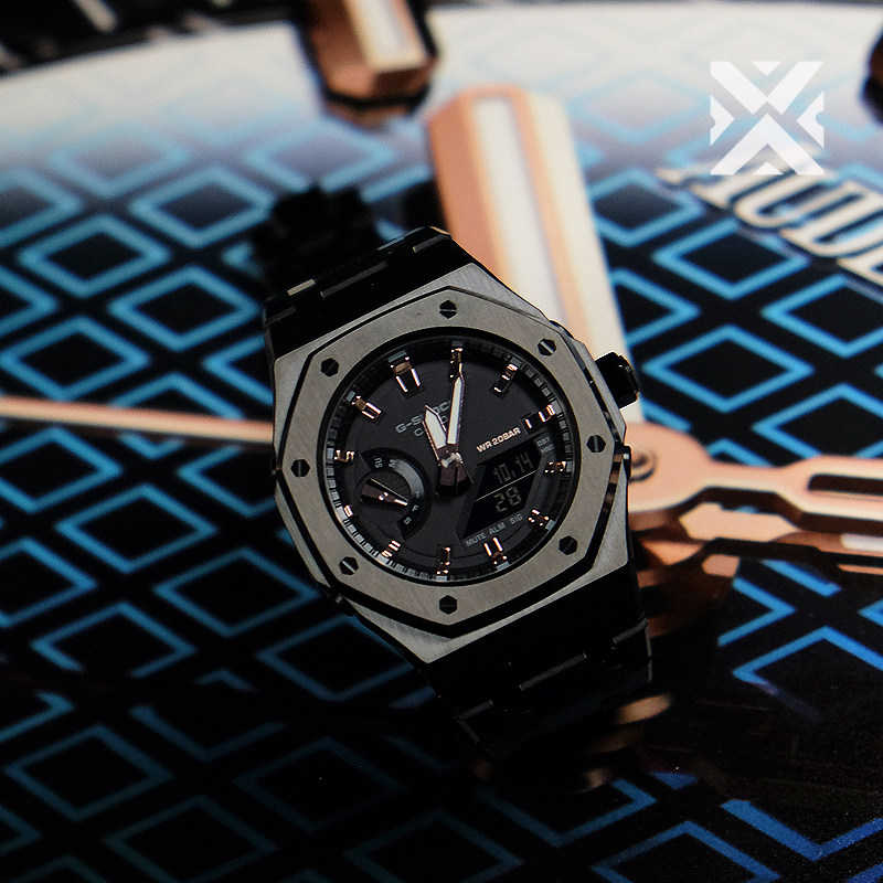 2025 New Model Gmas2100 Modification Parts Farmhouse Oak Finished Watch Black Rose Gold Case Small Black Gold Offshore