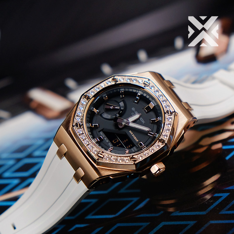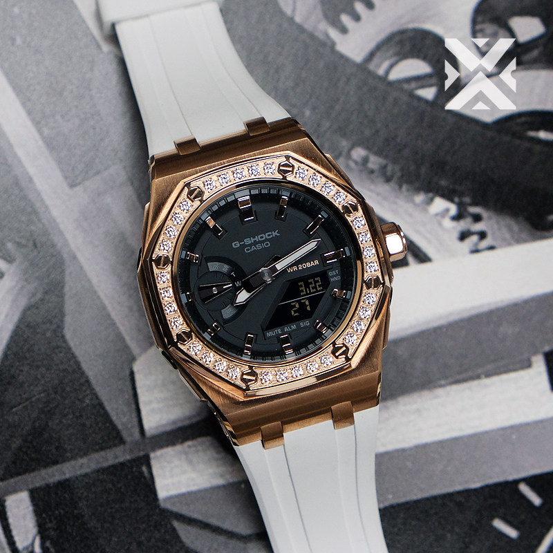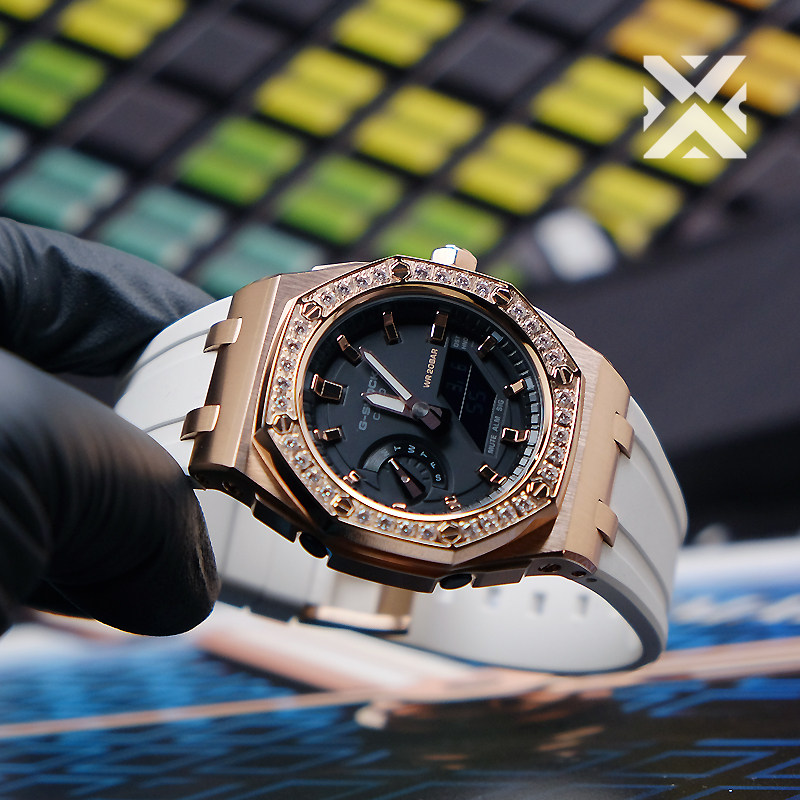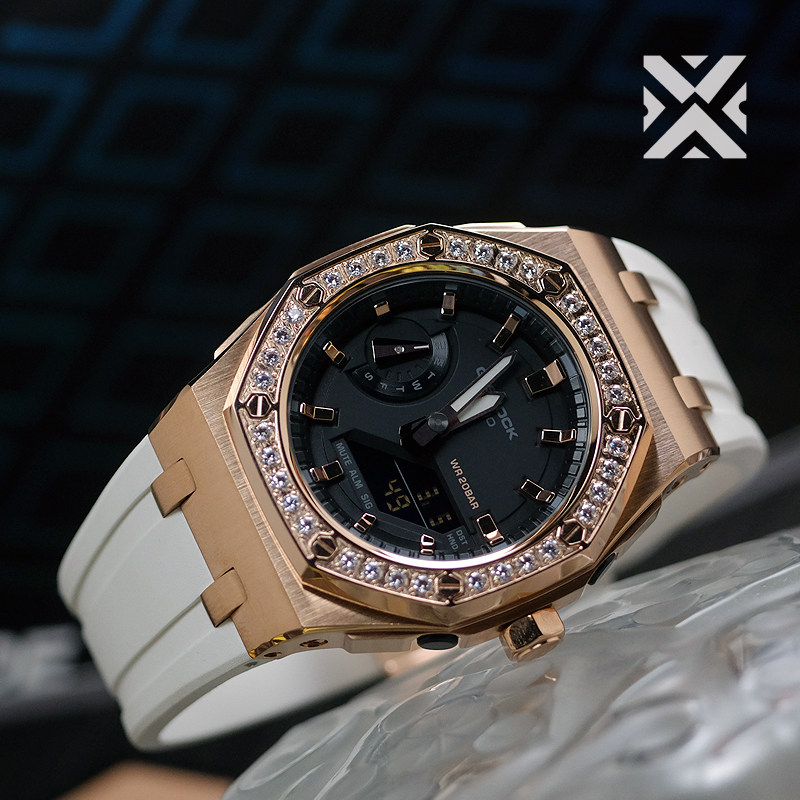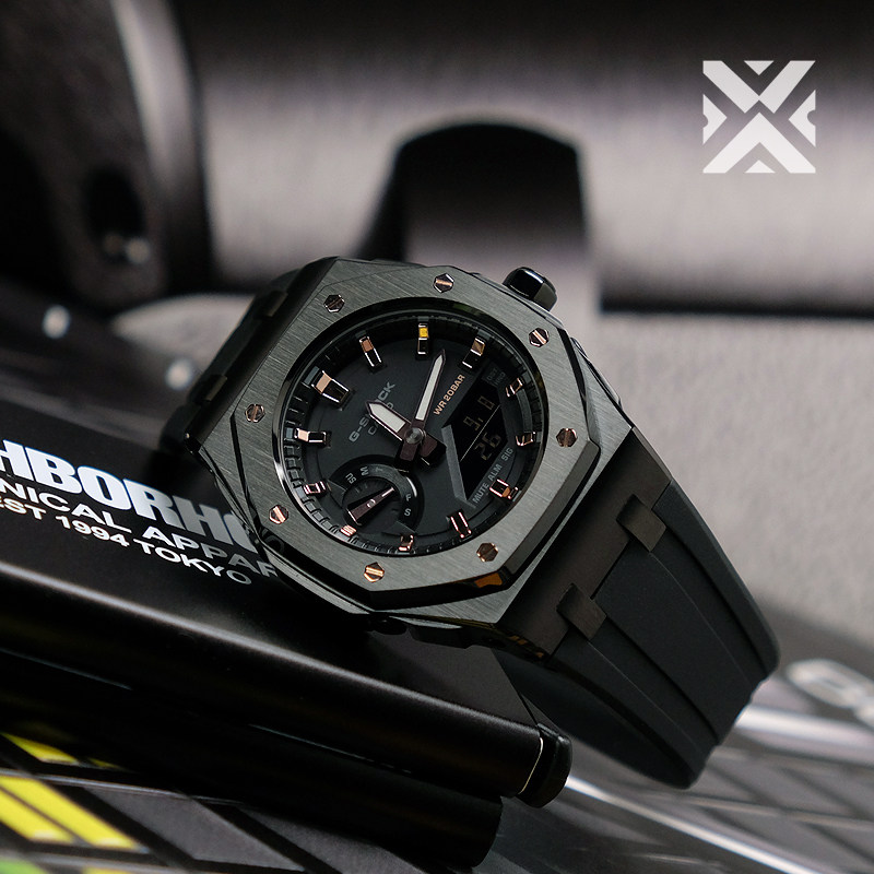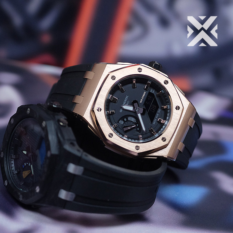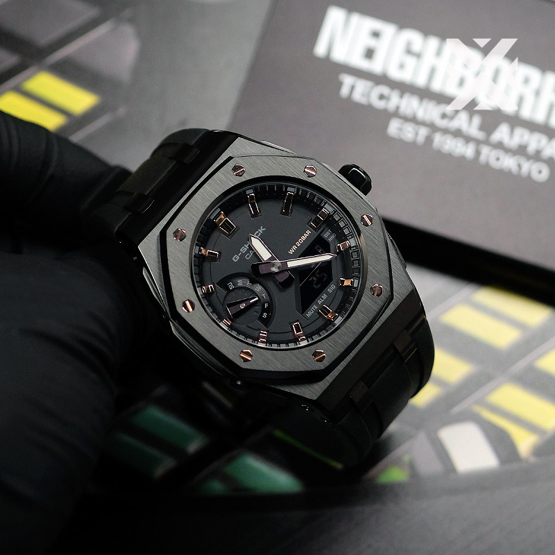 2025 New Model Gmas2100 Modification Parts Farmhouse Oak Finished Watch Black Rose Gold Case Small Black Gold Offshore