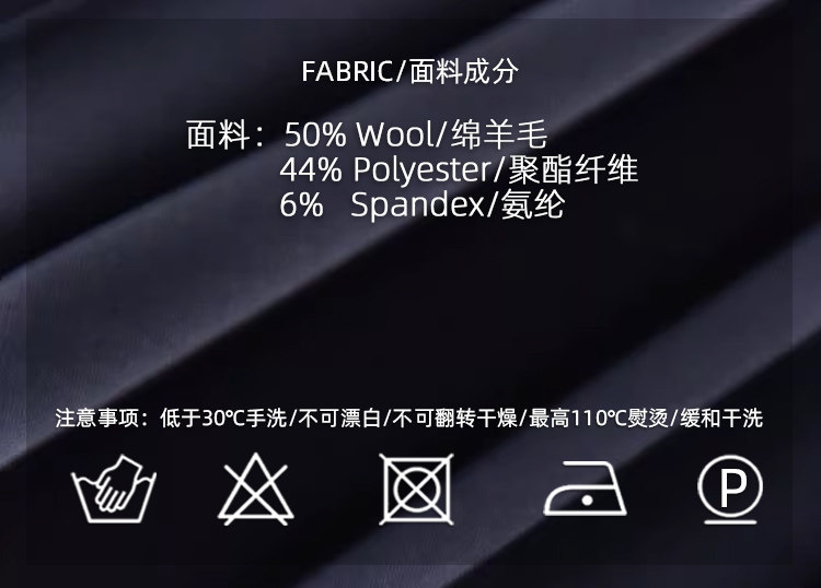 50%羊毛 44%聚酯 6%氨纶