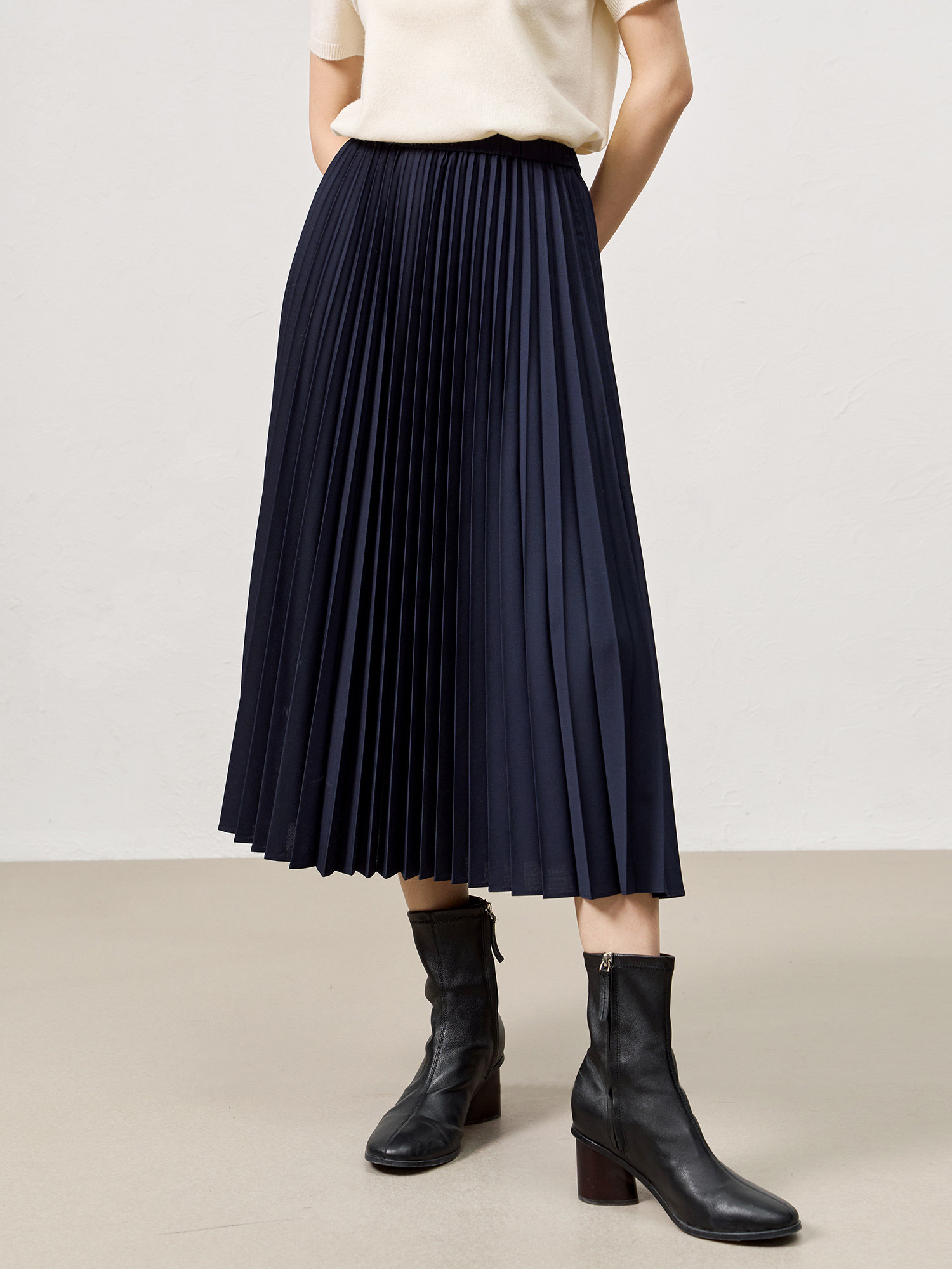 百褶半裙,能给身材最大优化,随着步履展现灵动飘逸