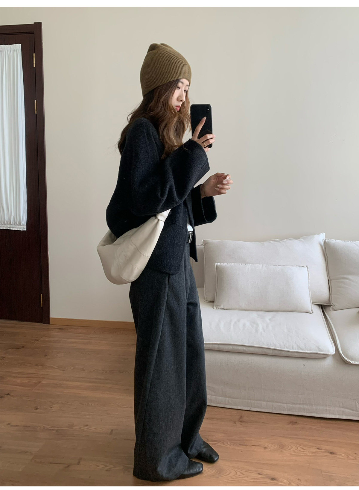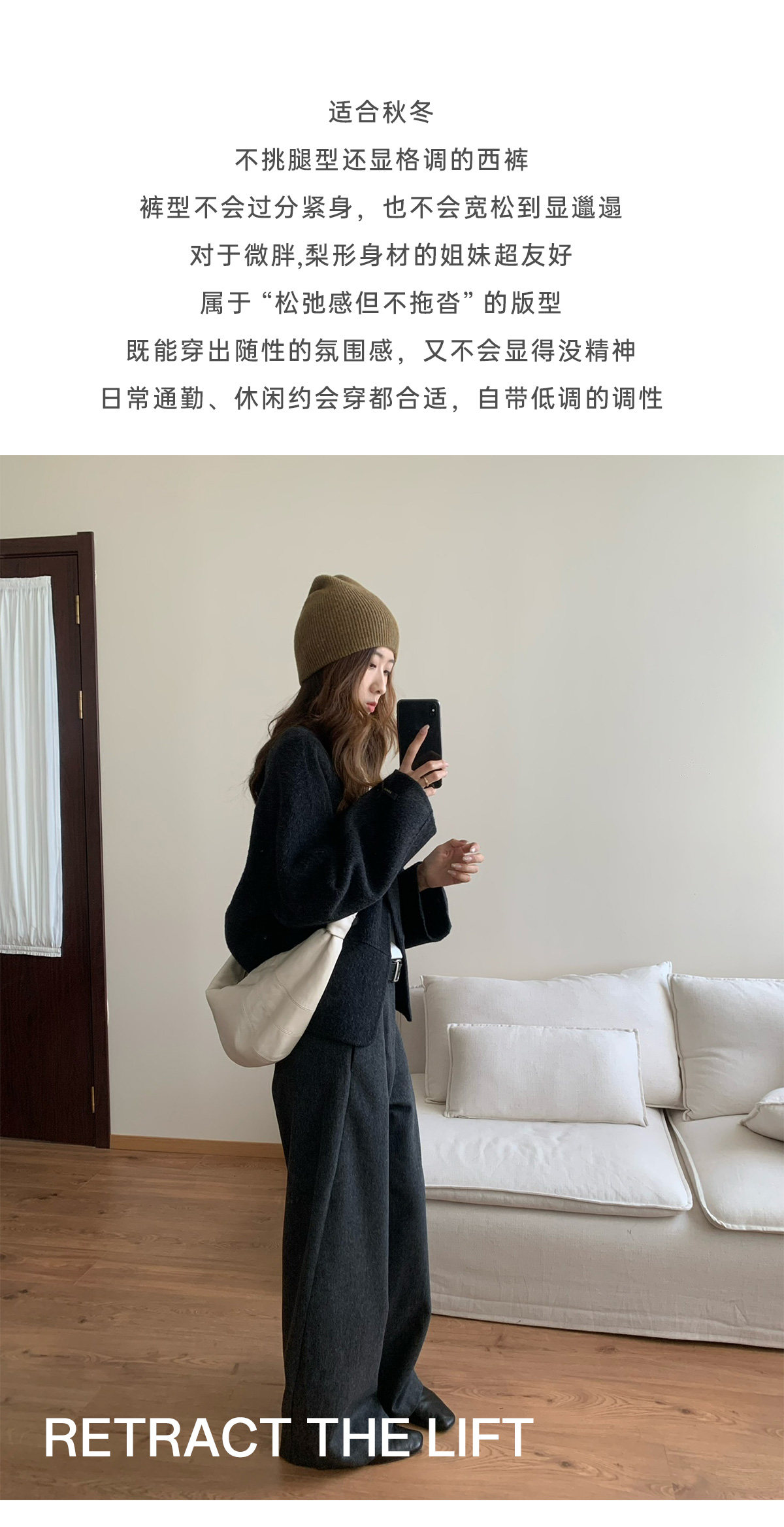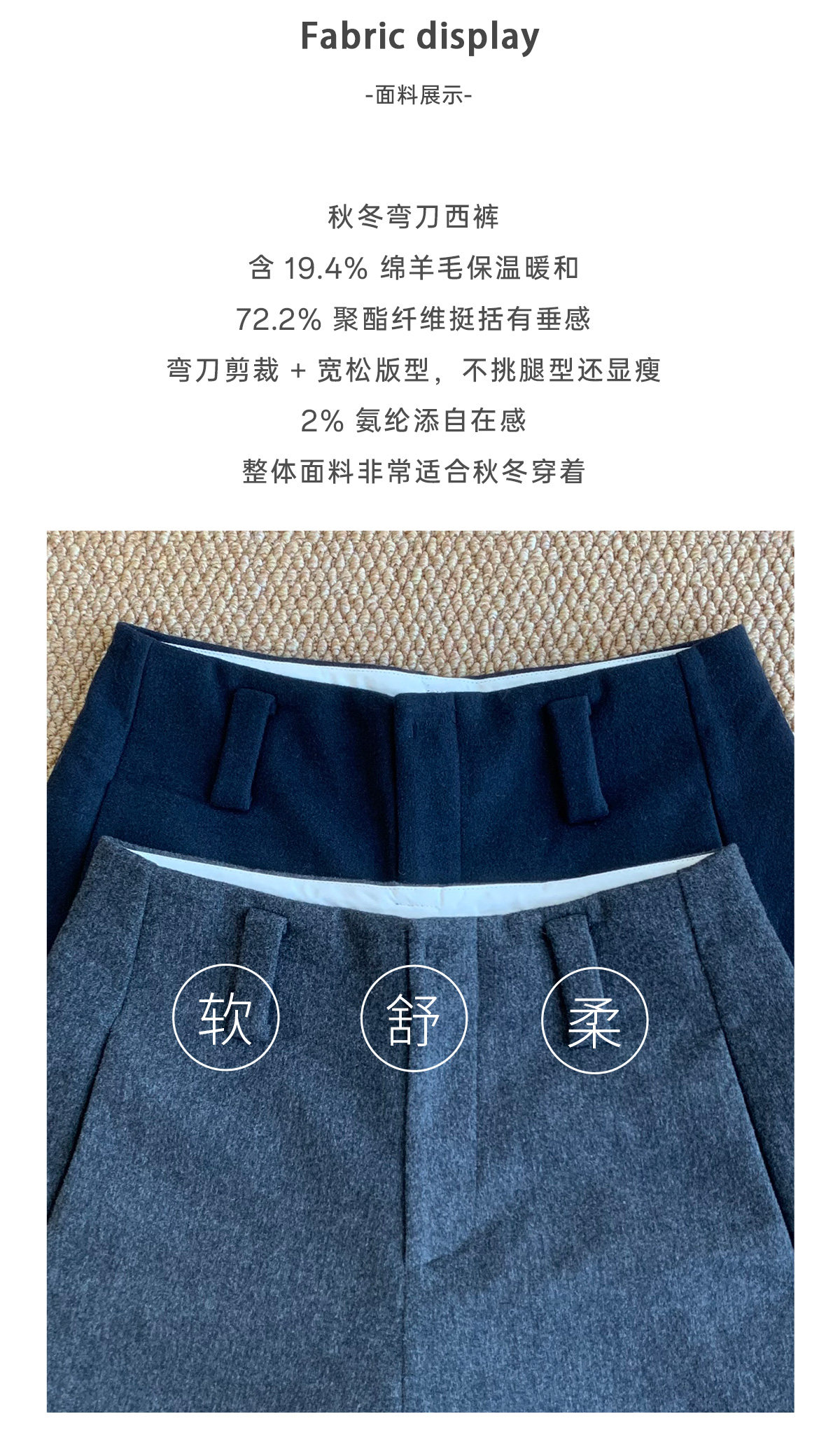 Wool Scimitar Pants for Women, Autumn Style, Work Pants, High-Waisted, Casual Wide-Leg Suit Pants, Banana Sickle Pants 582