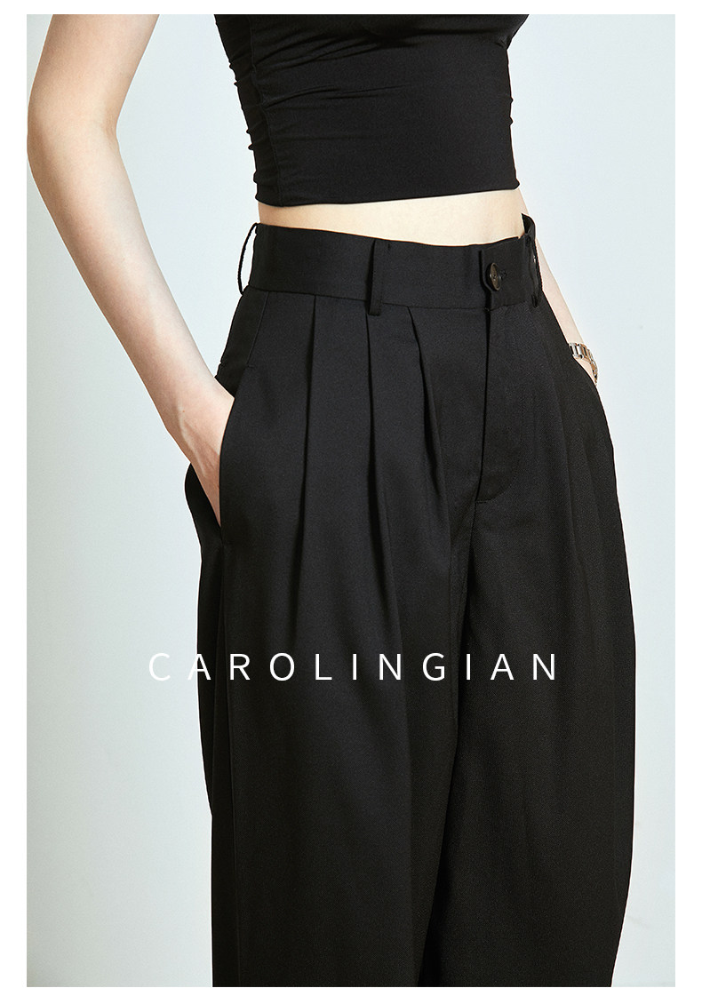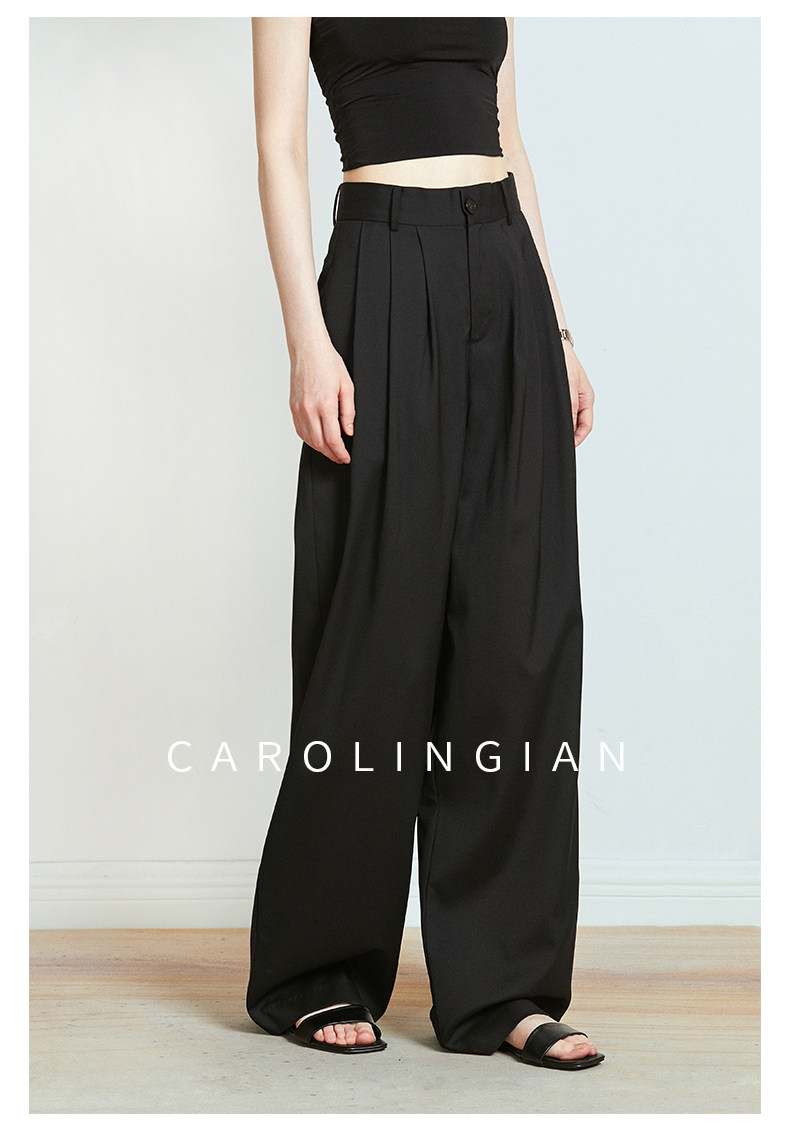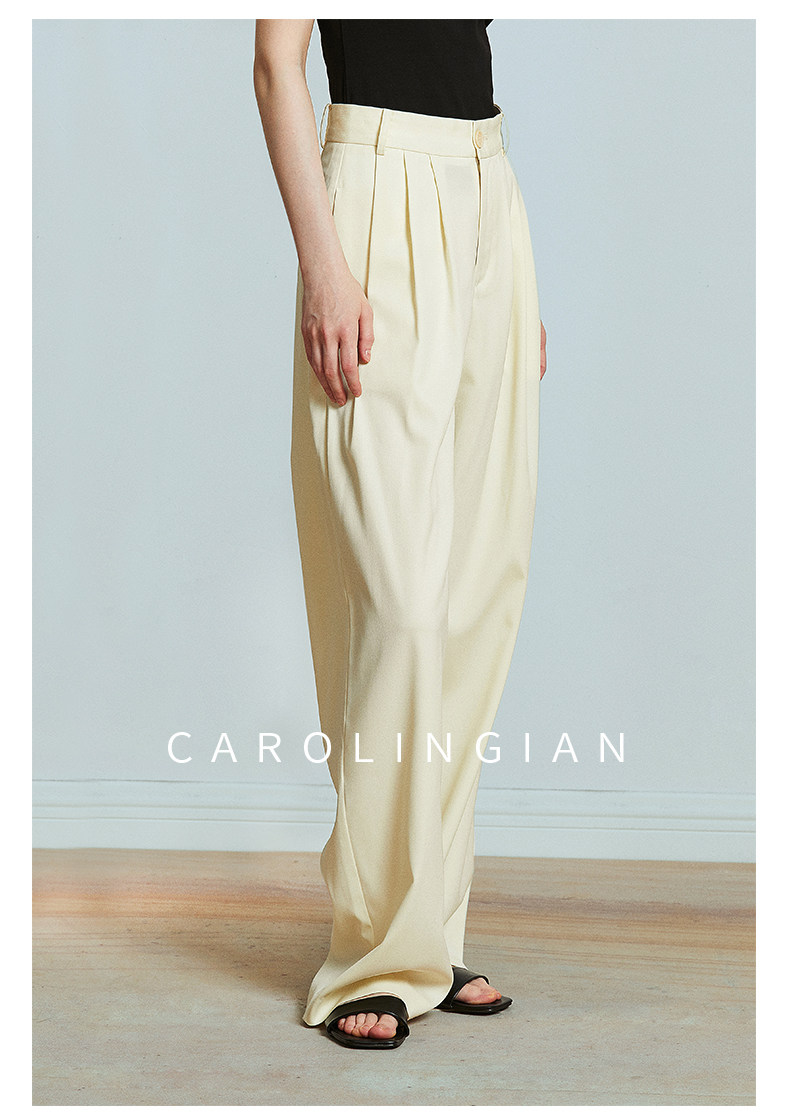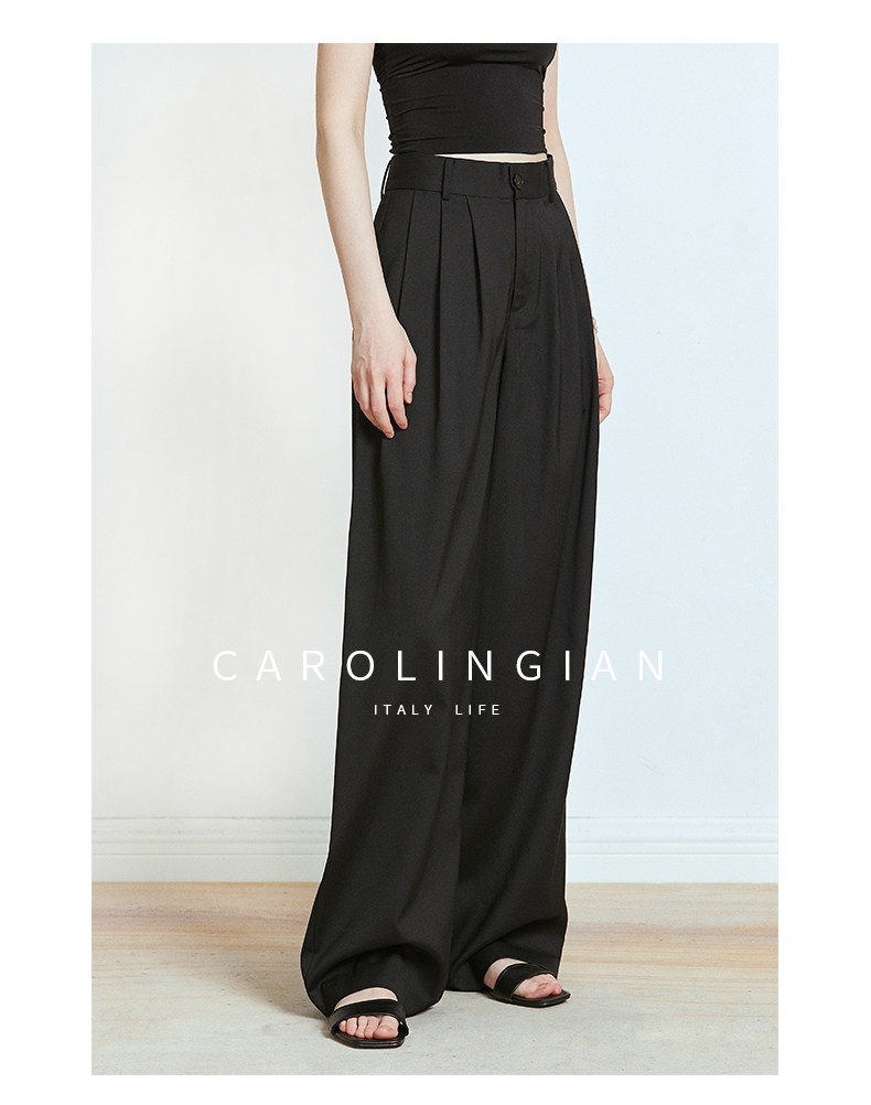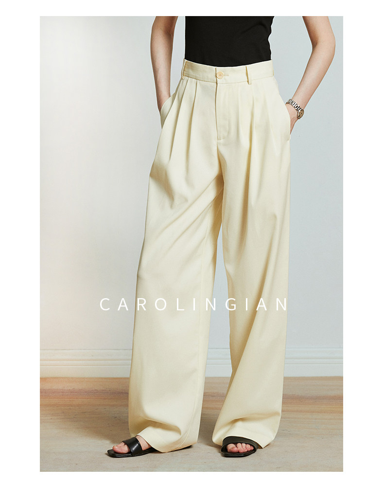 Carolingian Relaxed Style B! Fine-Spun Japanese Acetate Wool Loose Wide-Leg Pants, Elegant and Slimming Dress Pants