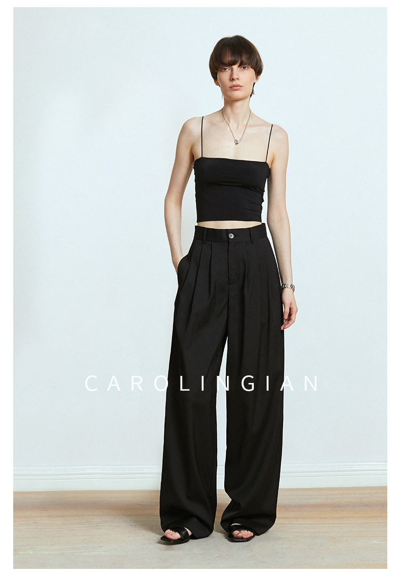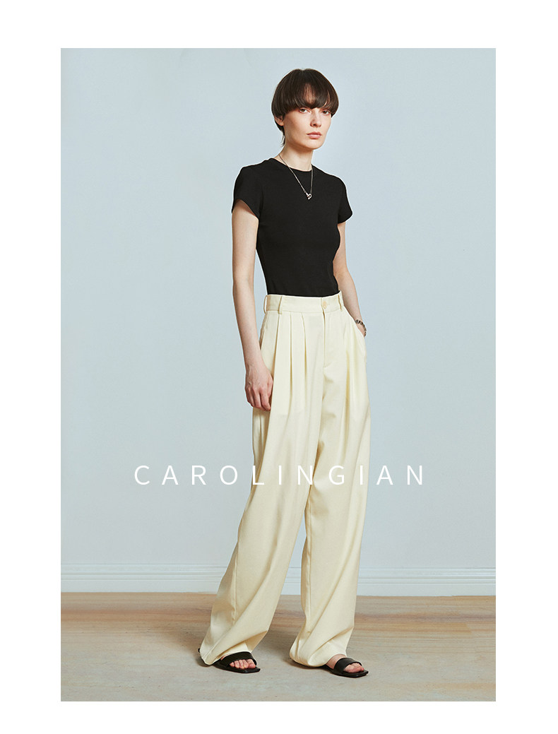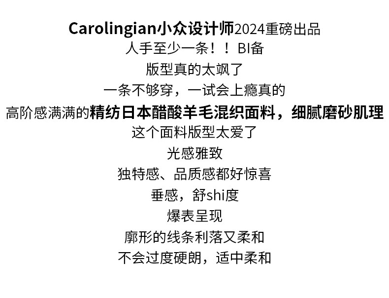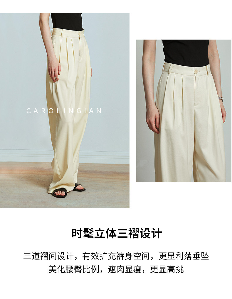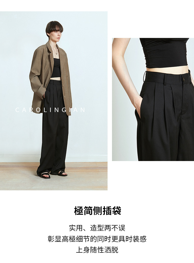Carolingian Relaxed Style B! Fine-Spun Japanese Acetate Wool Loose Wide-Leg Pants, Elegant and Slimming Dress Pants