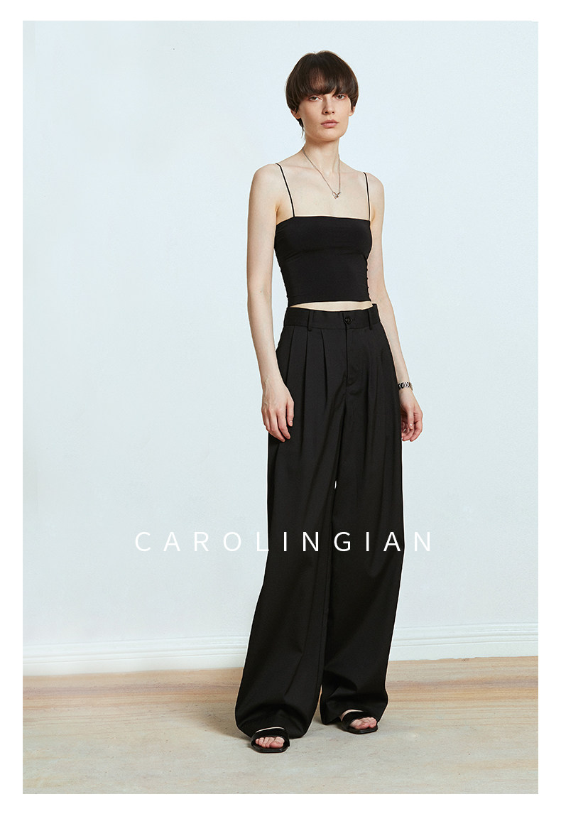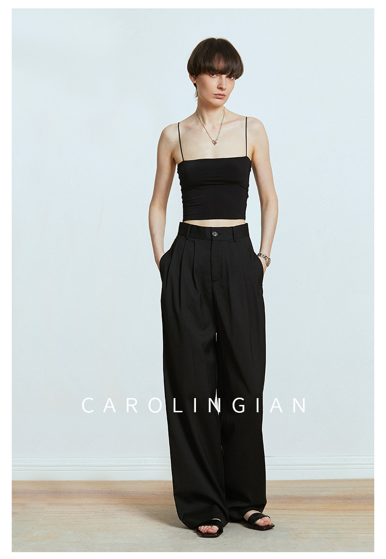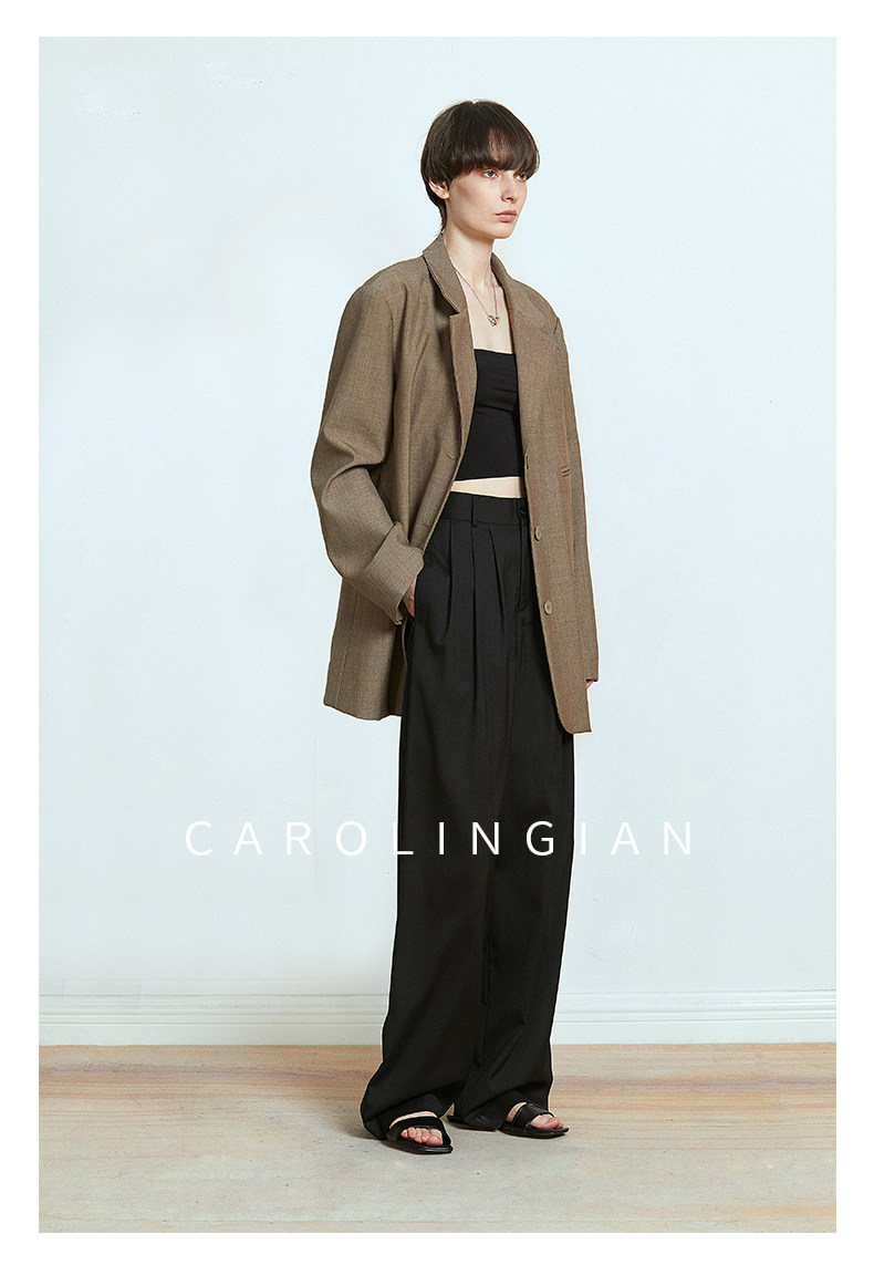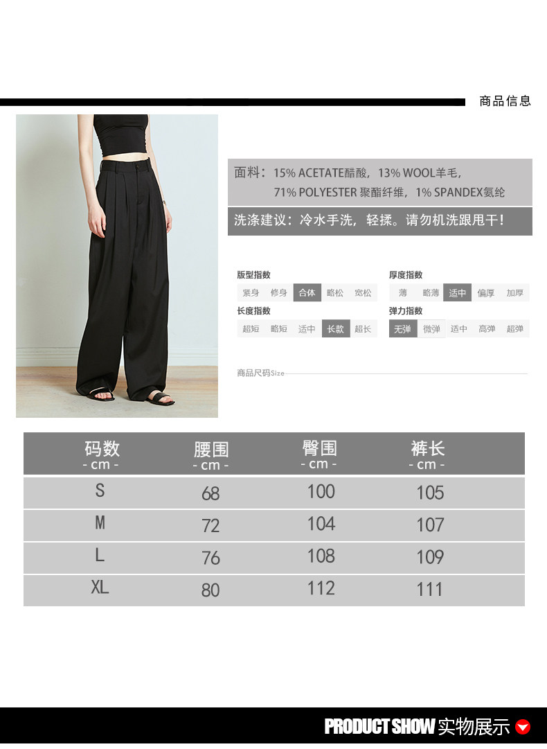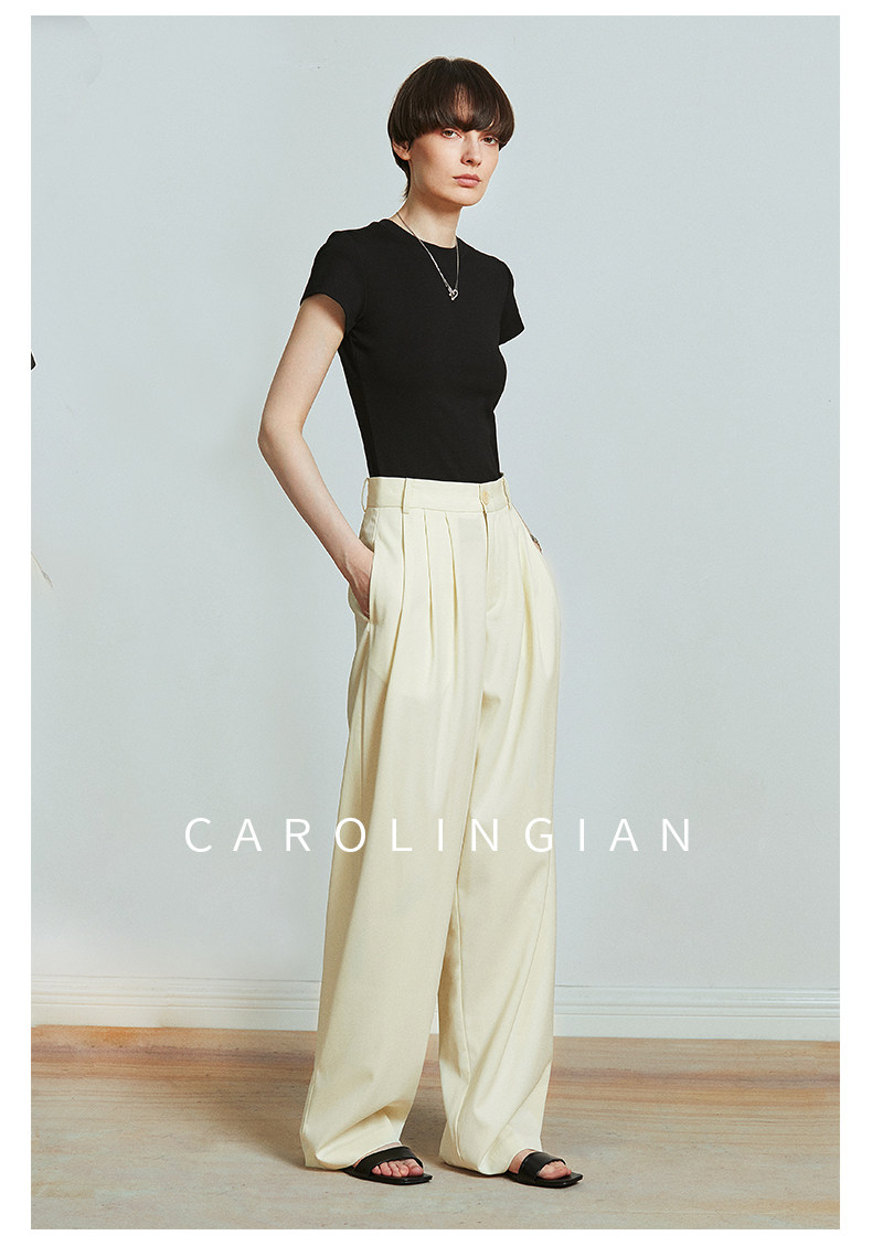 Carolingian Relaxed Style B! Fine-Spun Japanese Acetate Wool Loose Wide-Leg Pants, Elegant and Slimming Dress Pants
