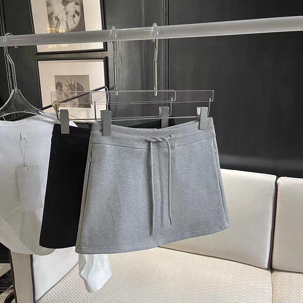 Fasc LAOSHU Casual Sports Gray Short Skirt for Women, Black A-Line Skirt, Sweatshirt Skirt, Half Skirt for Women, Autumn Hip-Hugging Half Skirt