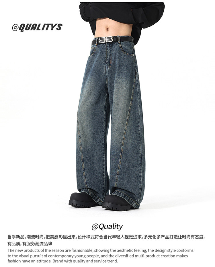 Wassup Tenet American Retro Scimitar Pants for Men and Women, Niche Design, Wide-Leg, Loose, Cool and Stylish Jeans