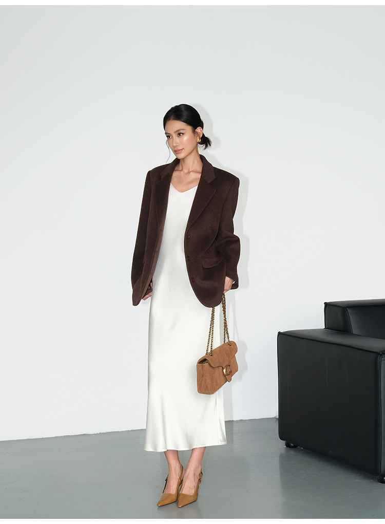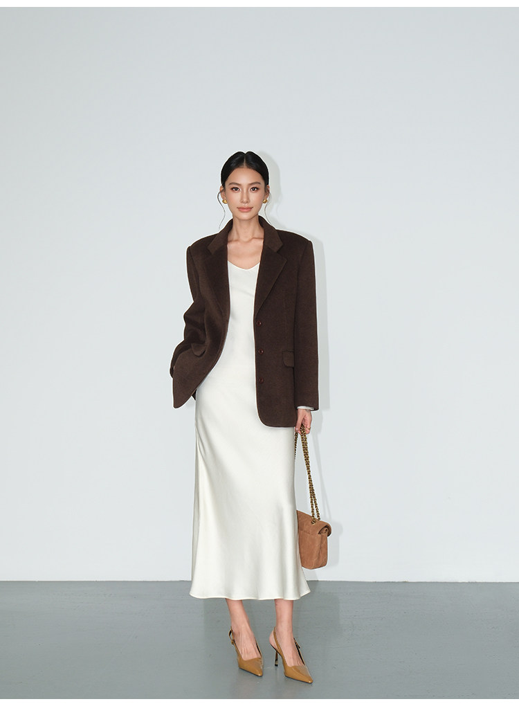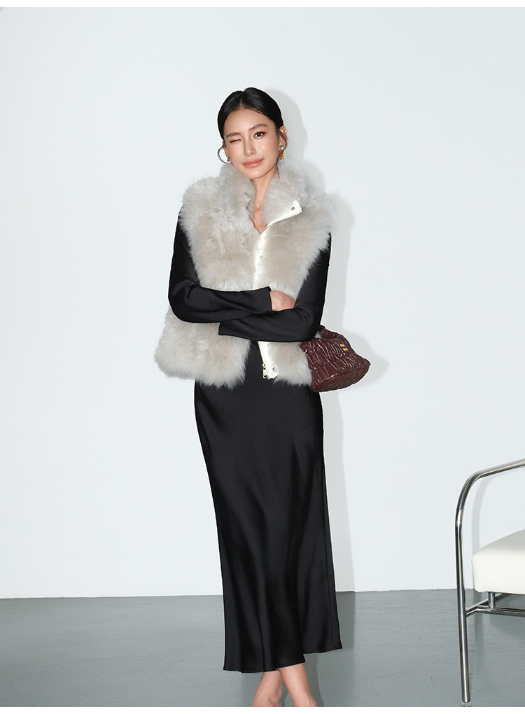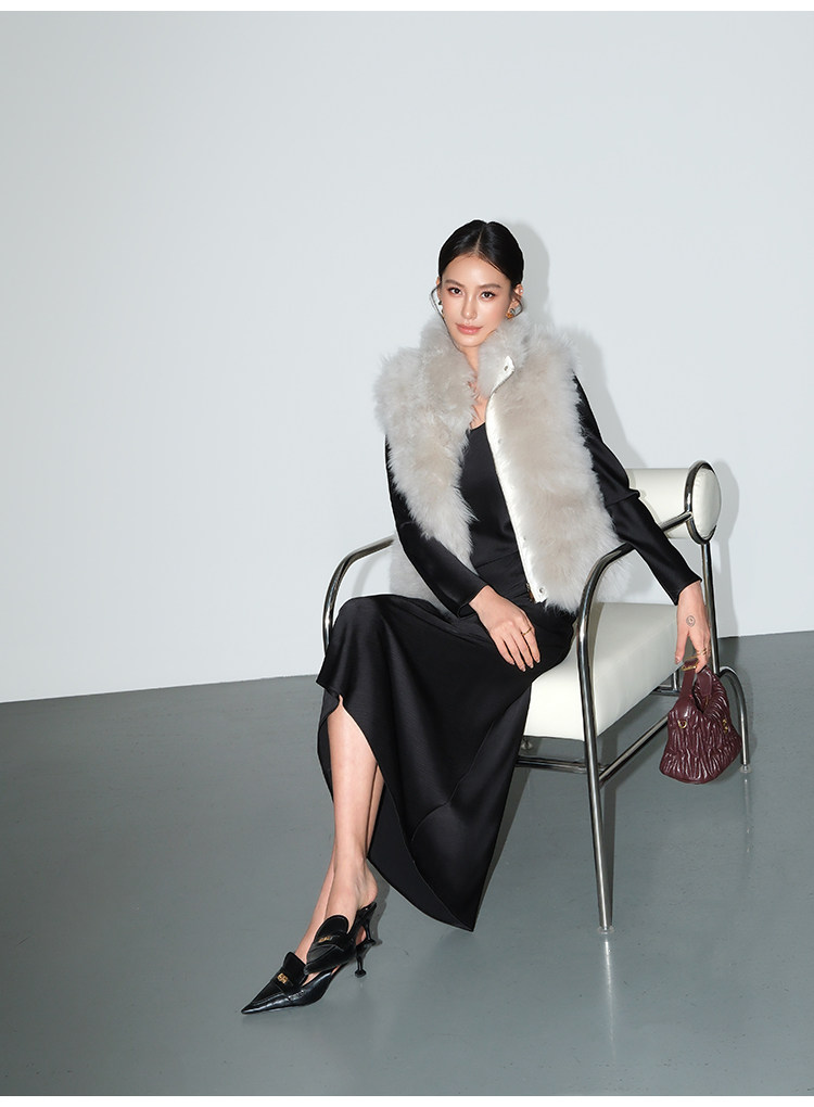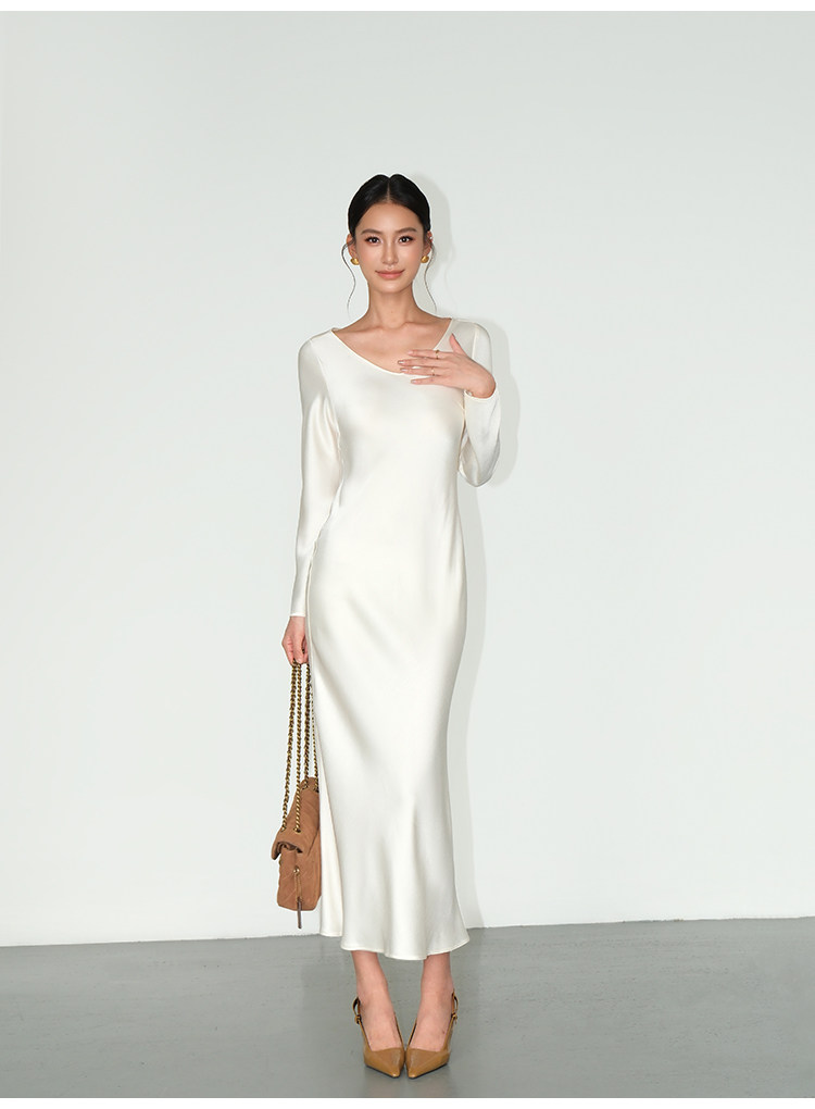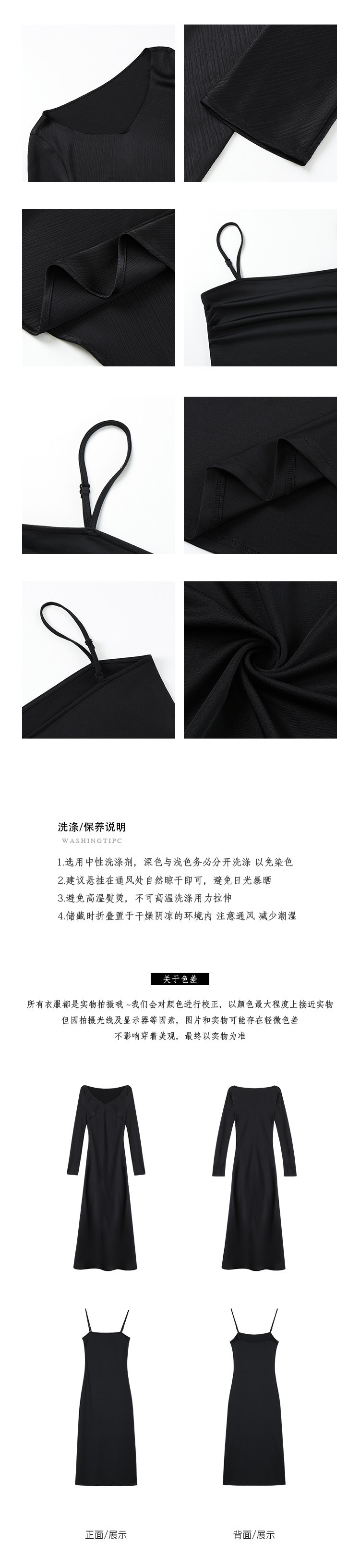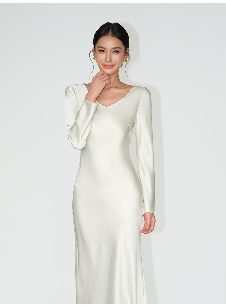 Neva Hu Flamenco Elegant V-Neck Satin Long Sleeve Dress Women's Slim Fit Suspender Dress Two-Piece Set