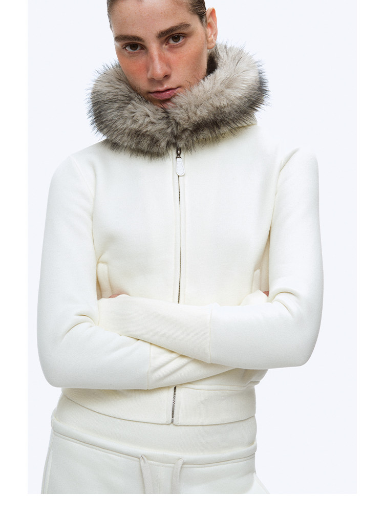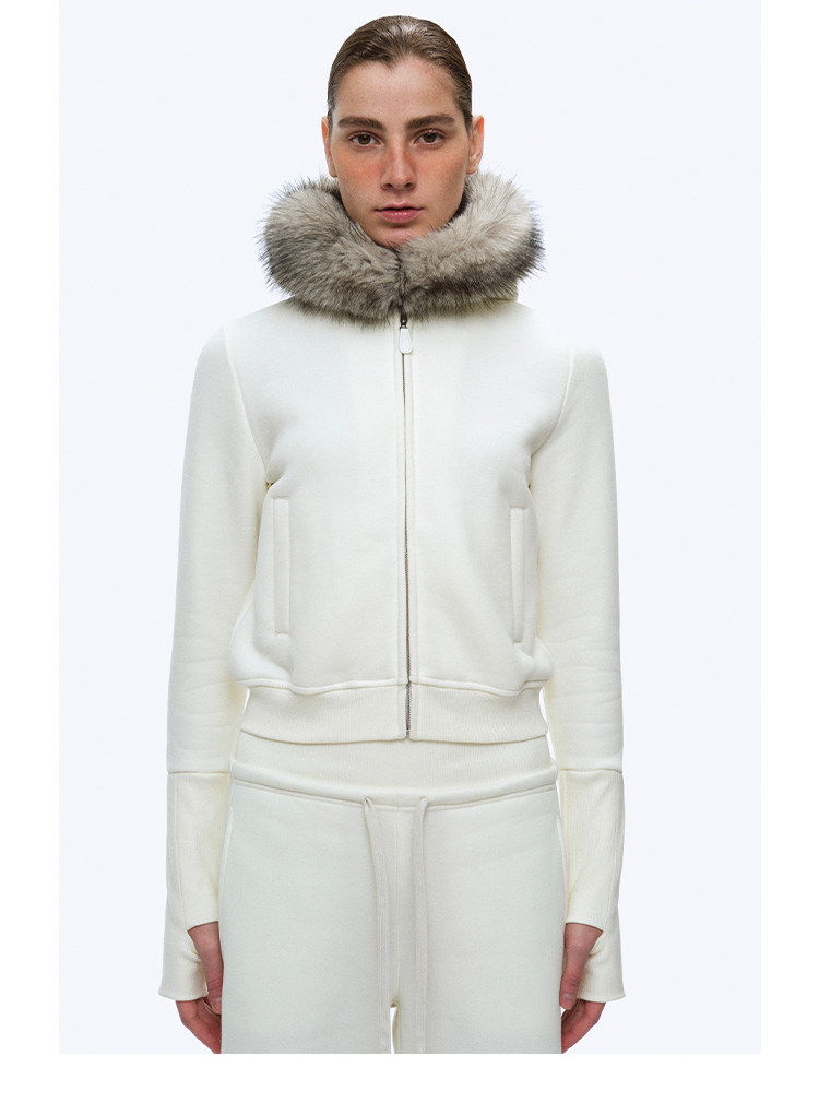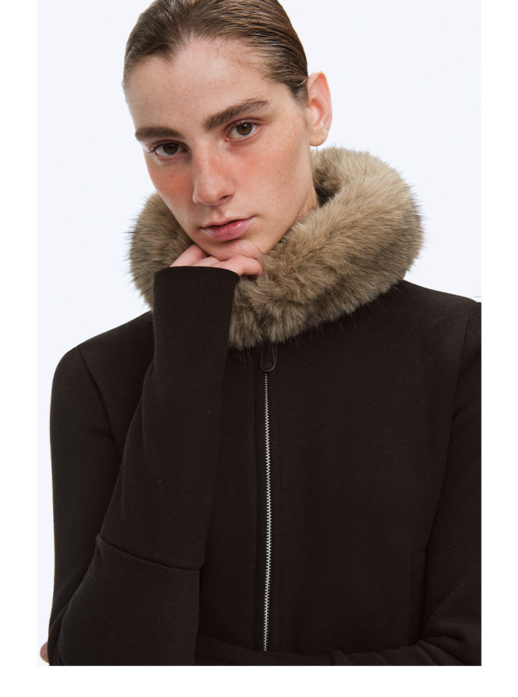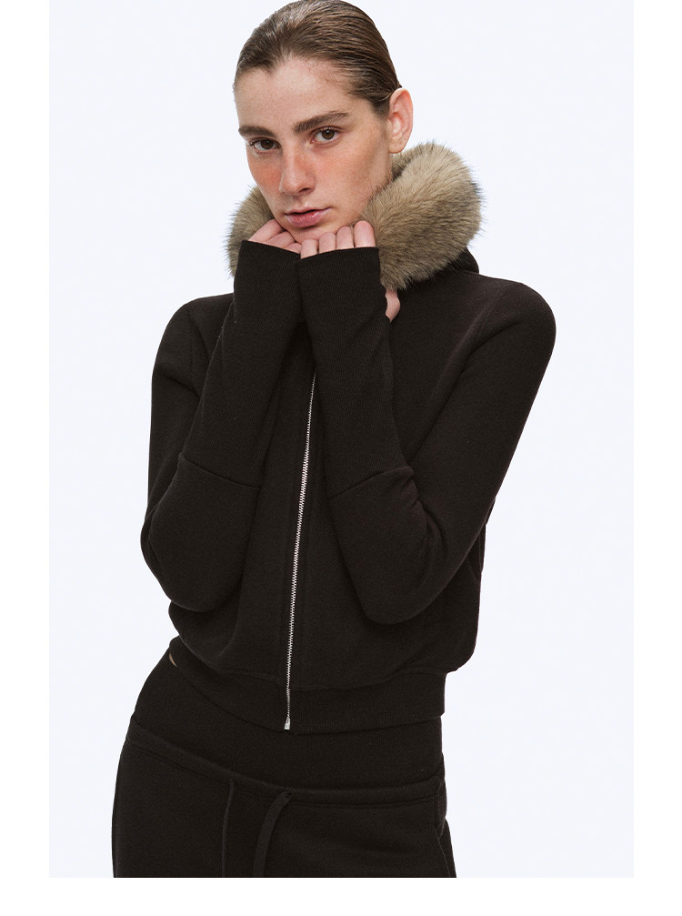Aolol High-Quality Detachable Fur Collar* Fleece-Lined Thickened Zipper Short Jacket Women's Winter Casual Sports Hoodie
