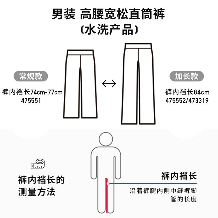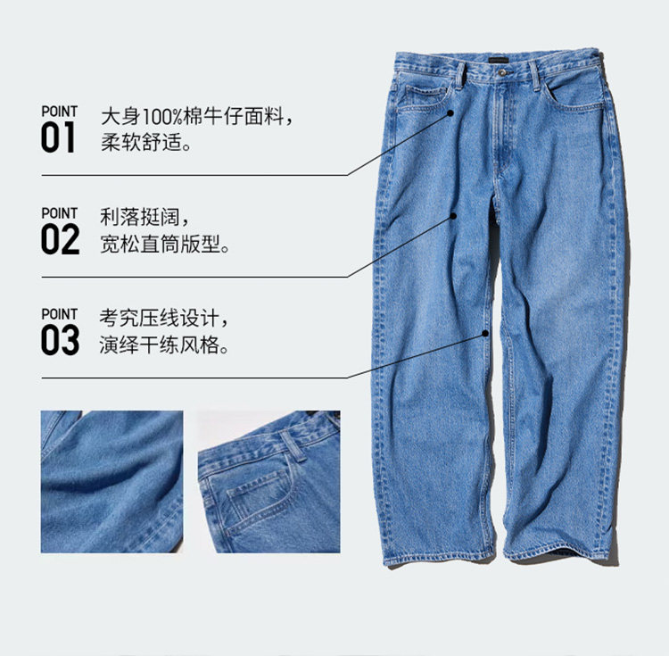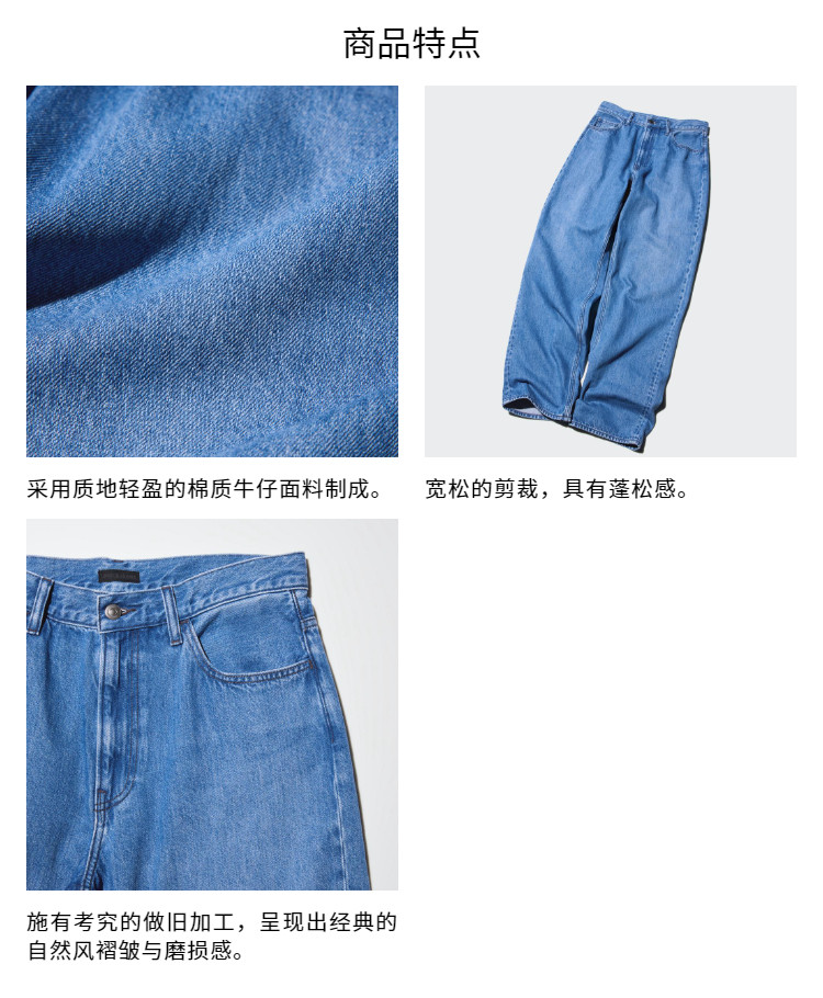 Uniqlo Men's and Women's Loose Straight-Leg Jeans Washed Pants Casual Long Pants Extra Long 84cm475552