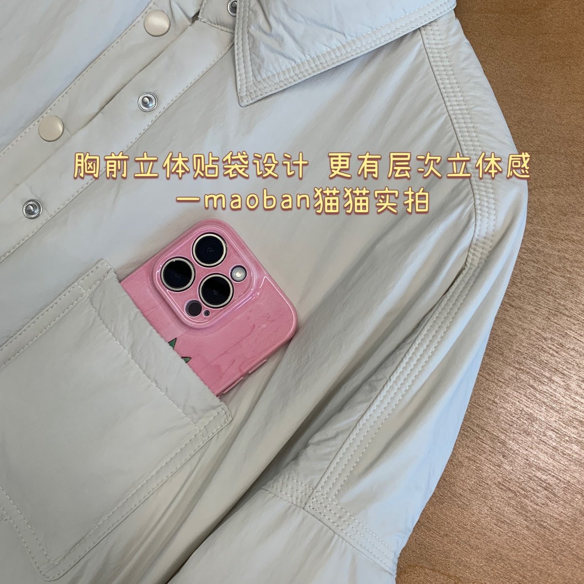 后背细节感十足~~ 内衬薄棉是羽绒服做法