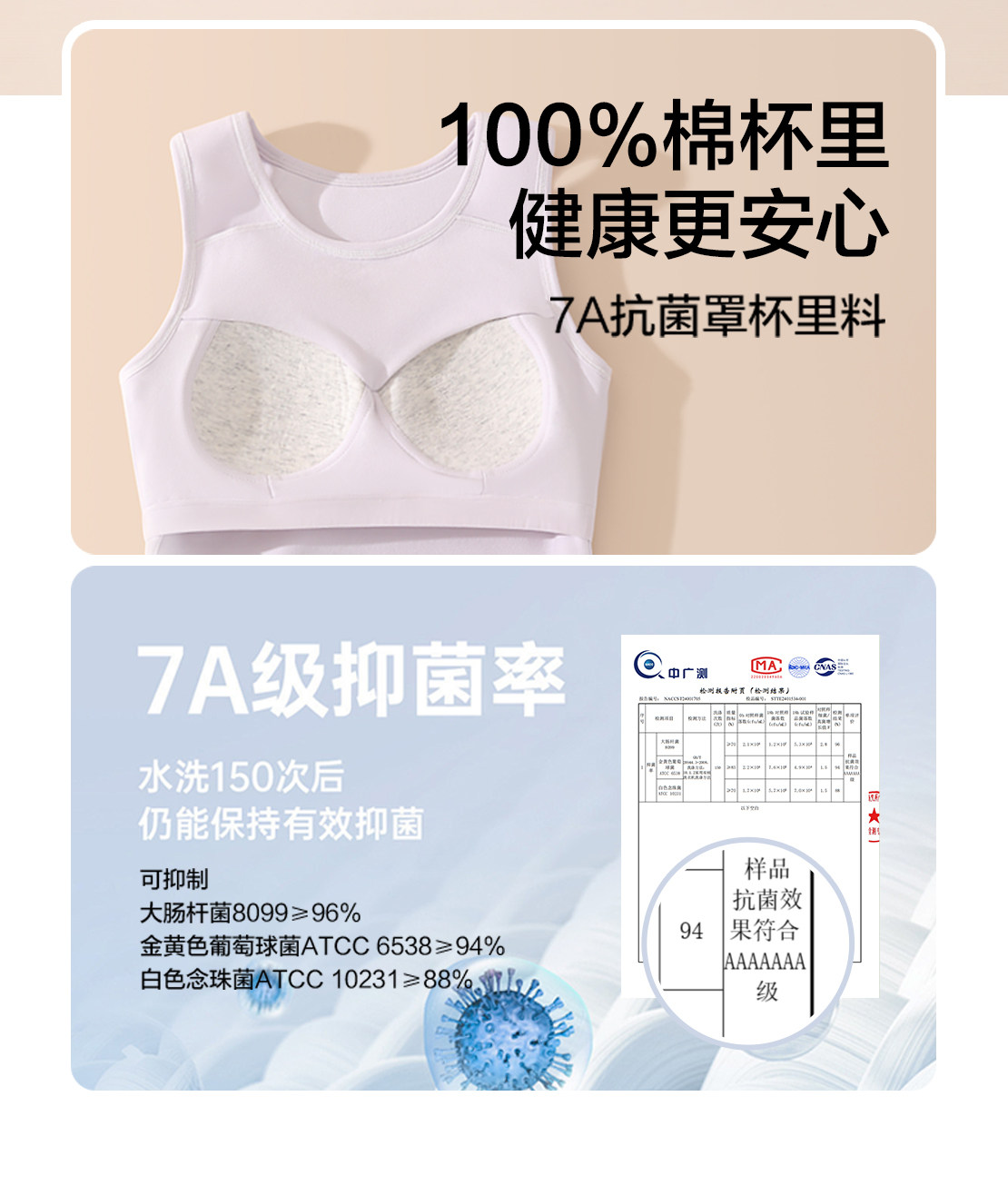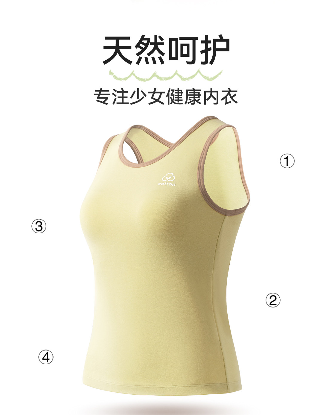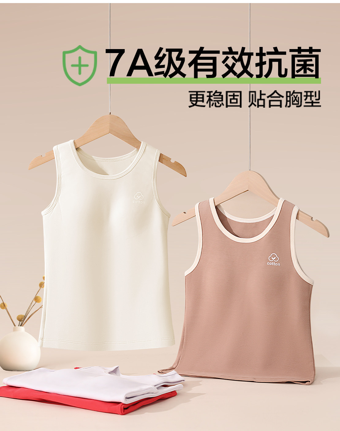 Warm Vest for Middle and High School Girls, Pure Cotton, Class A, with Bra Pads, for Teenagers and Older Girls, Base Layer Underwear