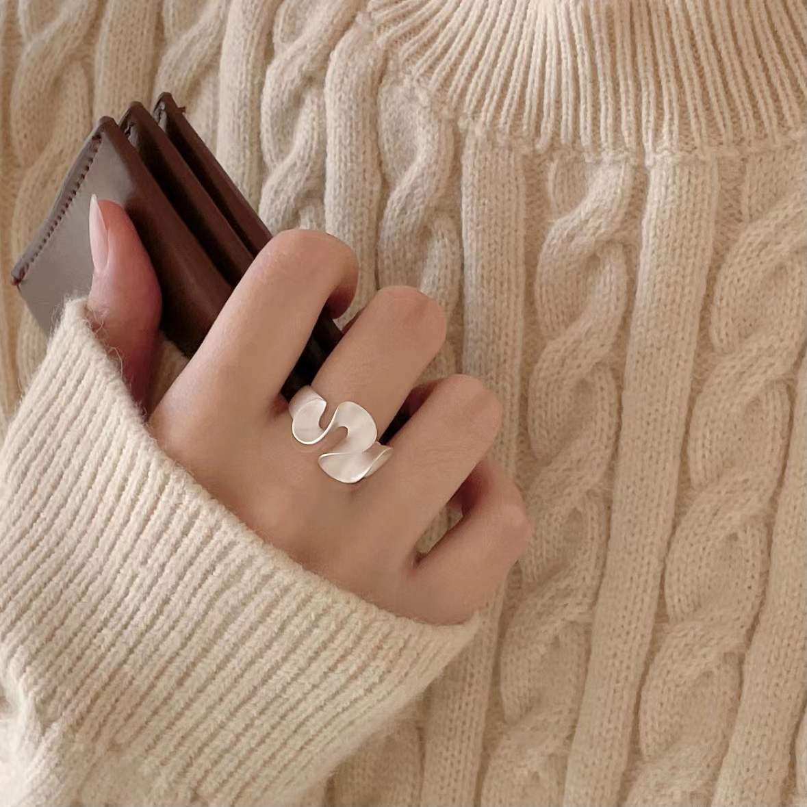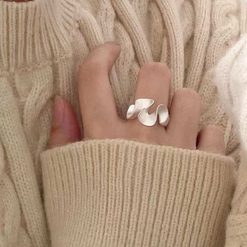 S925 Sterling Silver French Floral Wave Skirt Edge Irregular Opening Ring with a Unique Design, Niche and Light Luxury