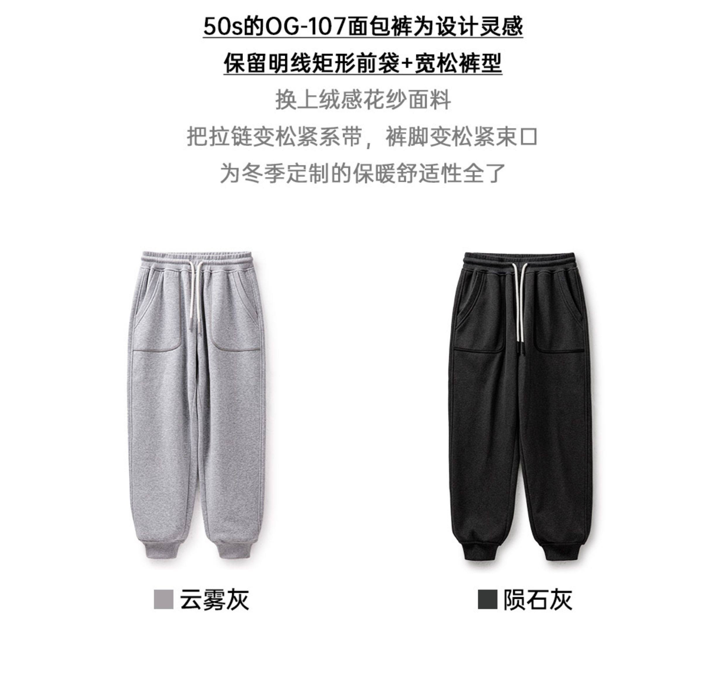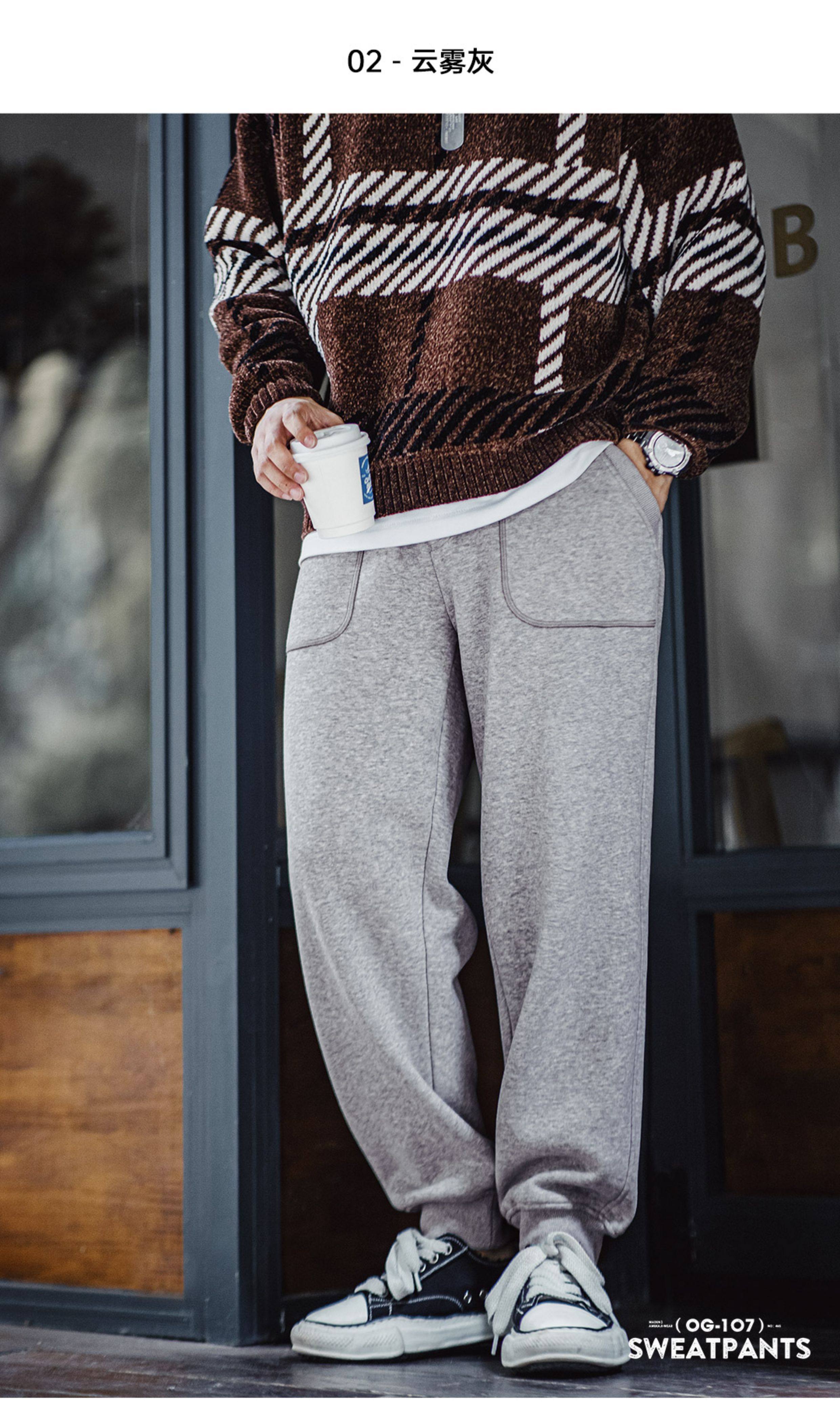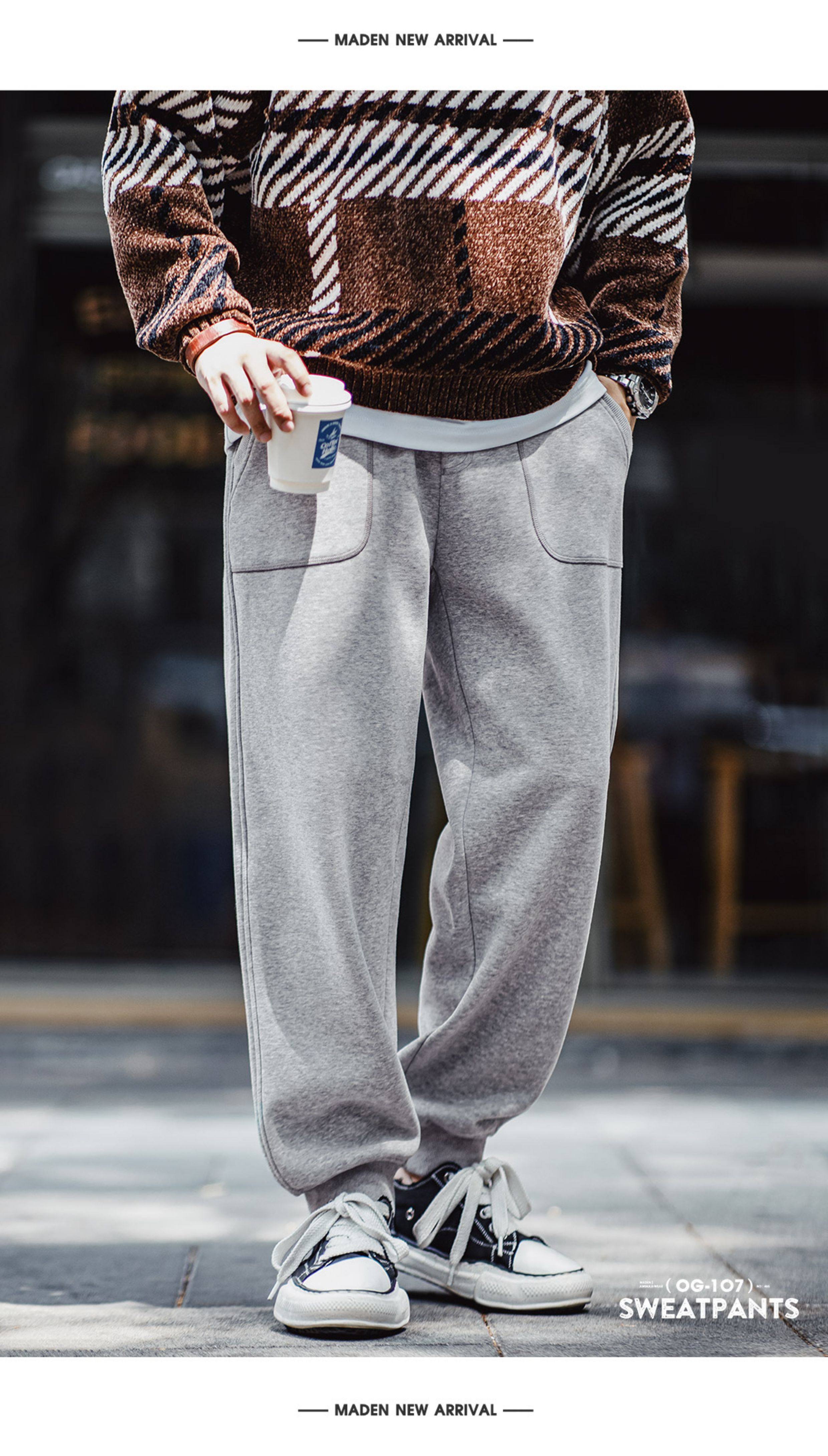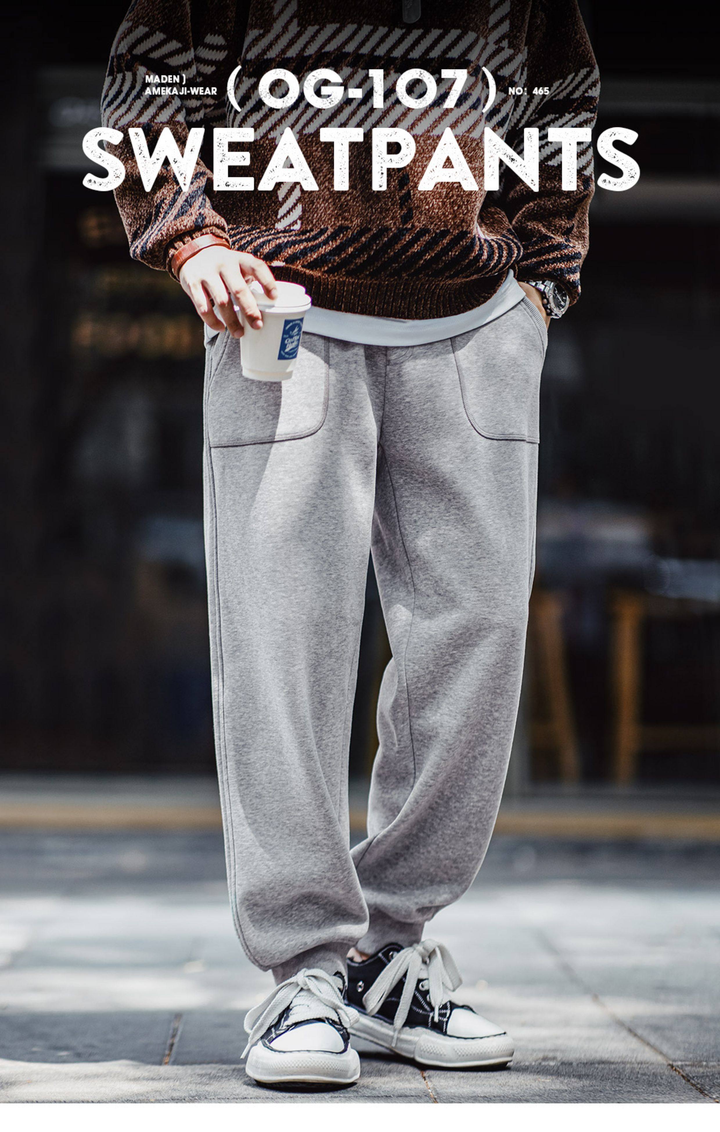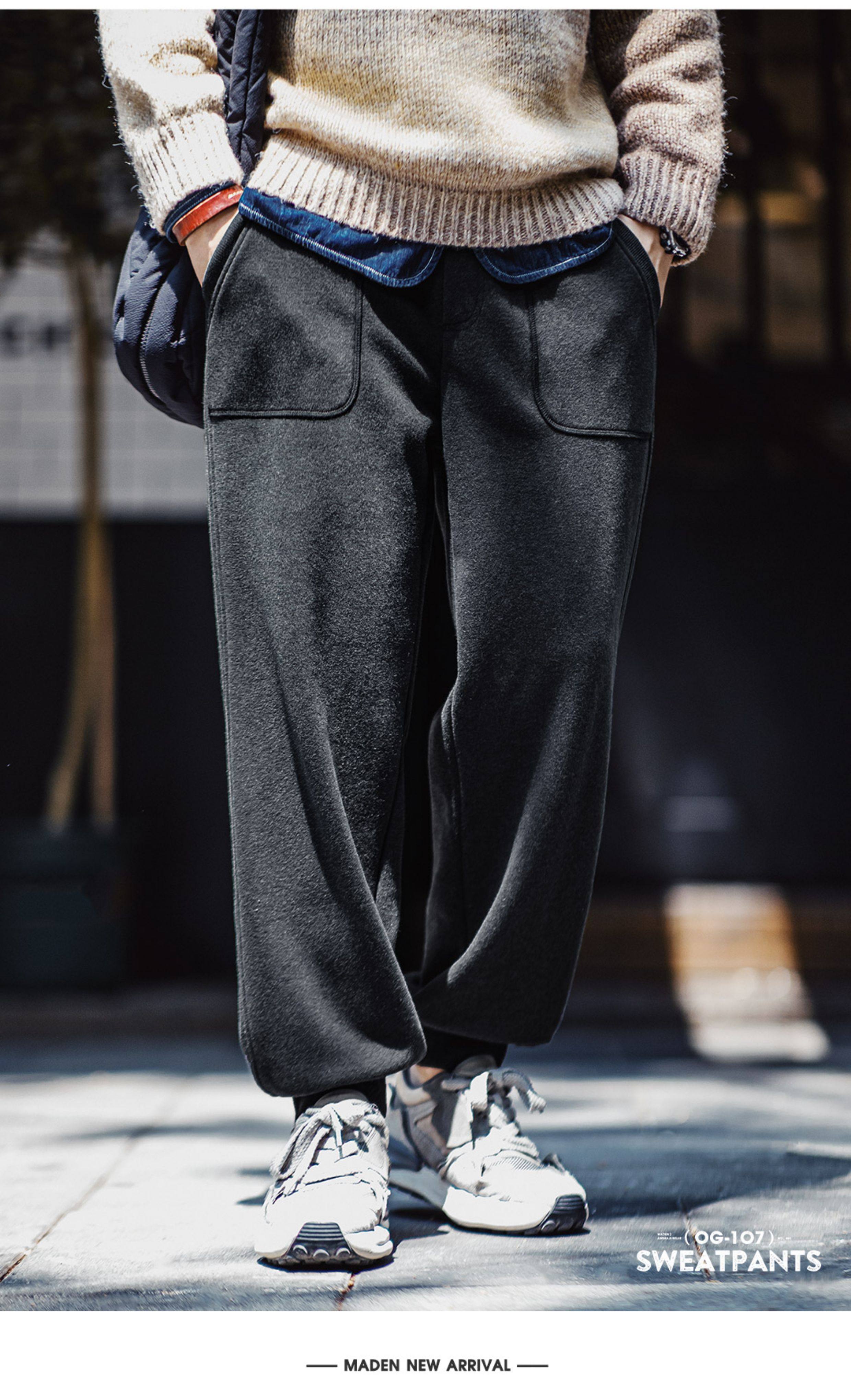 Madden Workwear American Retro Og107 Fleece-Lined Sweatpants Sports Casual Warm Elastic Waist Jogger Pants for Men Autumn and Winter