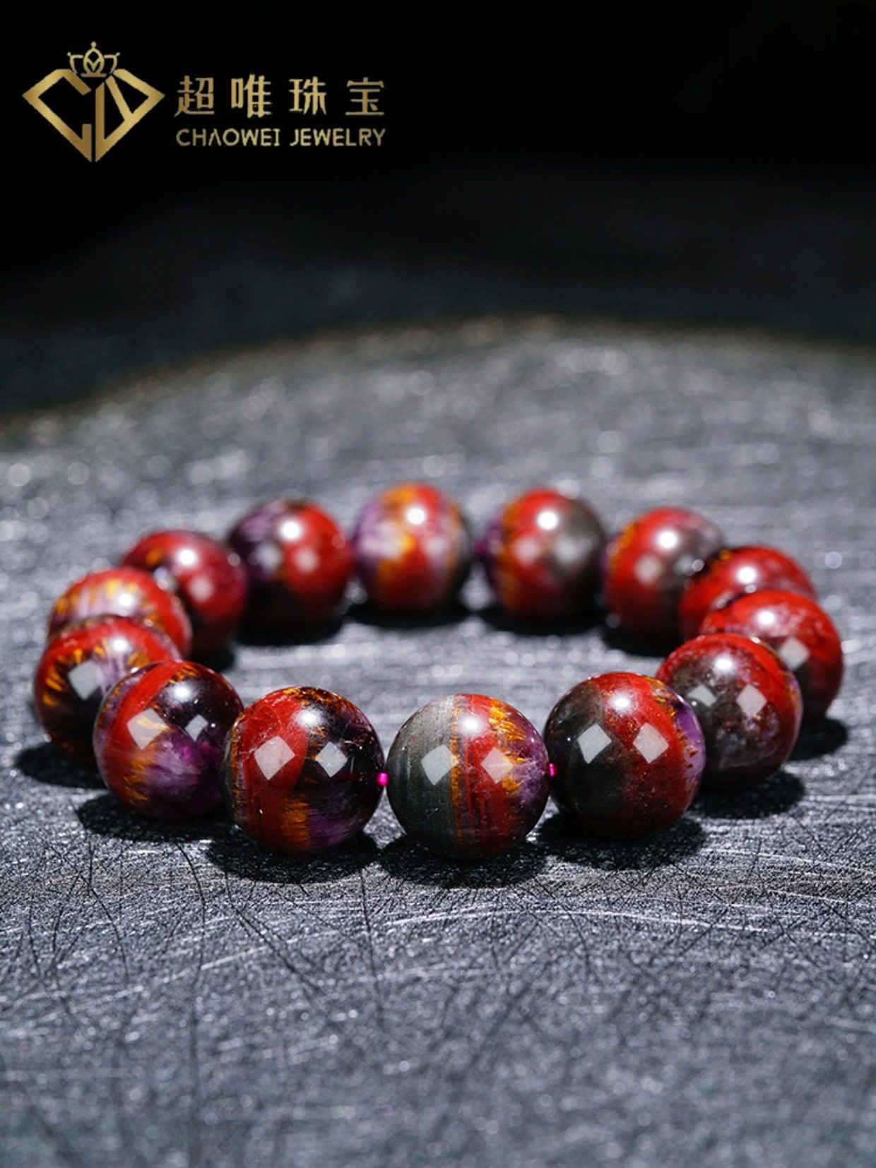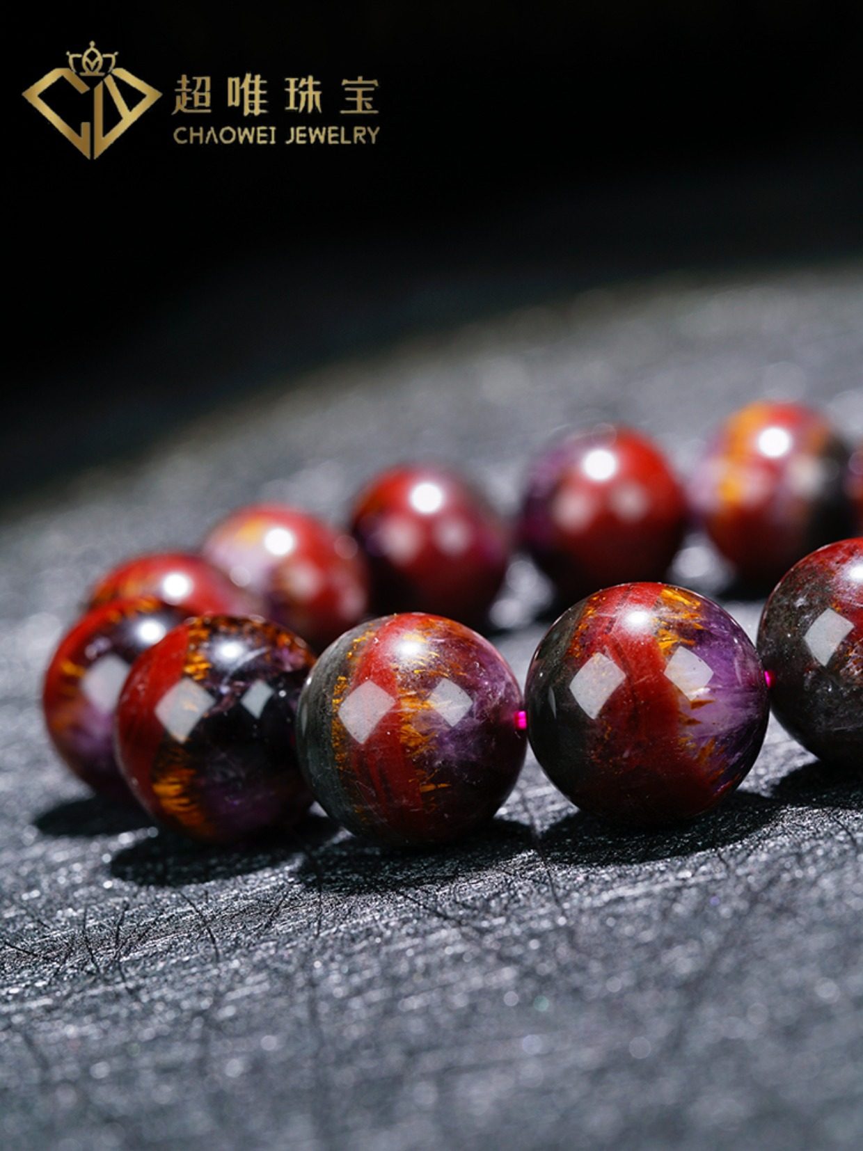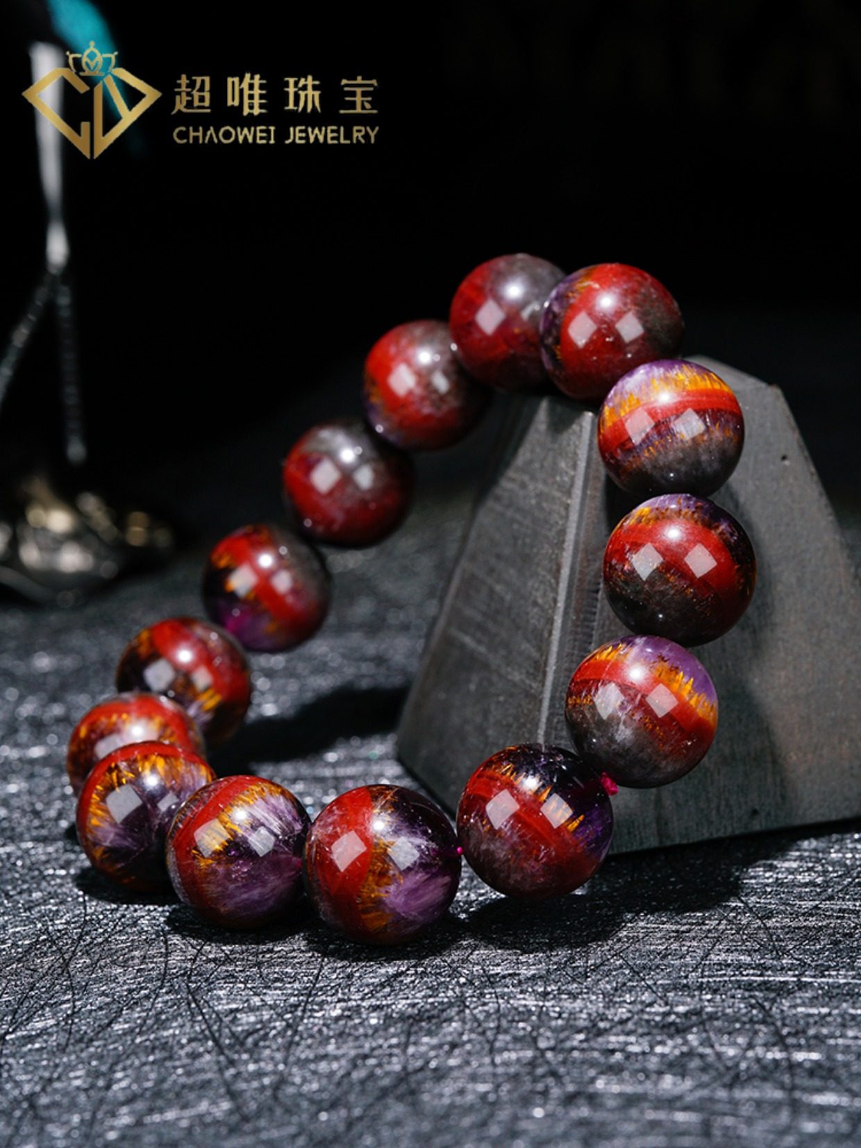 Super Unique Jewelry Natural Aurora 23 Bracelet Collectible Grade Purple Titanium Four-Color Aurora 23 Mineral Full Titanium Crystal Bracelet