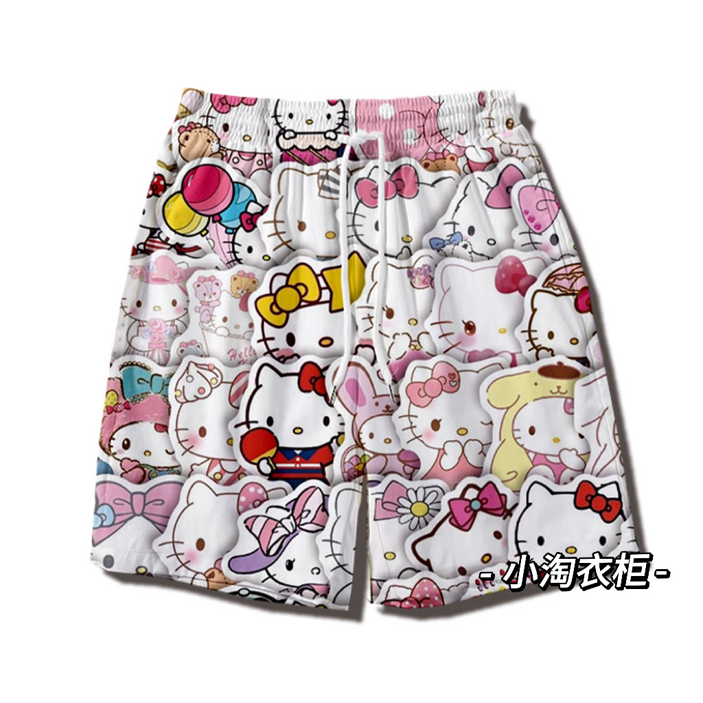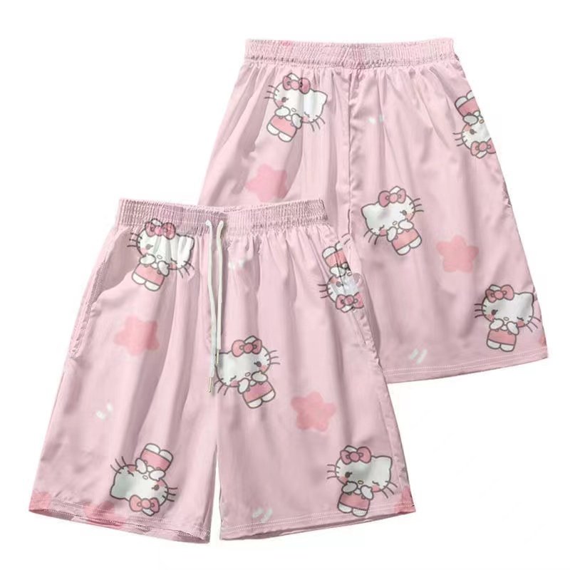Hellokitty Hello Kitty Shorts for Men and Women, Summer Loose and Versatile Home Wear, Couple Casual Beach Shorts, Five-Point Sleep Shorts