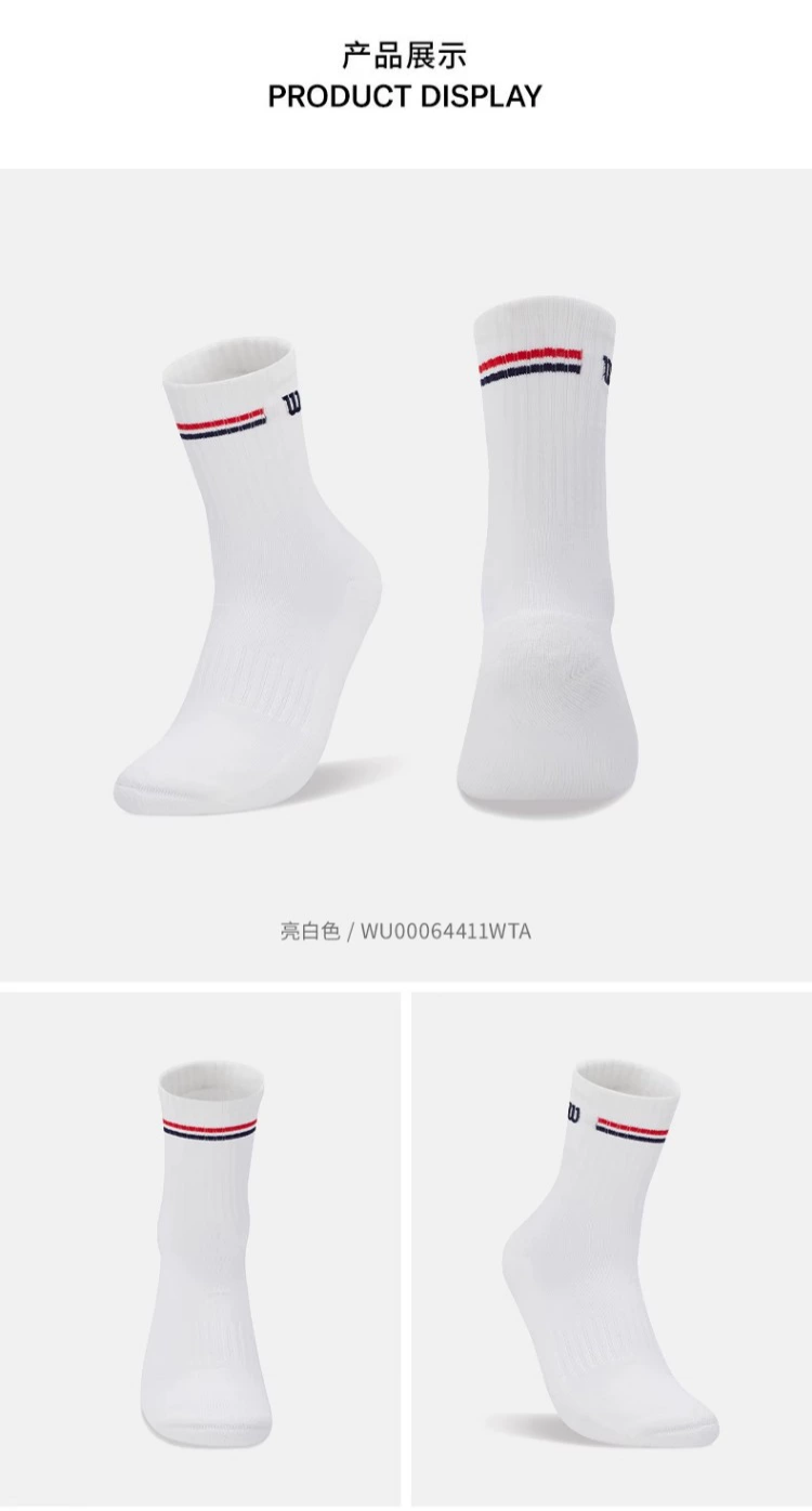 Wilson Wilson's 25-Year New Professional Tennis Socks for Men and Women, Pure Cotton Thickeneded Mid-Tube Anti-Odor Sports Socks