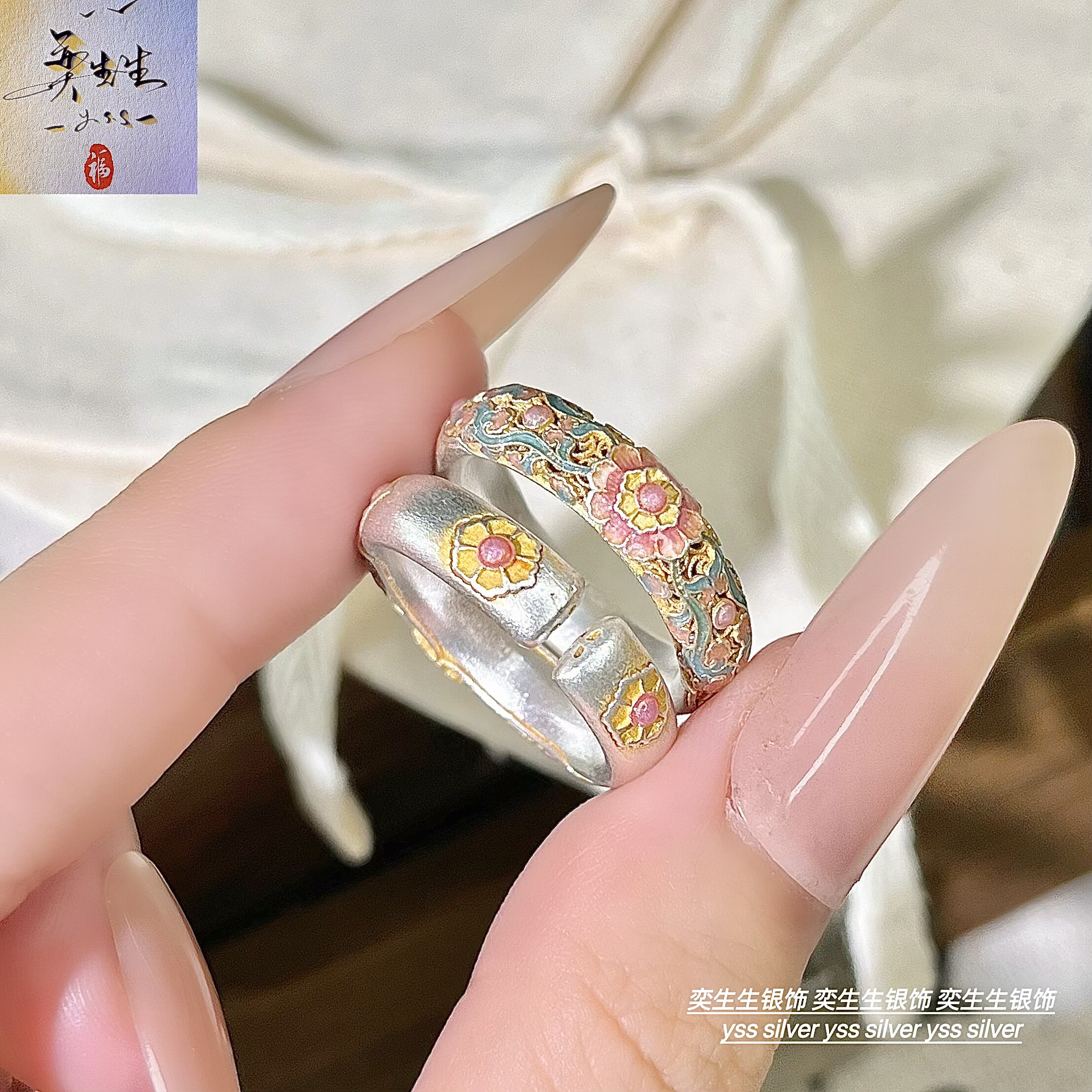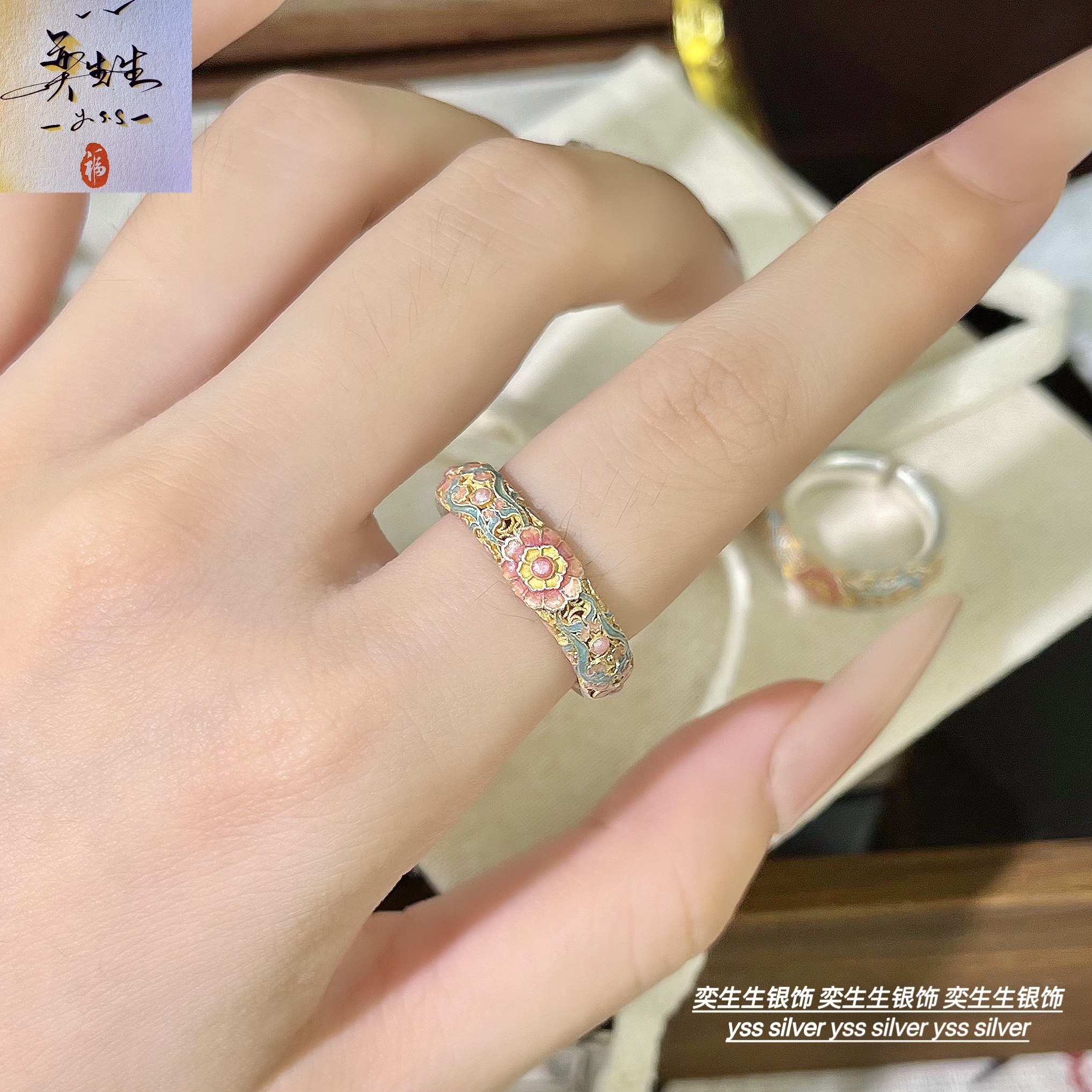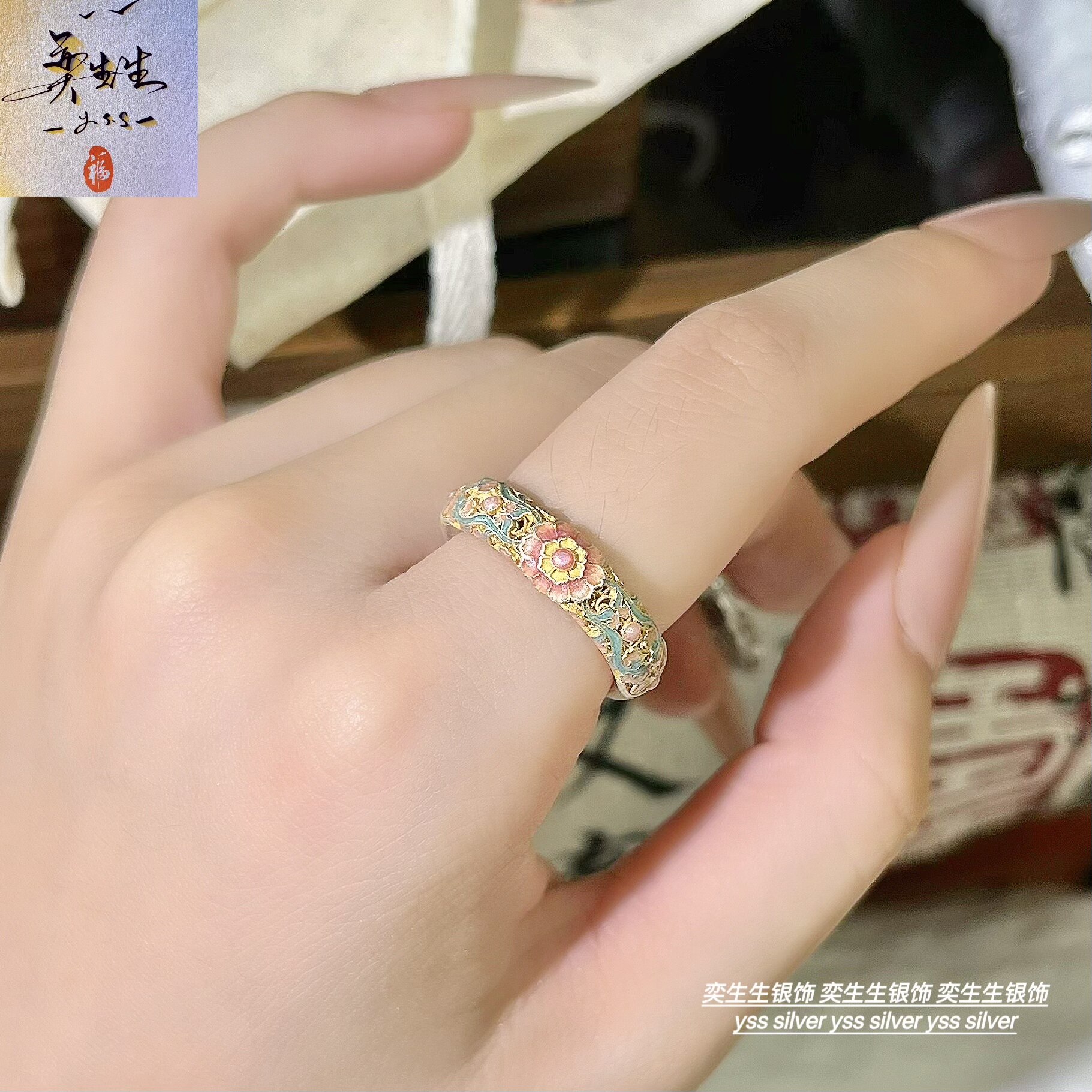 Flower Sea 9999 Pure Silver Enamel Begonia Blossom Sterling Silver Ring Chinese Style New Chinese Style Versatile Ring Gift