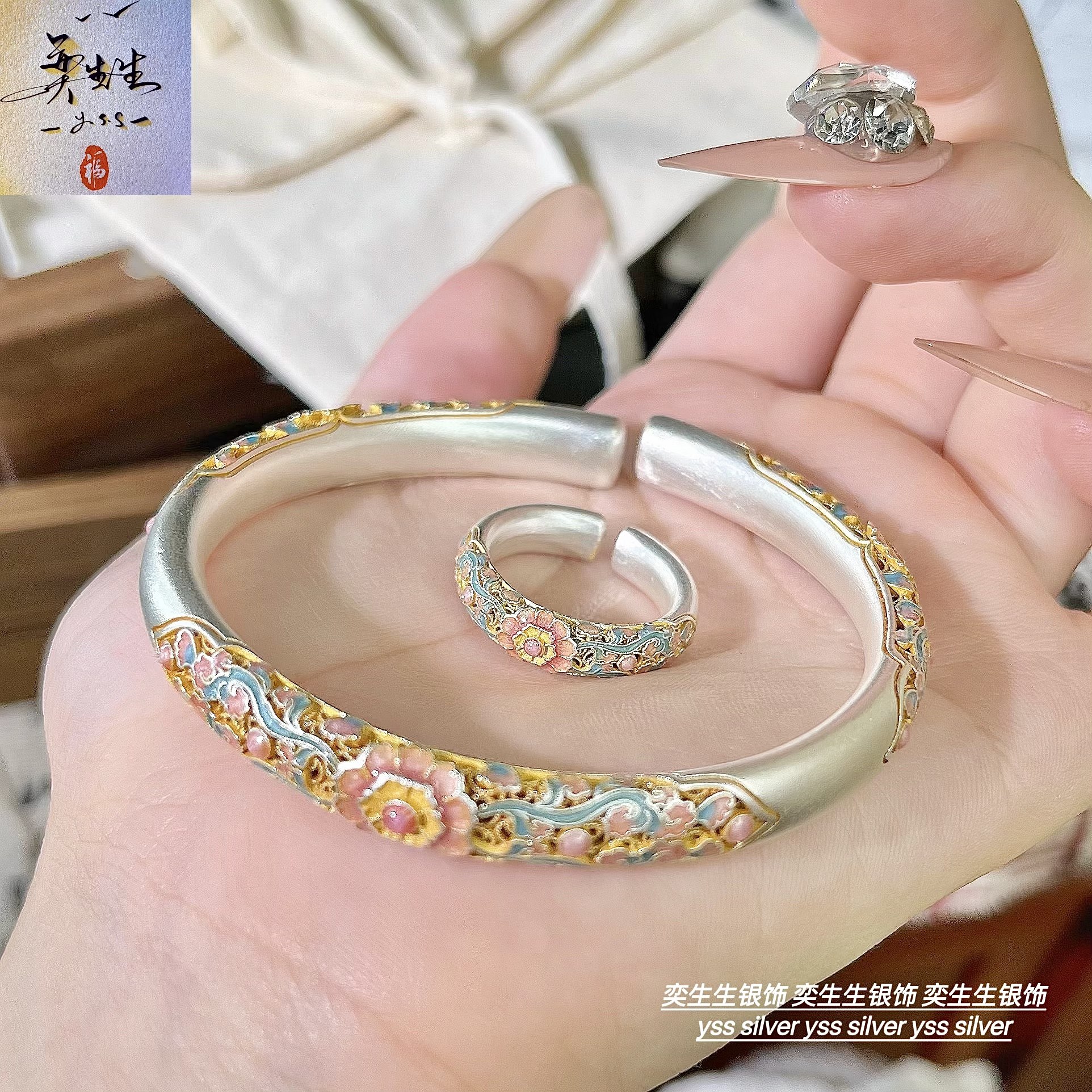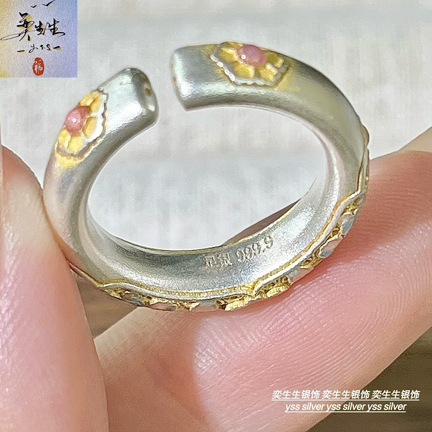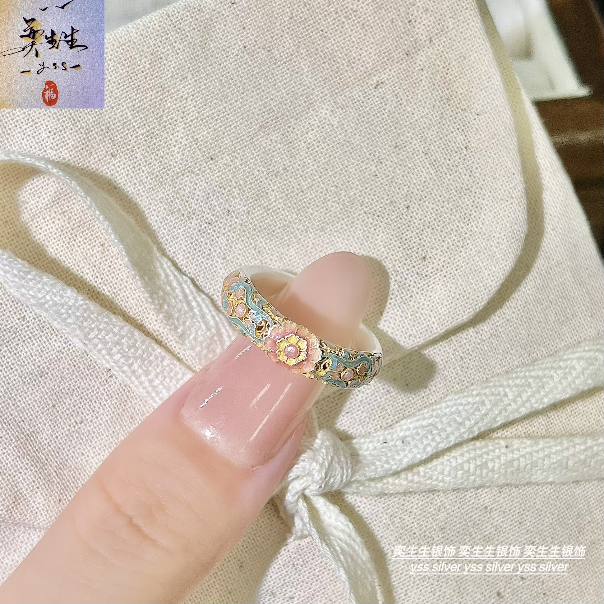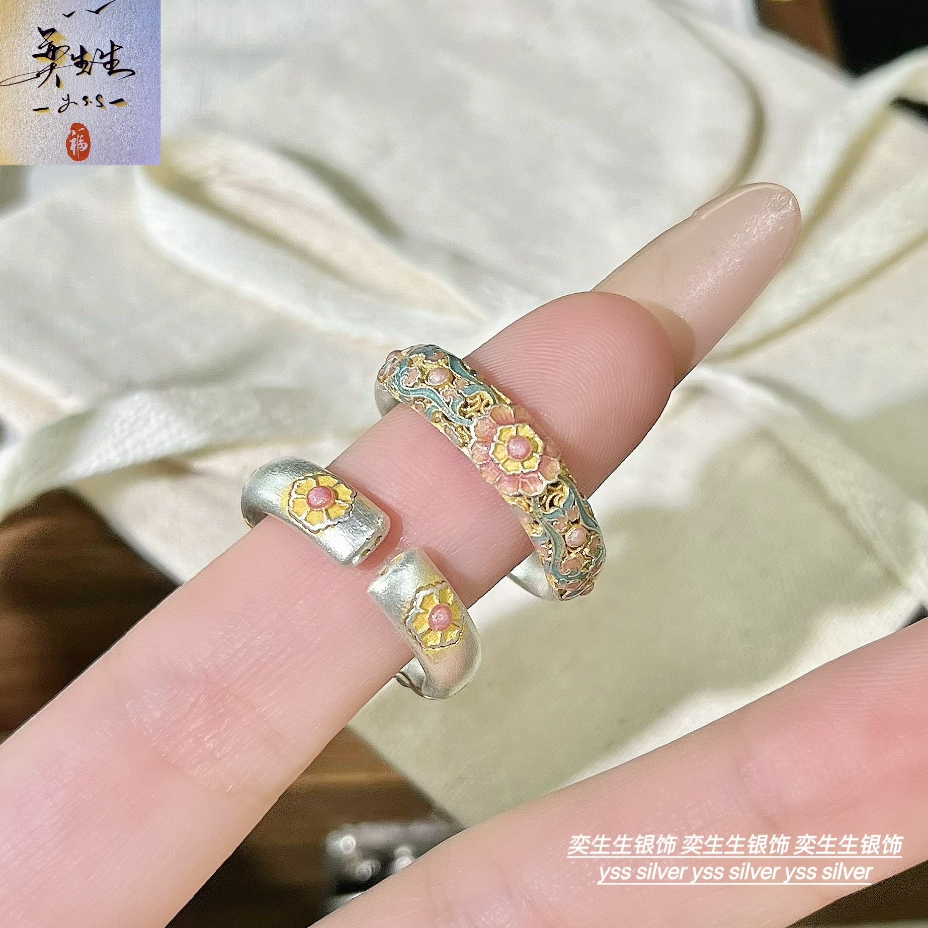Flower Sea 9999 Pure Silver Enamel Begonia Blossom Sterling Silver Ring Chinese Style New Chinese Style Versatile Ring Gift