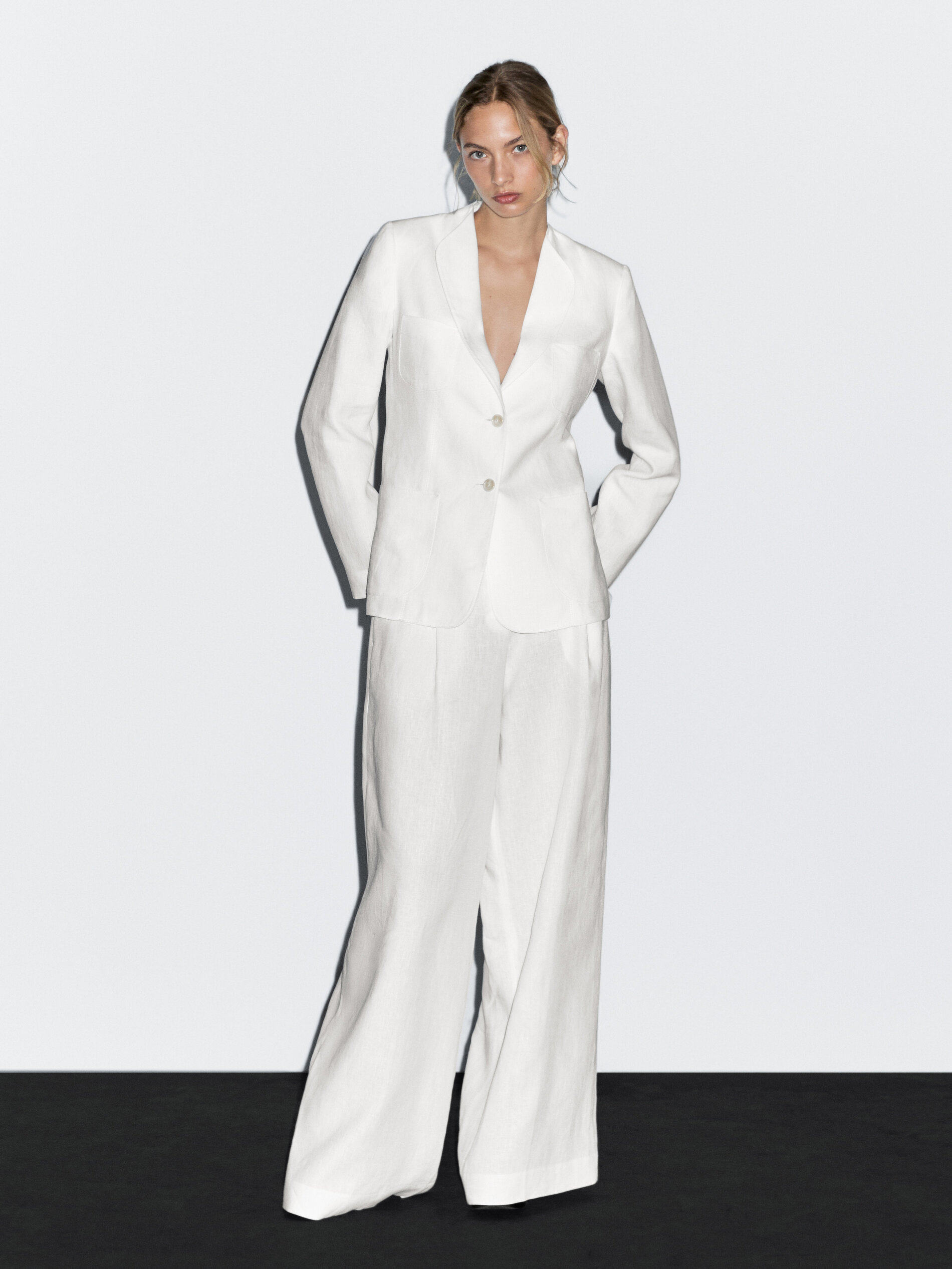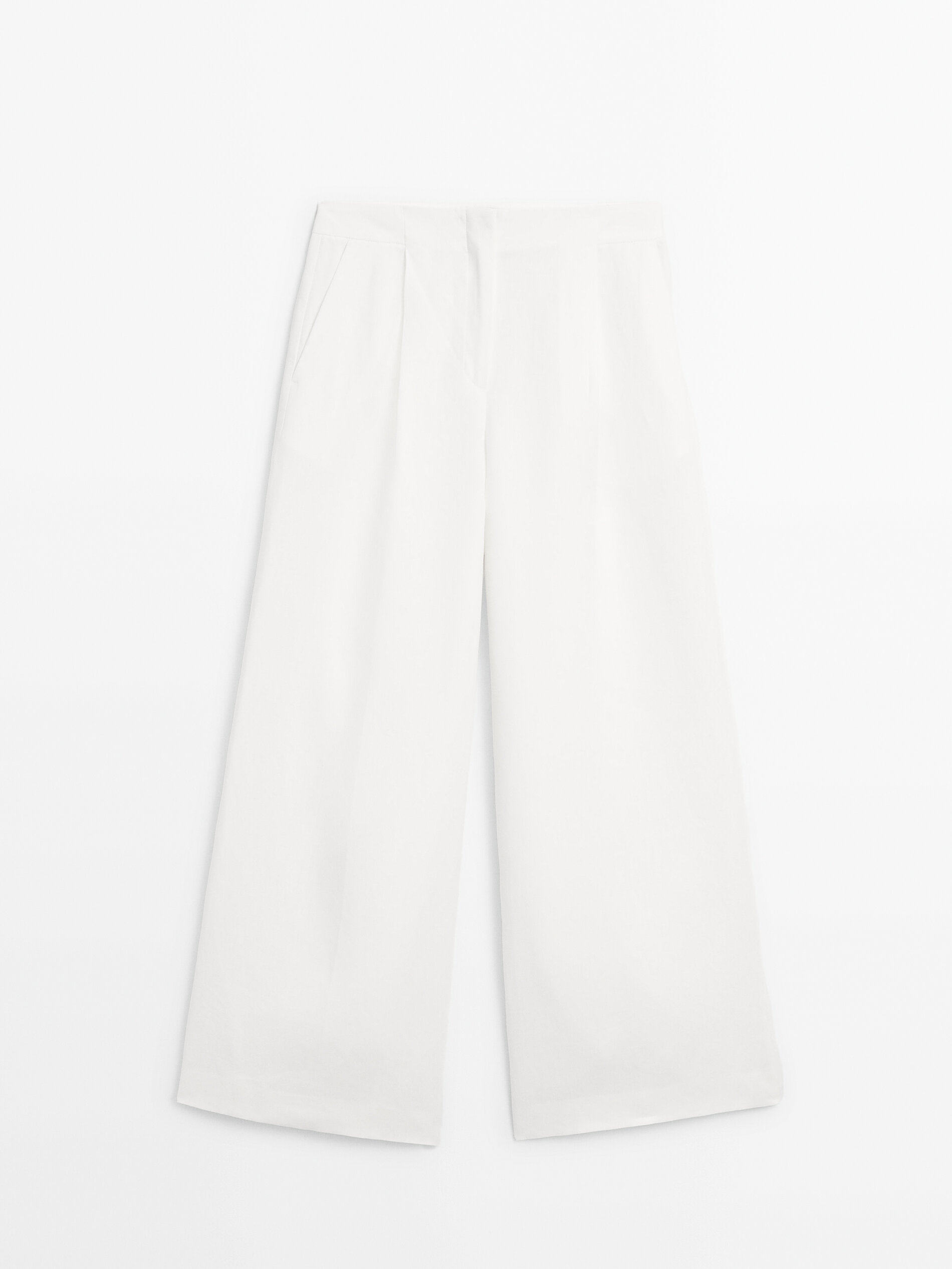 | 产品名称: 100%亚麻打褶西装长裤 | ||