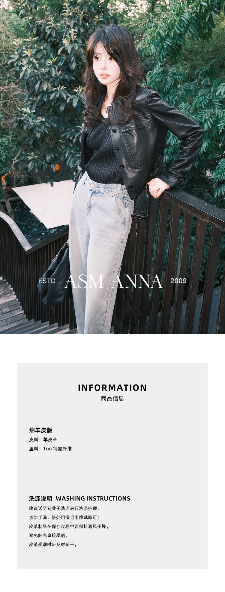 Asm Anna Retro Trendy Turkish Imported First-Layer Sheepskin Short Shoulder-Length Miu Leather Jacket Motorcycle Style Leather Jacket