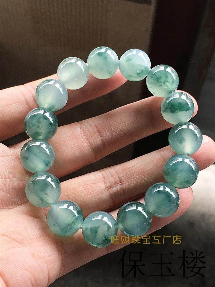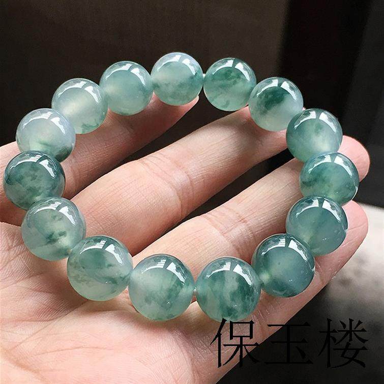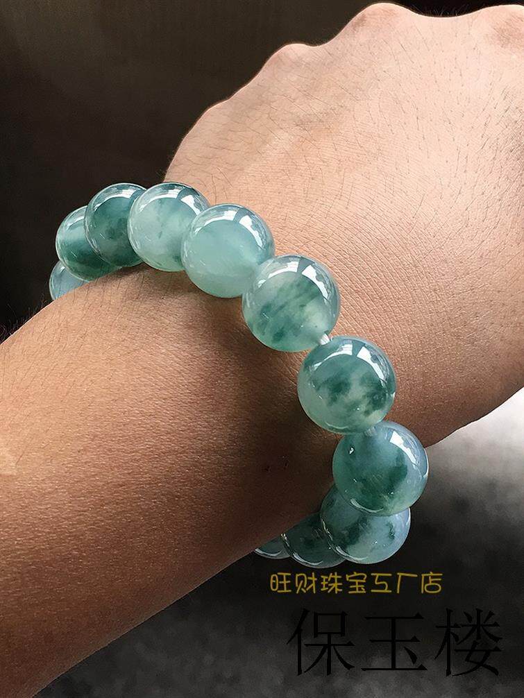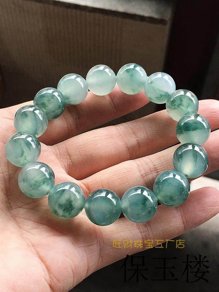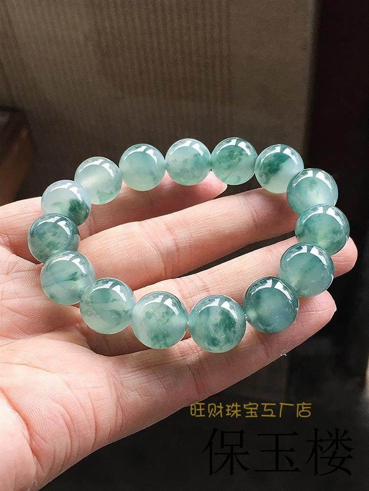 High-Quality Ice Jade Bracelet for Women, Light Green with Floral Patterns, Round Beads, Icy and Translucent, Moisturizing Jade Bracelet with Certificate