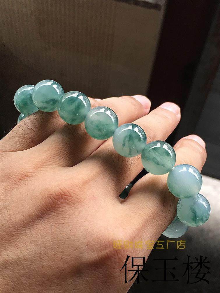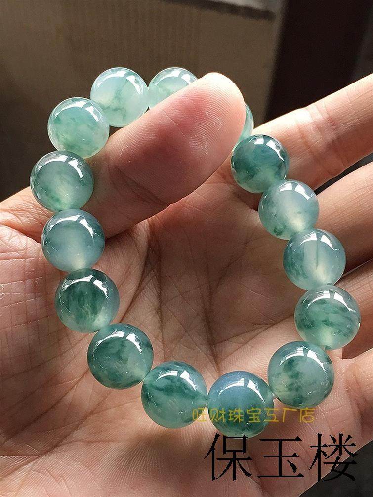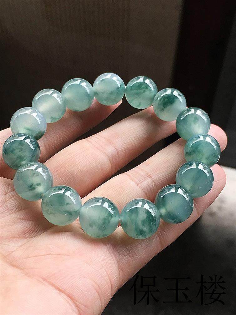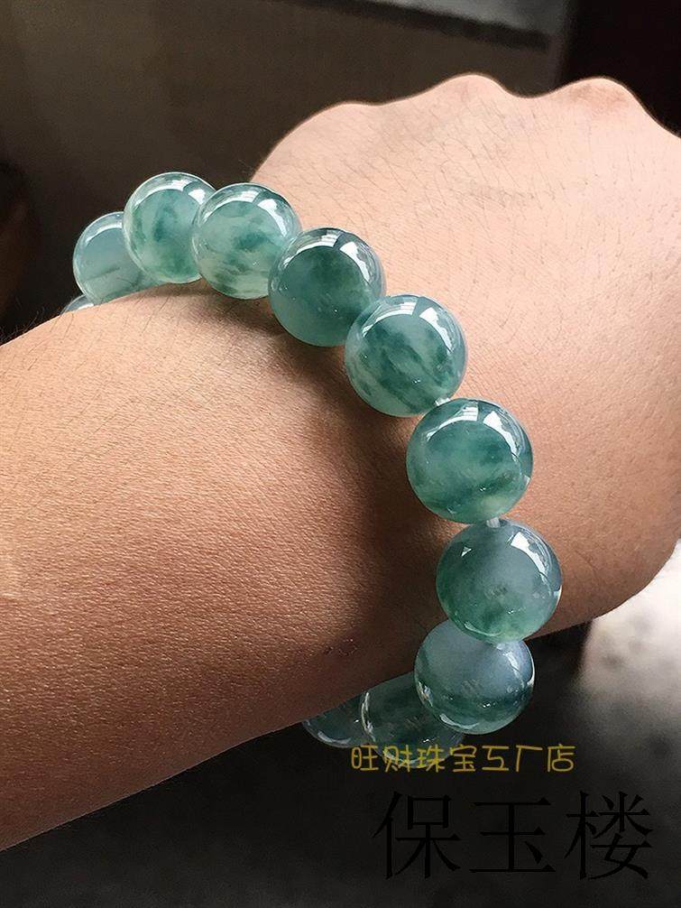 High-Quality Ice Jade Bracelet for Women, Light Green with Floral Patterns, Round Beads, Icy and Translucent, Moisturizing Jade Bracelet with Certificate