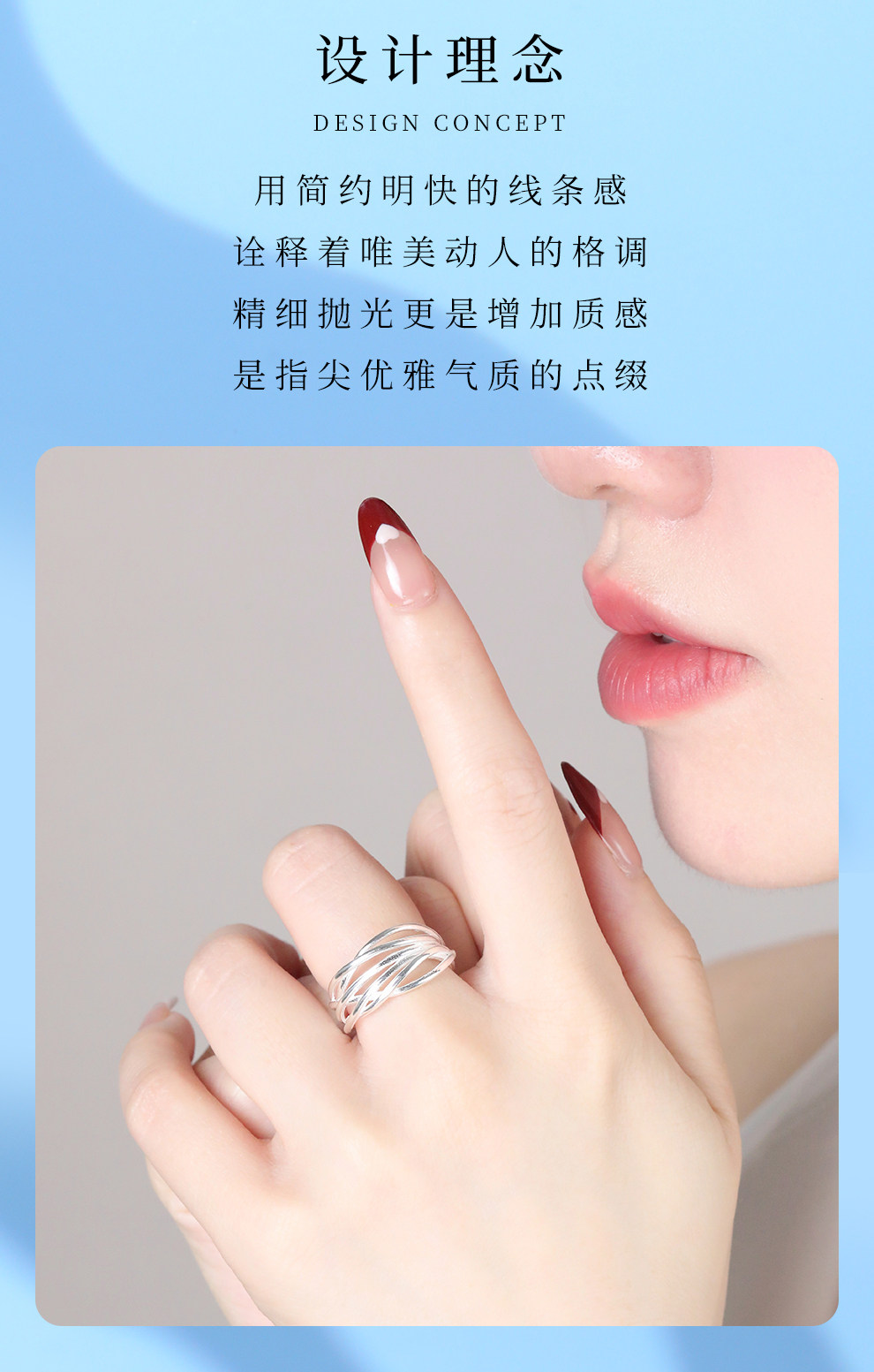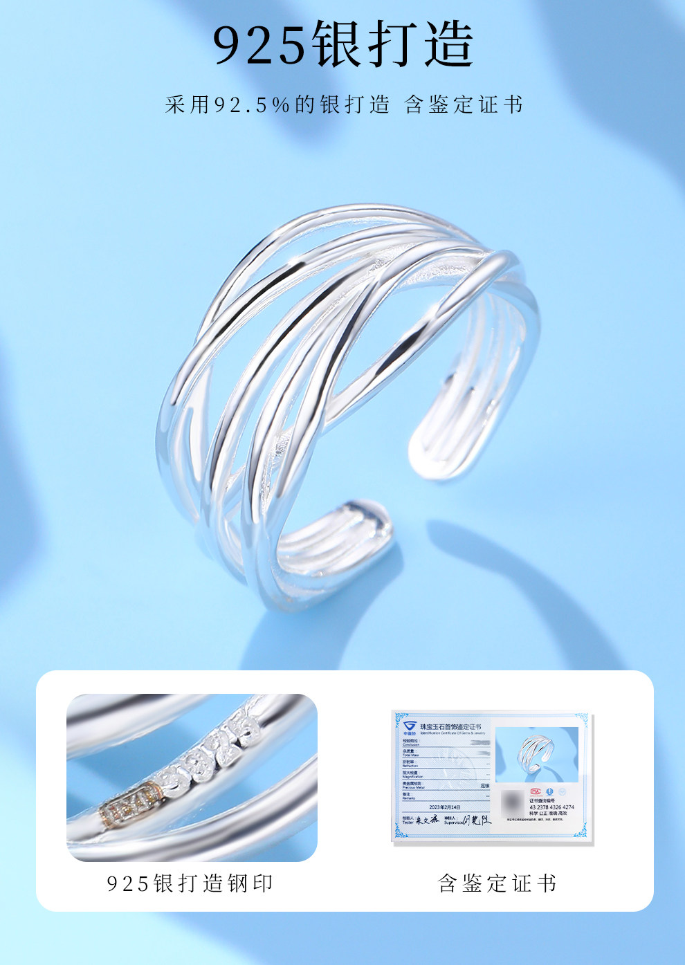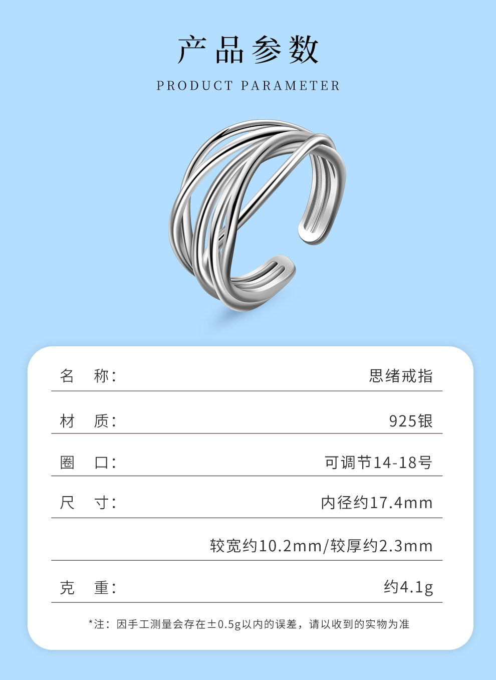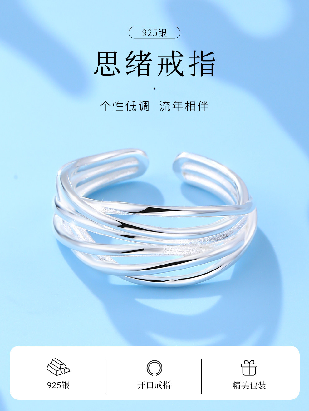 Old Silversmith S925 Silver Ring for Women, New Style, Simple and Versatile, Niche Design, High-End Feel, Pure Silver Index Finger Ring, Open-Ended