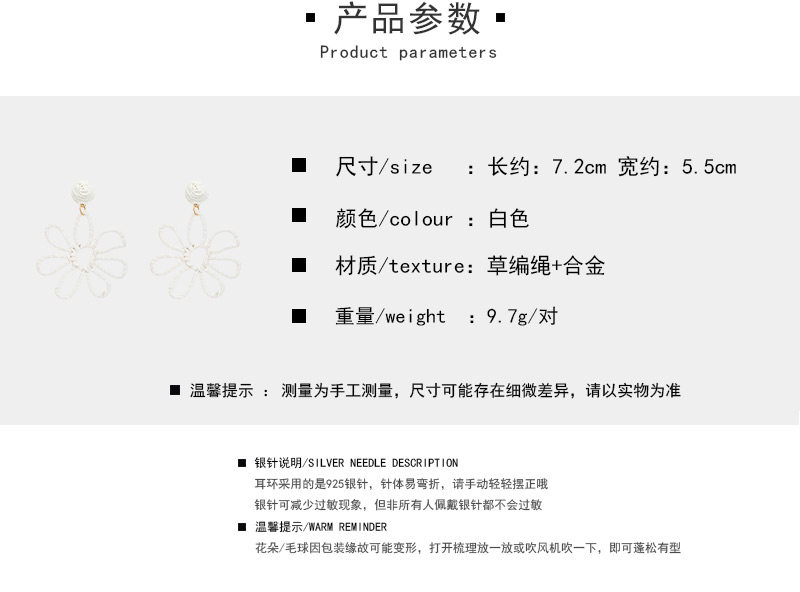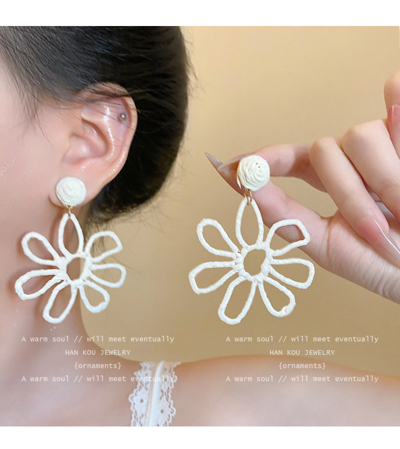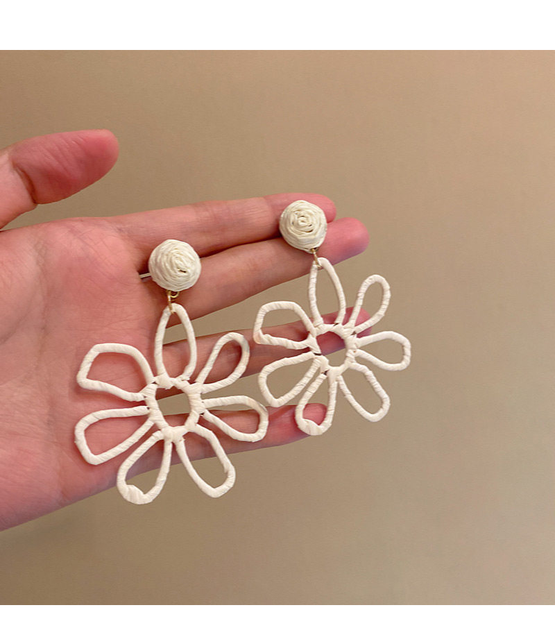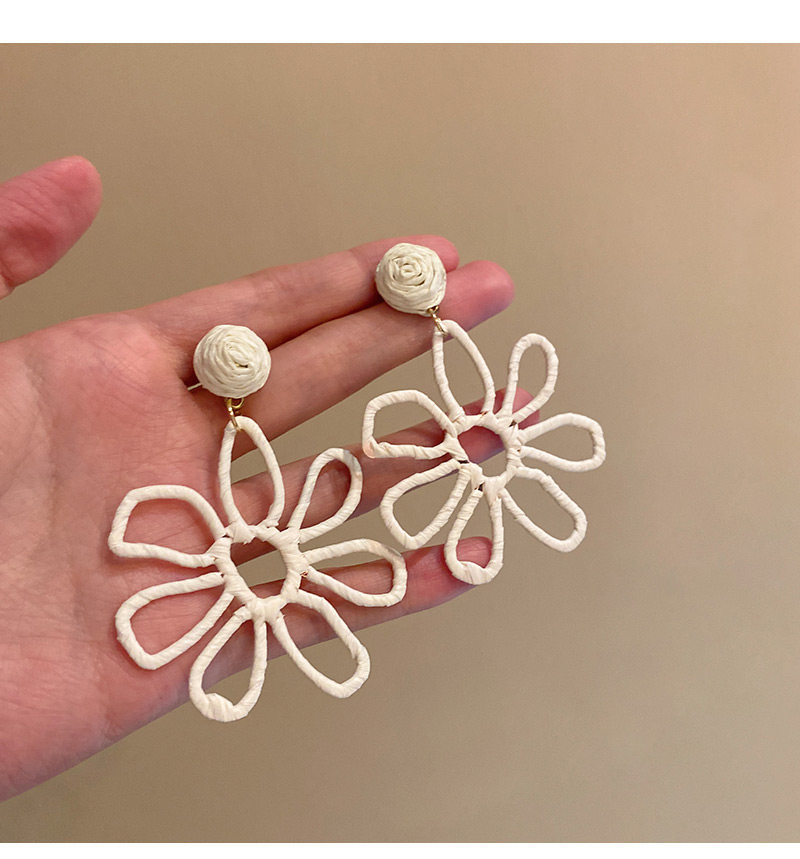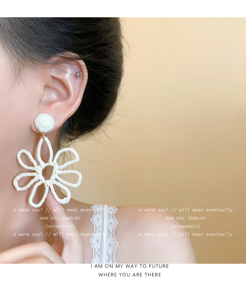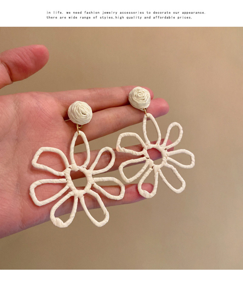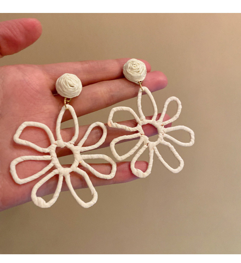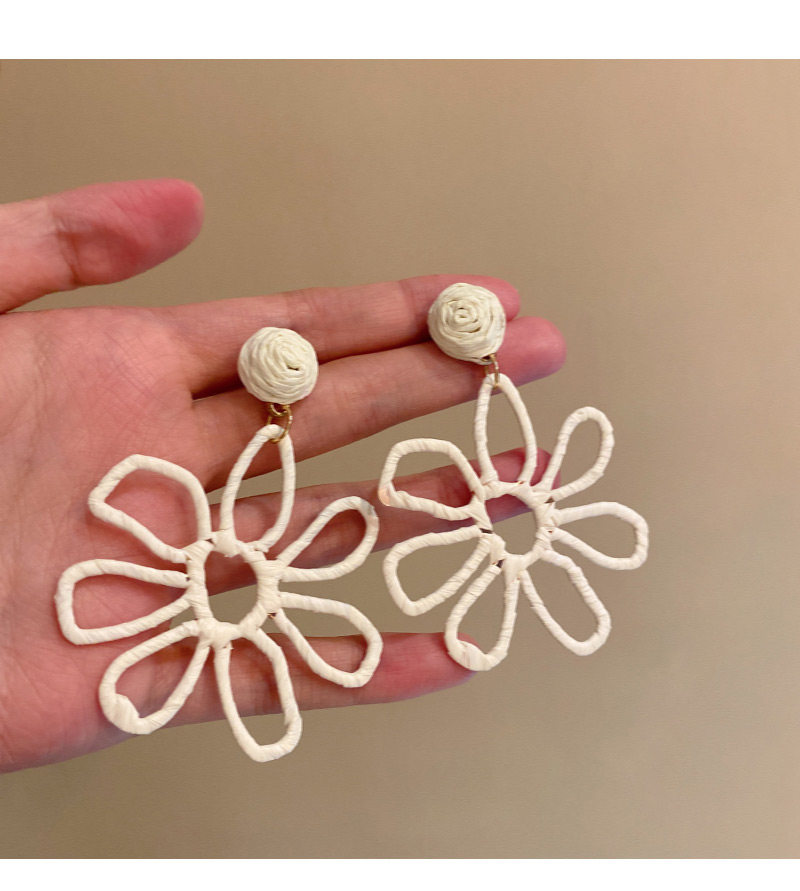 Summer Seaside Vacation Style Large Flower Earrings, Bohemian Exaggerated Straw Earrings, Women's Ear Studs, Perfect for Travel Photos