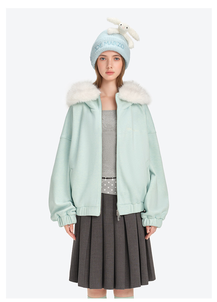 13De Marzo Unisex 2025 Autumn/Winter New Style Detachable Fur Collar Hooded Sweatshirt Jacket