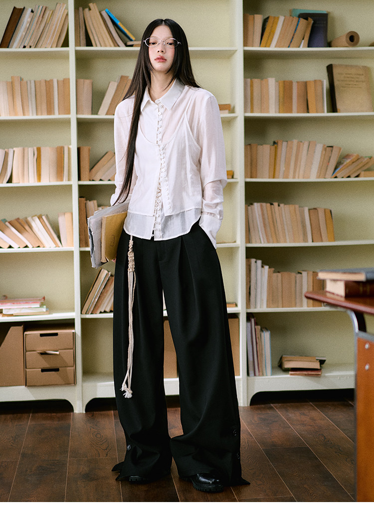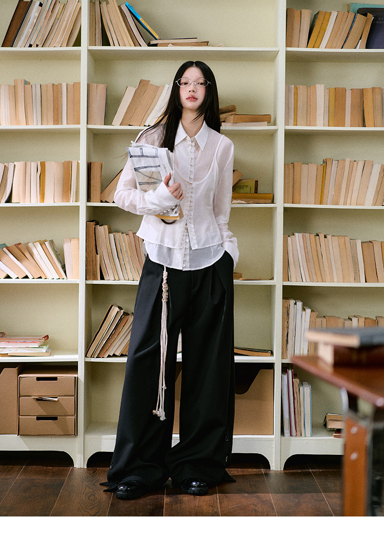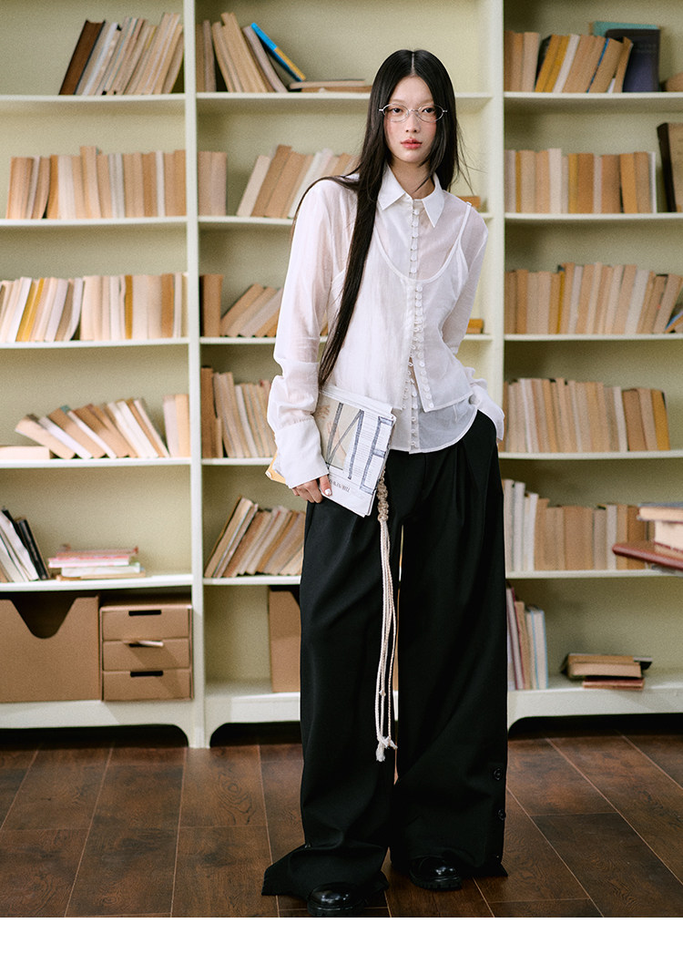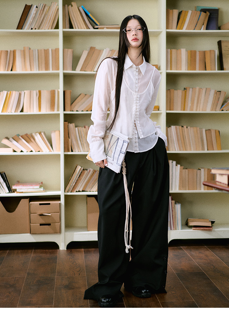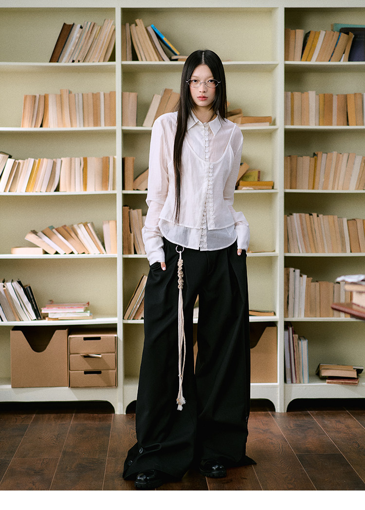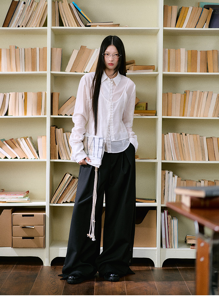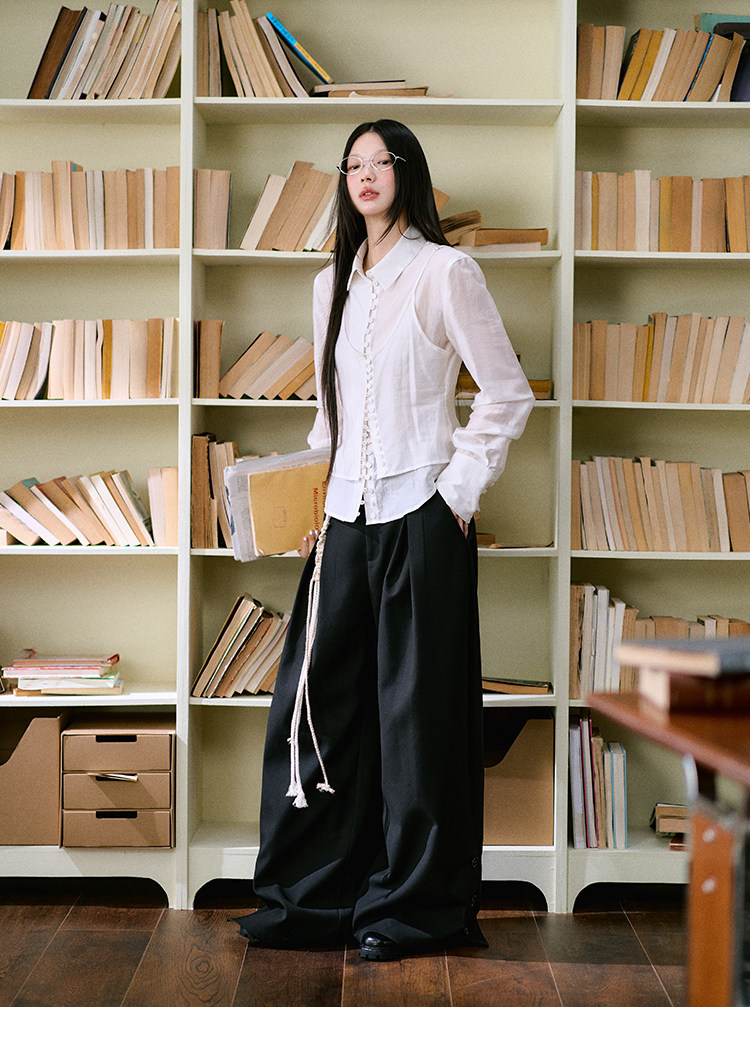 Laluneduciel Lazy Retro Drapey Wide-Leg Suit Pants Women's Winter Casual Versatile Loose Pants