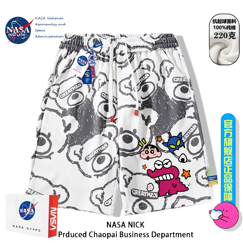Nasa American-Style Crayon Shin-Chan Cartoon Shorts for Men and Women, Summer Quick-Drying Beach Shorts, Loose Casual Couple's Five-Point Shorts