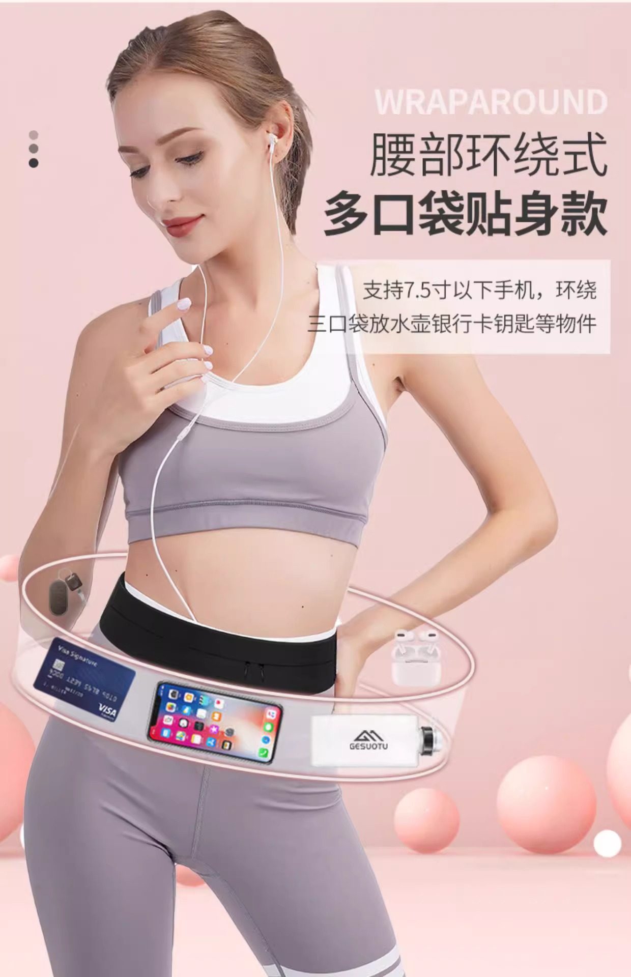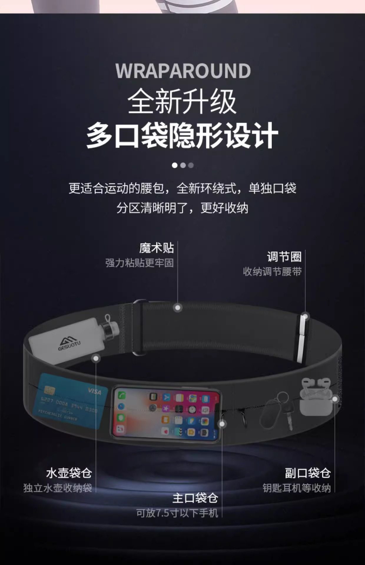 Running Waist Bag, Sports Jogging Phone Bag, Women's Velcro Body Bag, Men's Invisible Multi-Functional Equipment Bag, Waterproof and Lightweight
