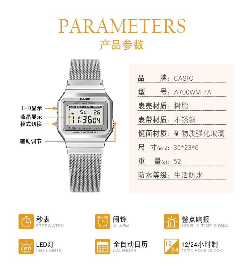 Casio Retro Small Square Watch A700W-1A
