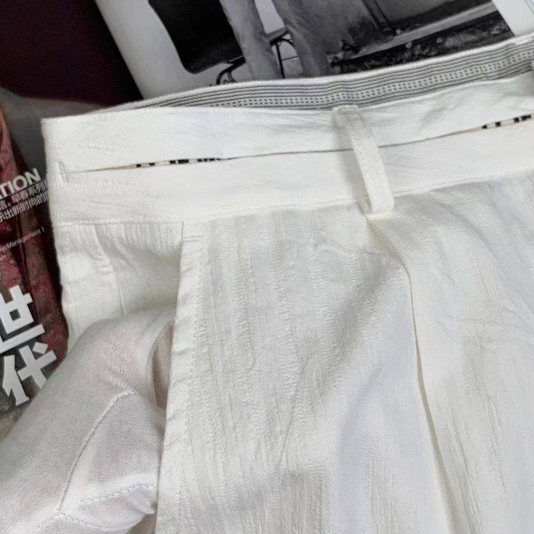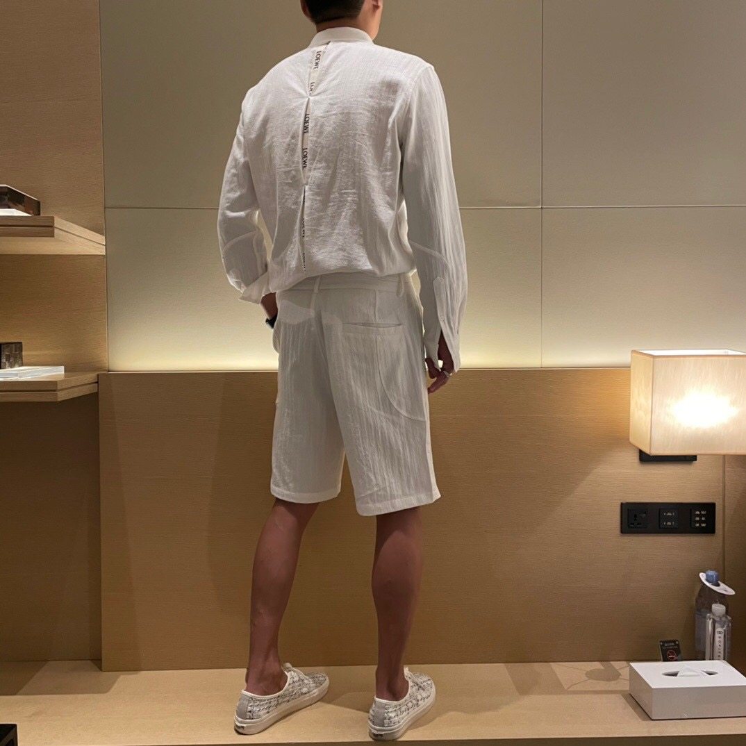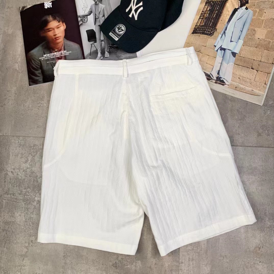 Trendy Brand Suit for Men 2024 Spring and Summer New Cotton and Linen Shorts Shirt Five-Point Pants ins White Casual Suit