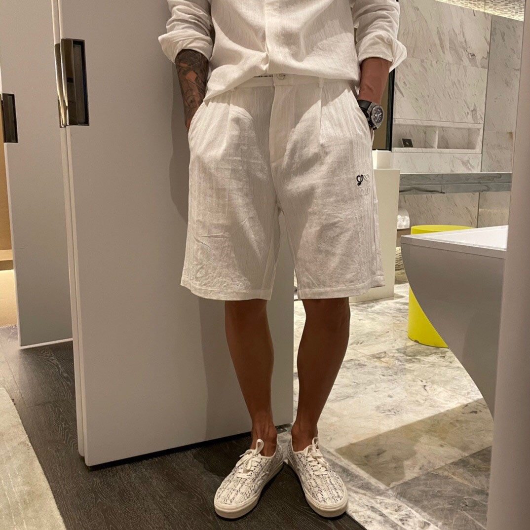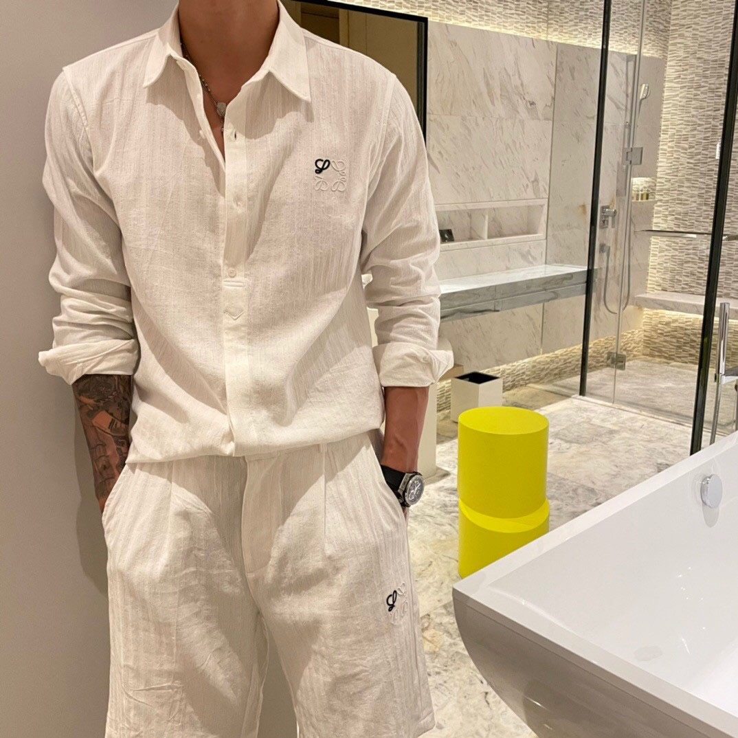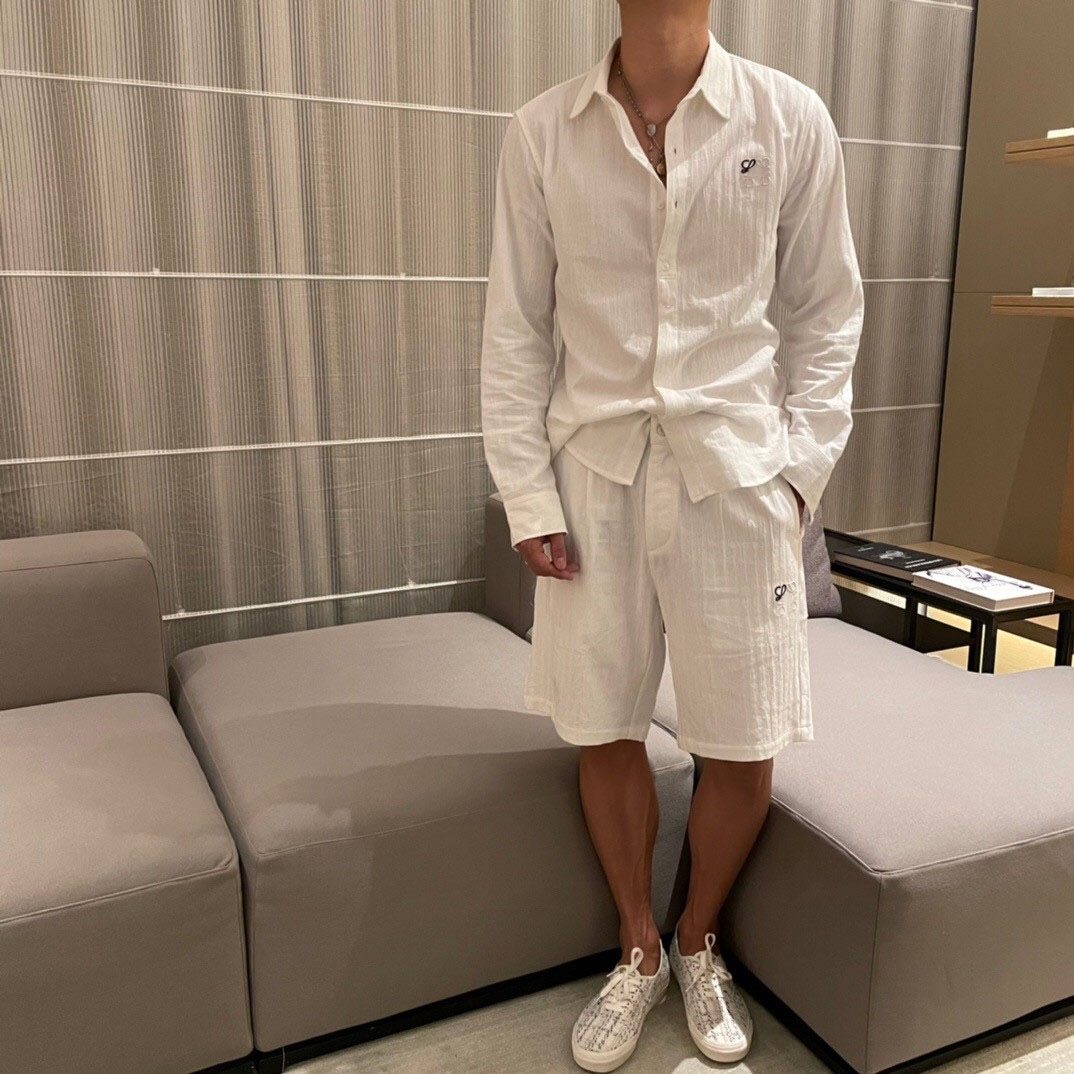 Trendy Brand Suit for Men 2024 Spring and Summer New Cotton and Linen Shorts Shirt Five-Point Pants ins White Casual Suit