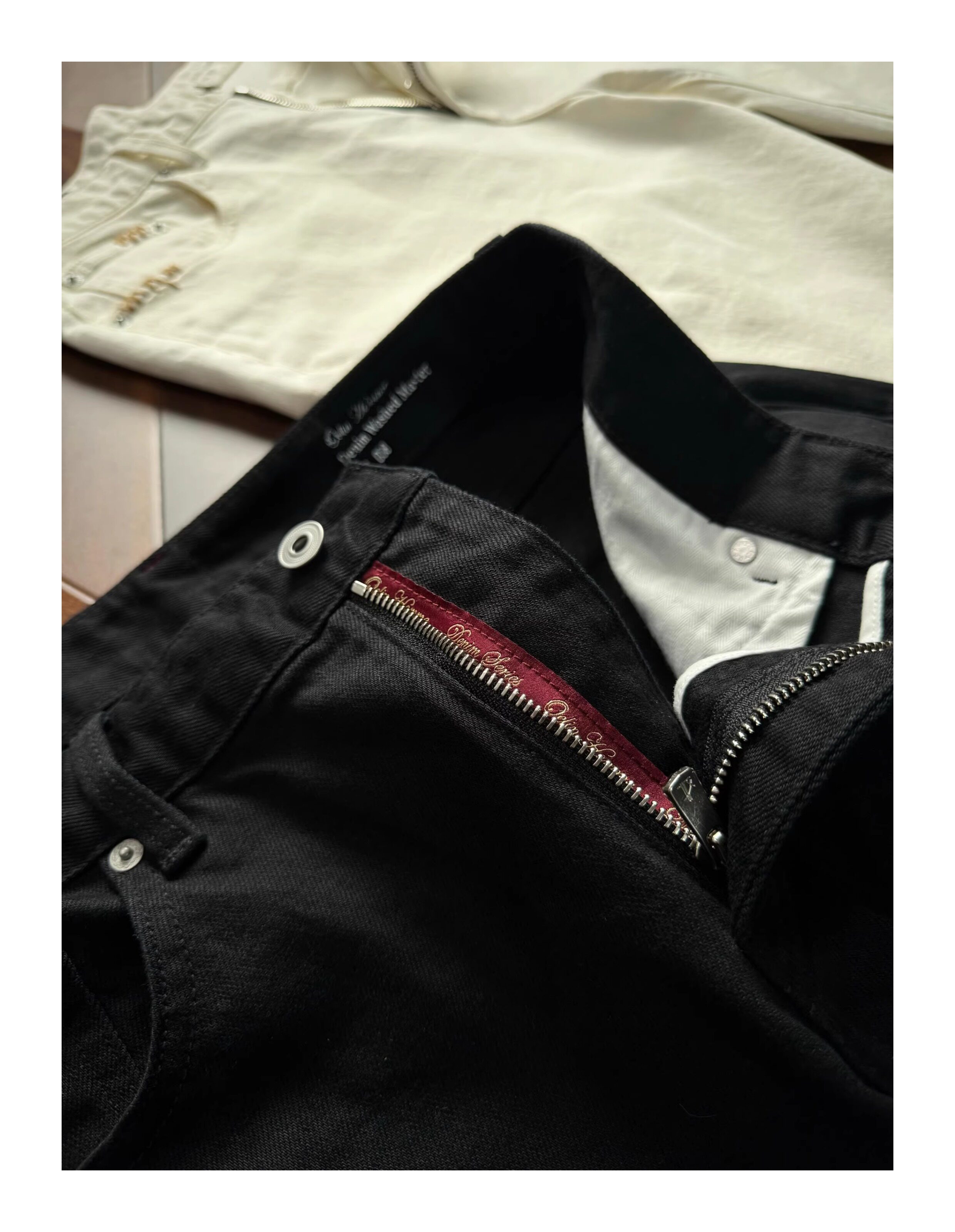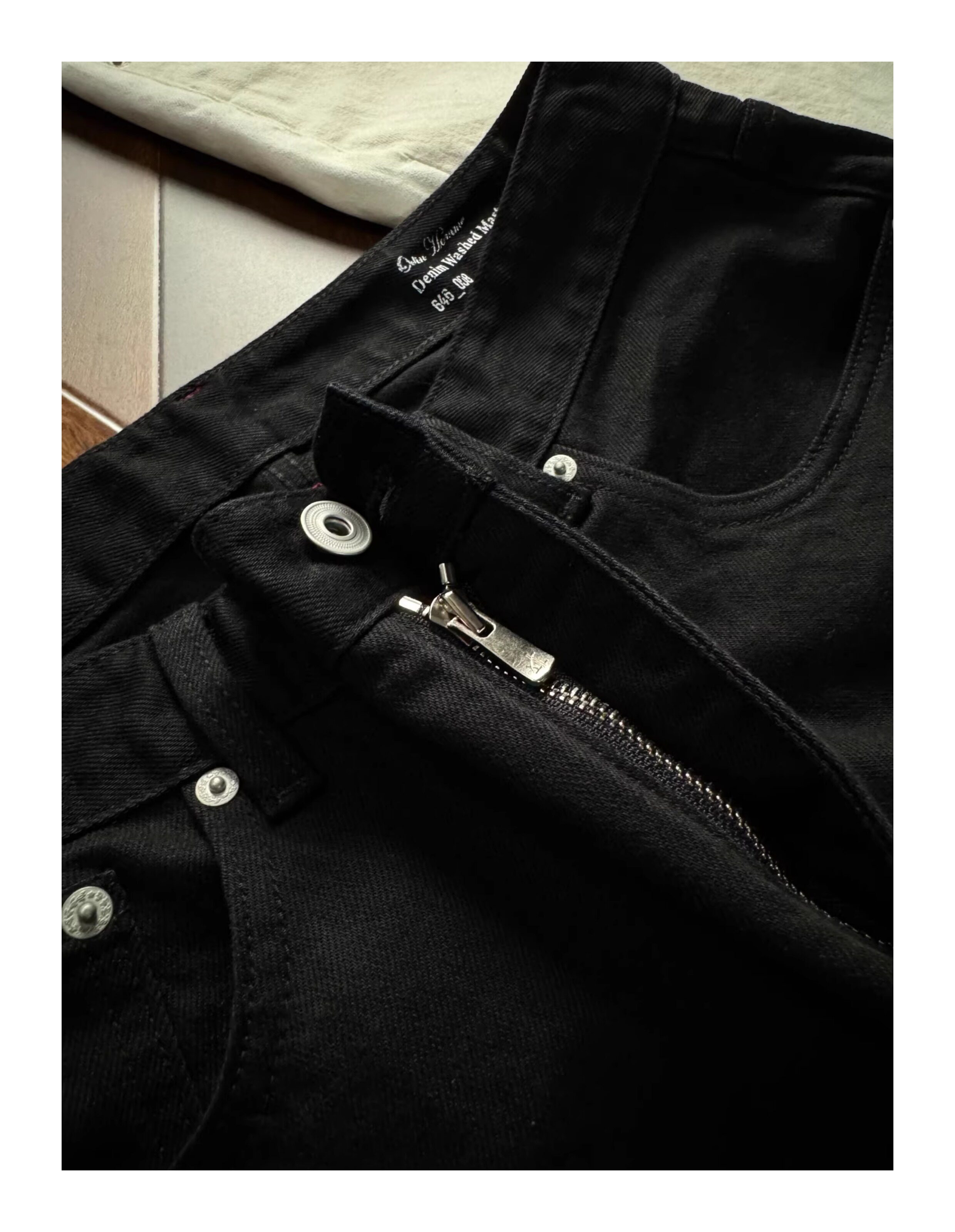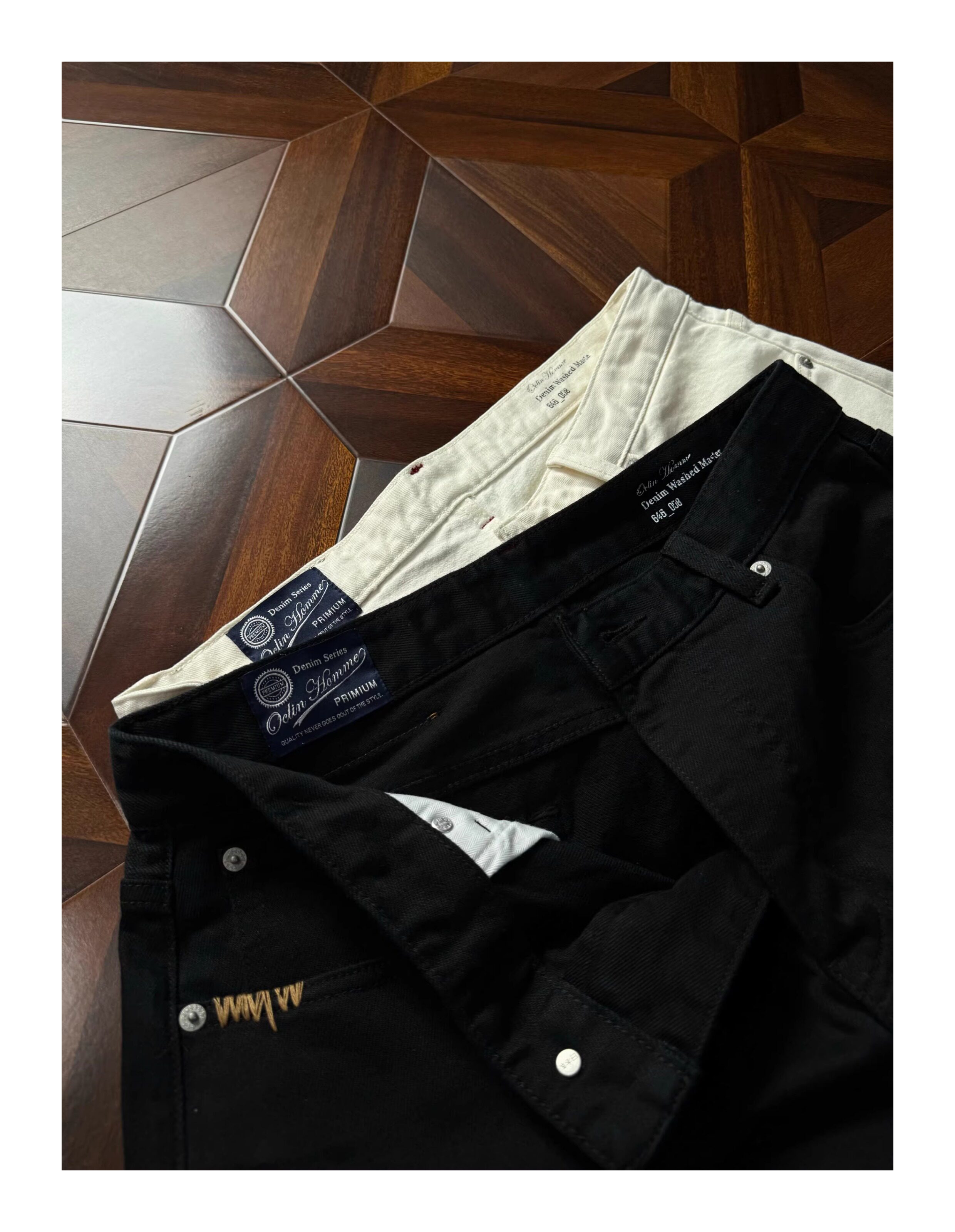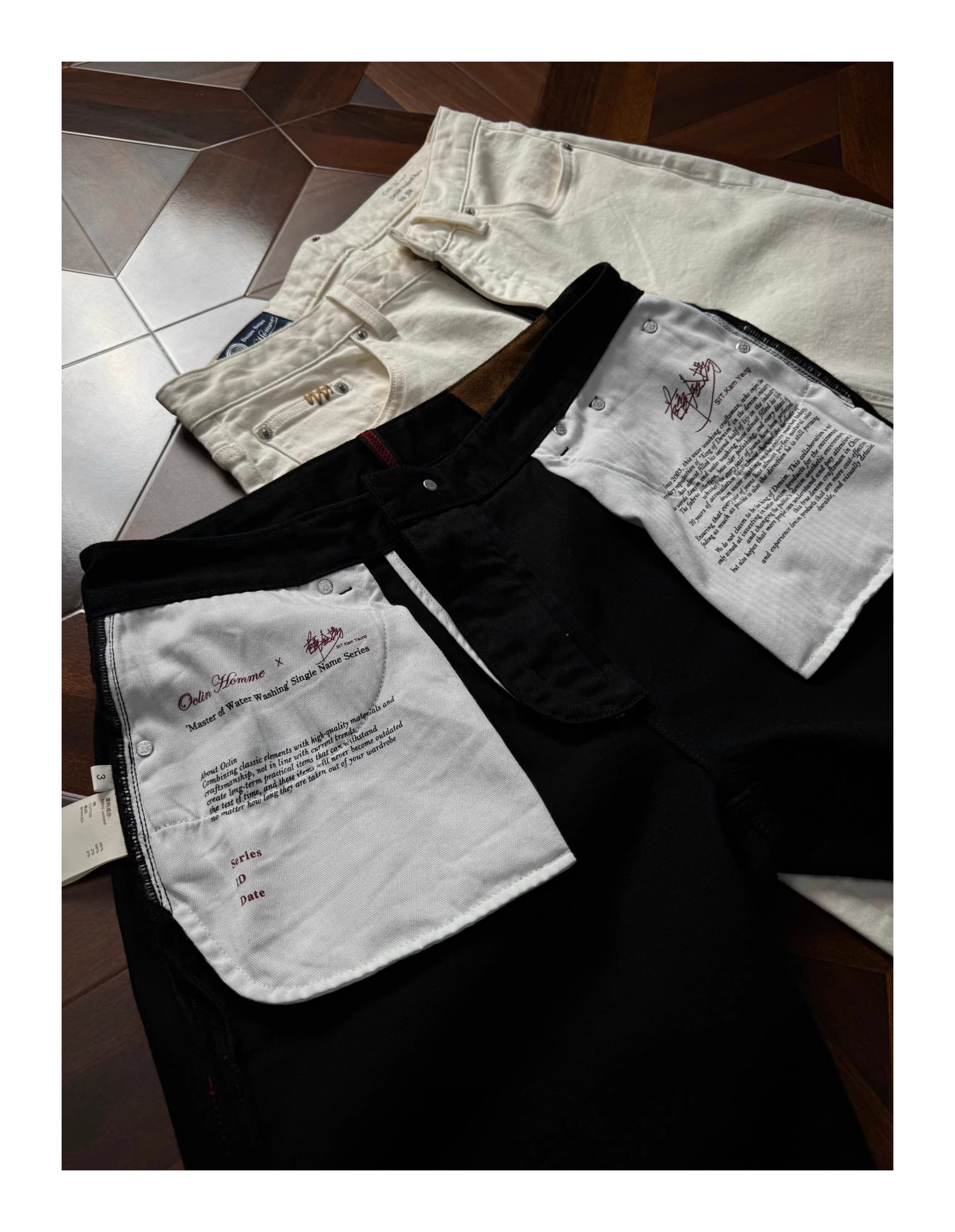 Oclin Master Collaboration 008 Hand-Sewn Needle Black and White Kanglong Cow 646 Lightly Washed Slightly Stretchy Textured Jeans
