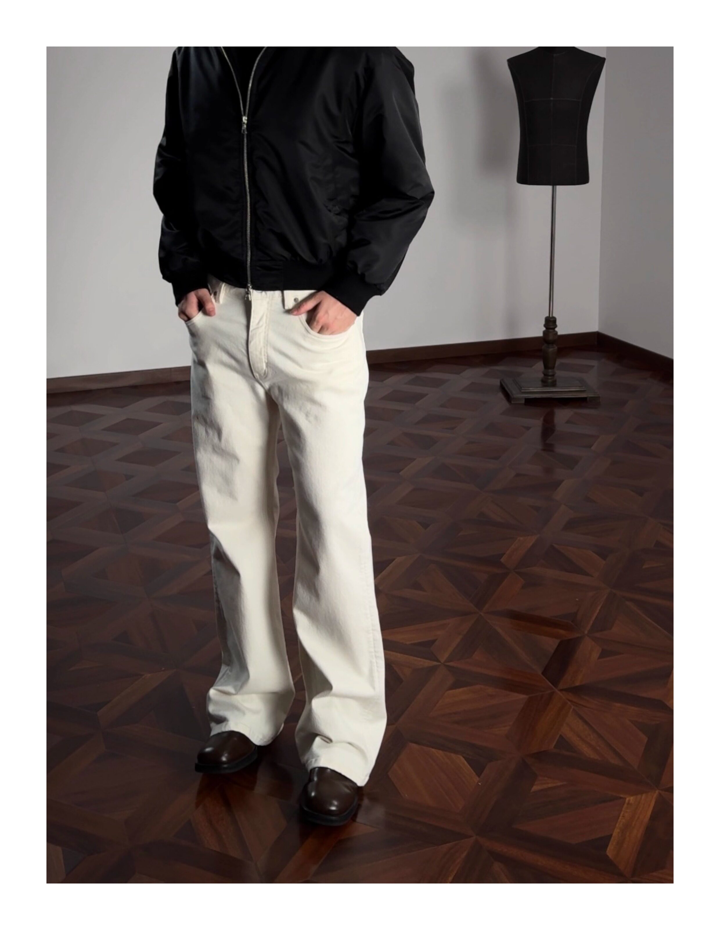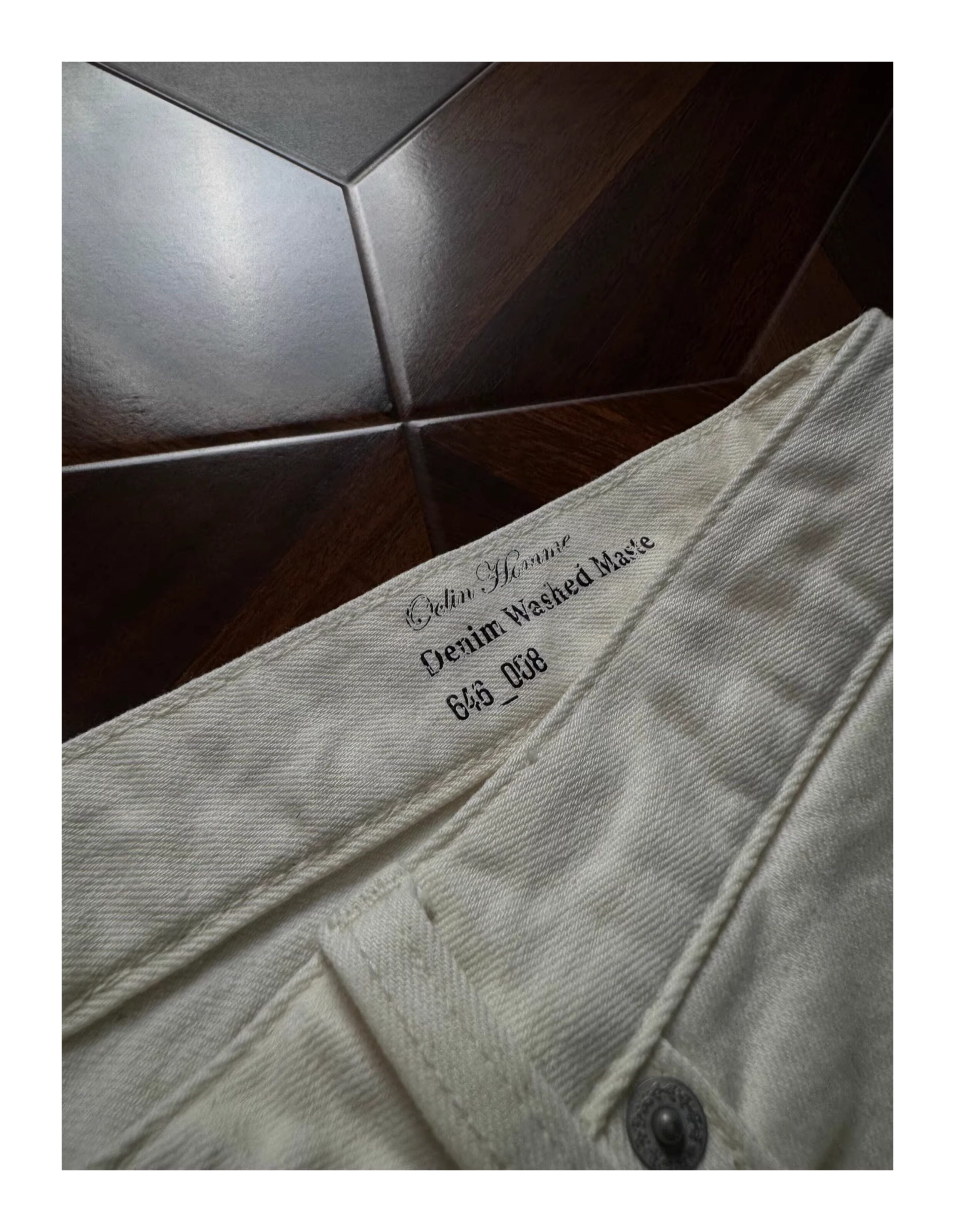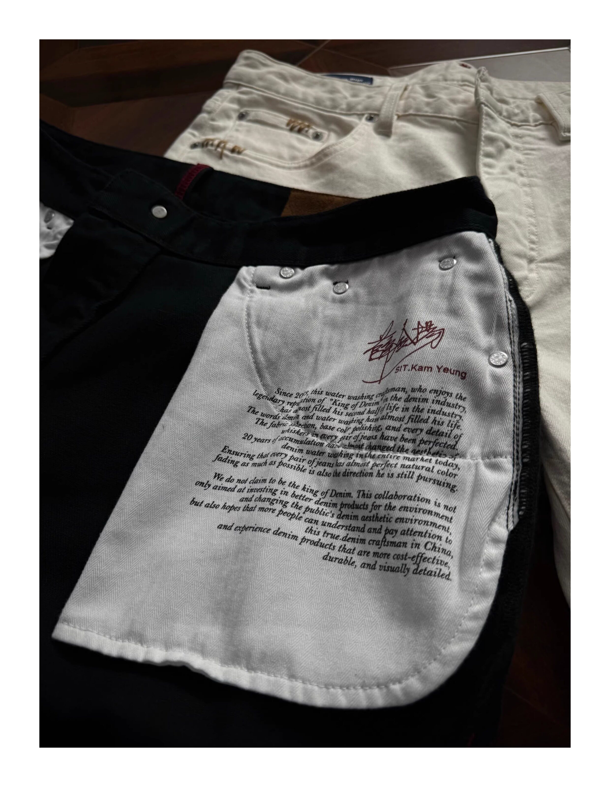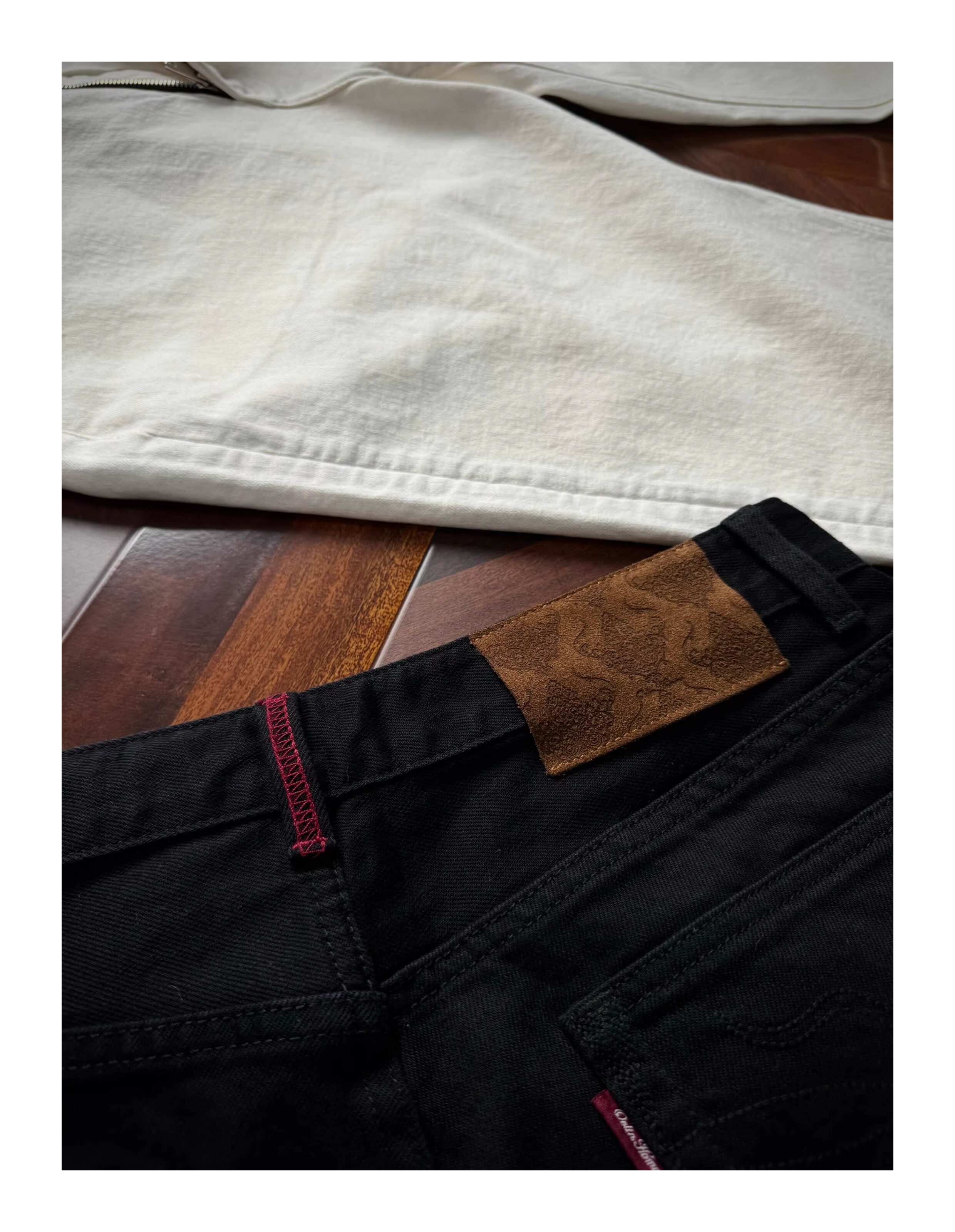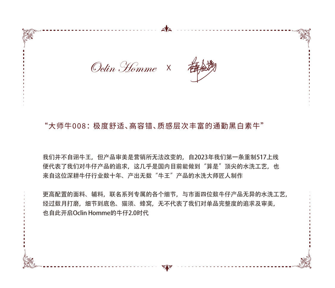 Oclin Master Collaboration 008 Hand-Sewn Needle Black and White Kanglong Cow 646 Lightly Washed Slightly Stretchy Textured Jeans