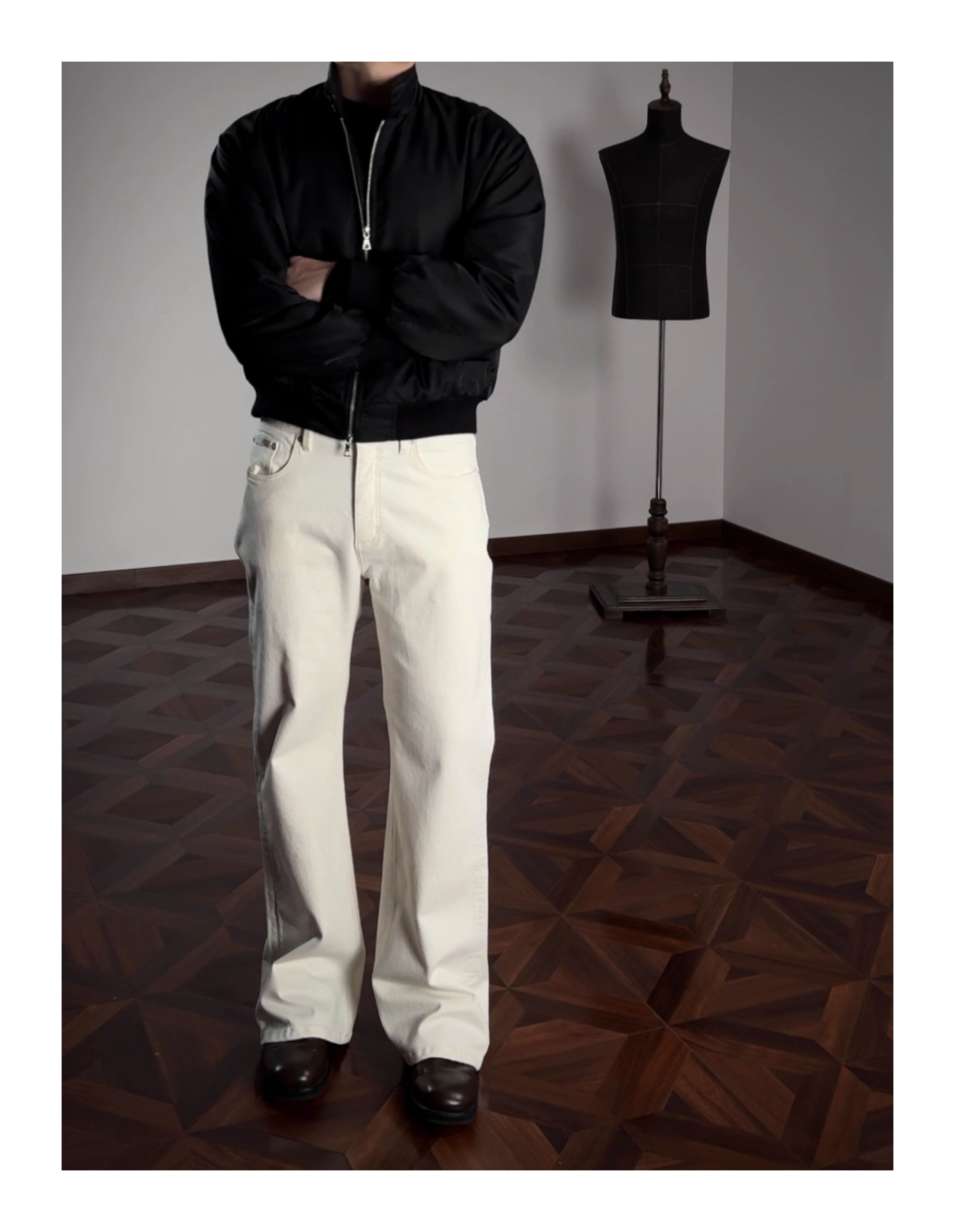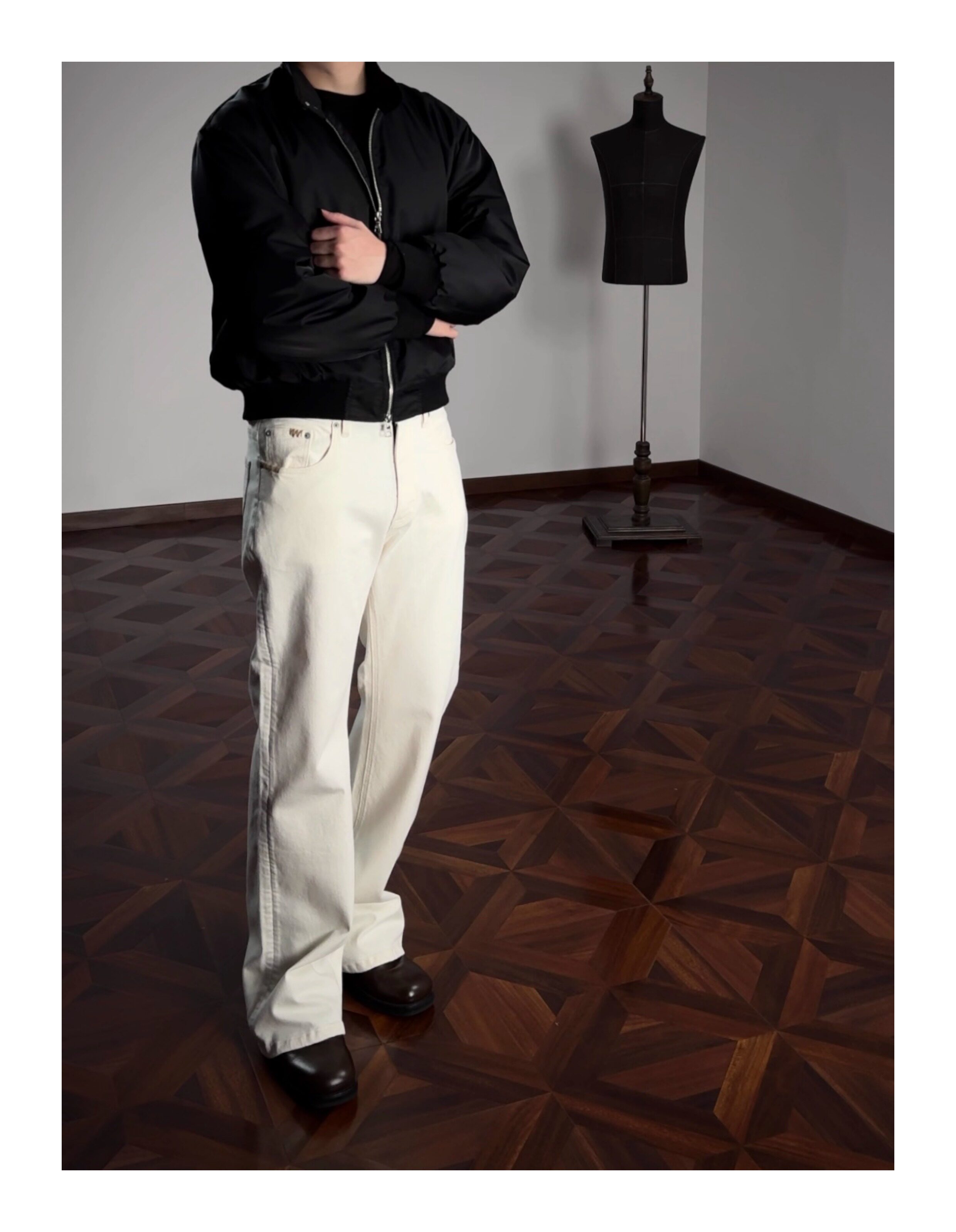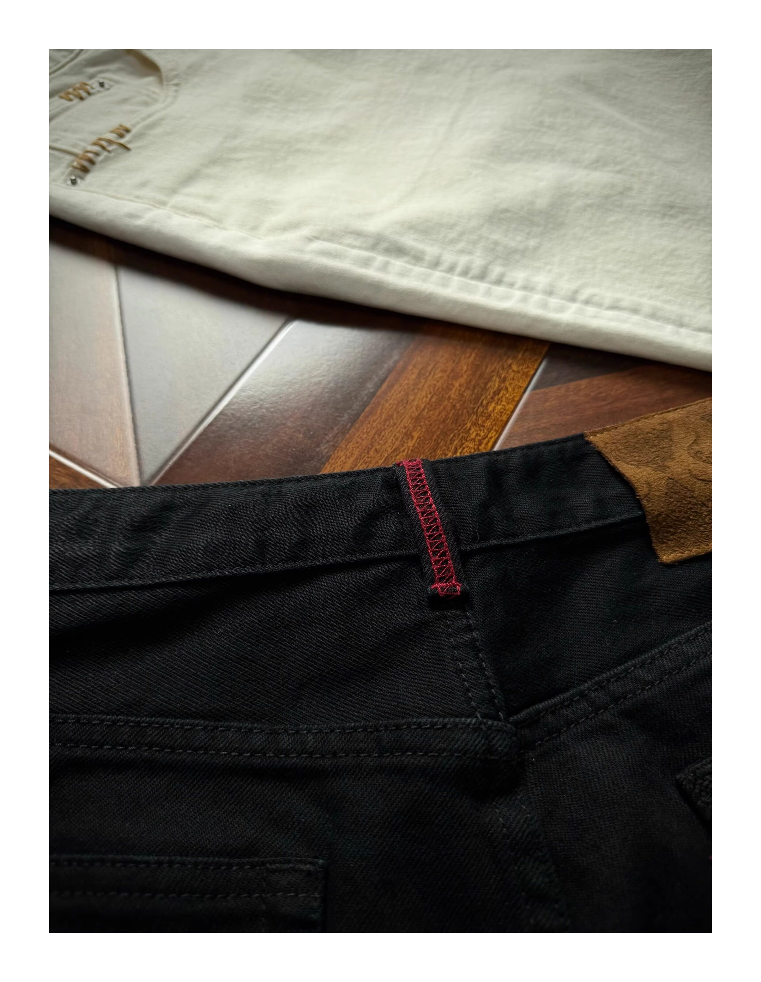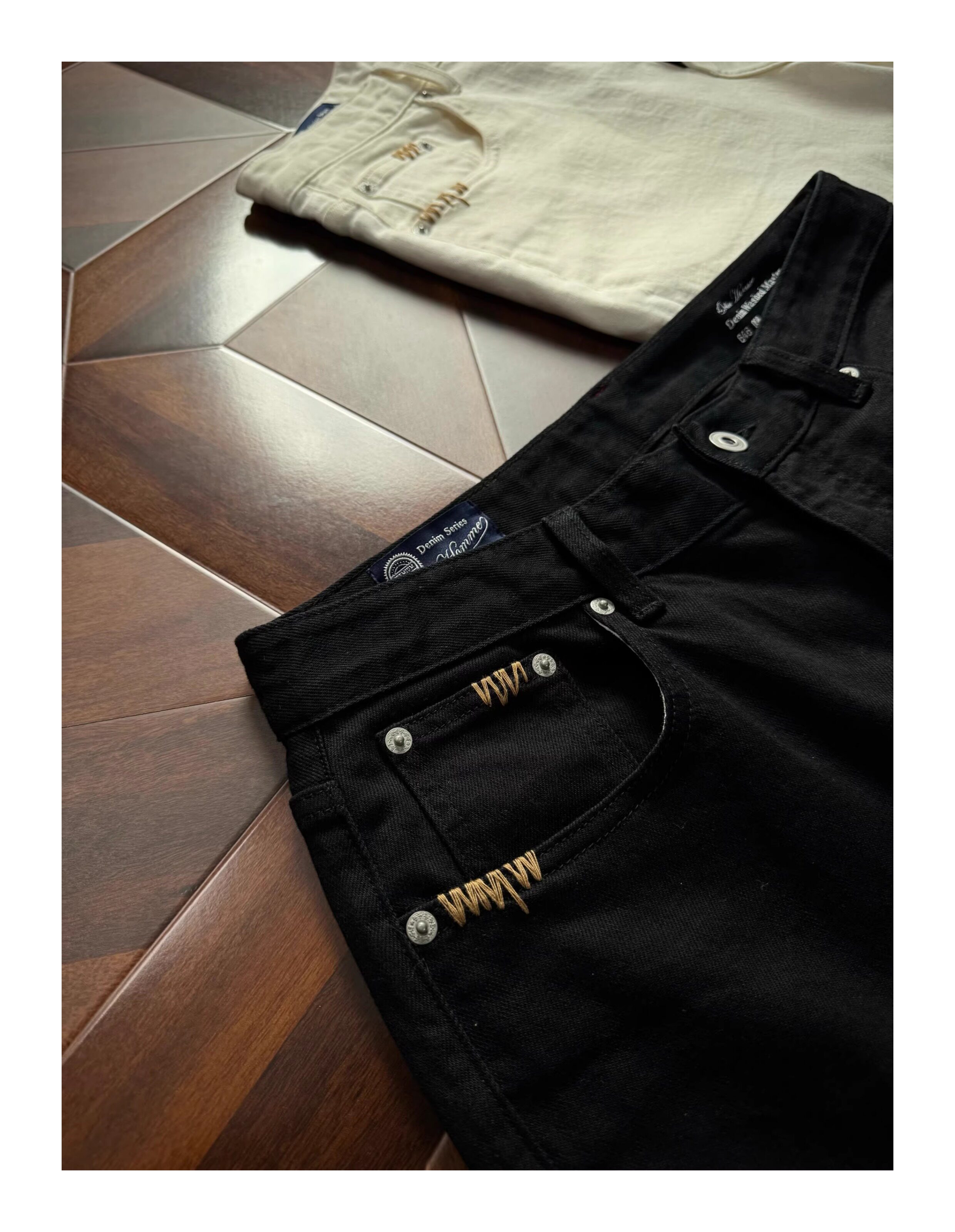 Oclin Master Collaboration 008 Hand-Sewn Needle Black and White Kanglong Cow 646 Lightly Washed Slightly Stretchy Textured Jeans