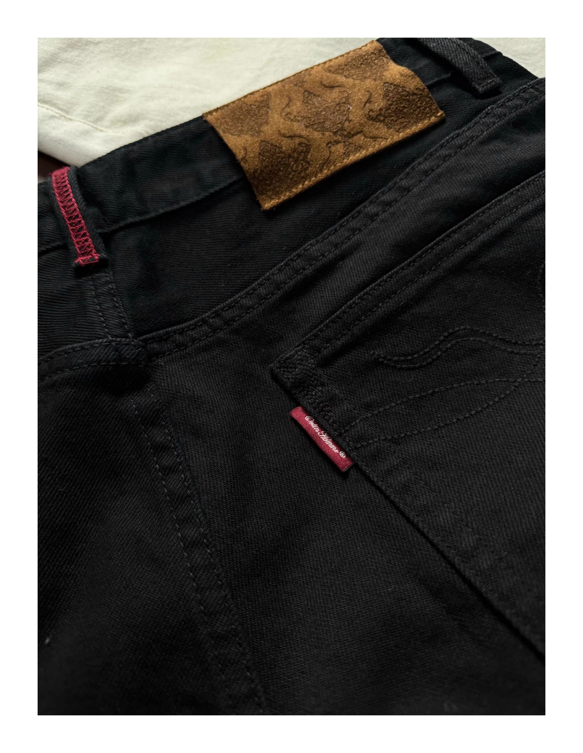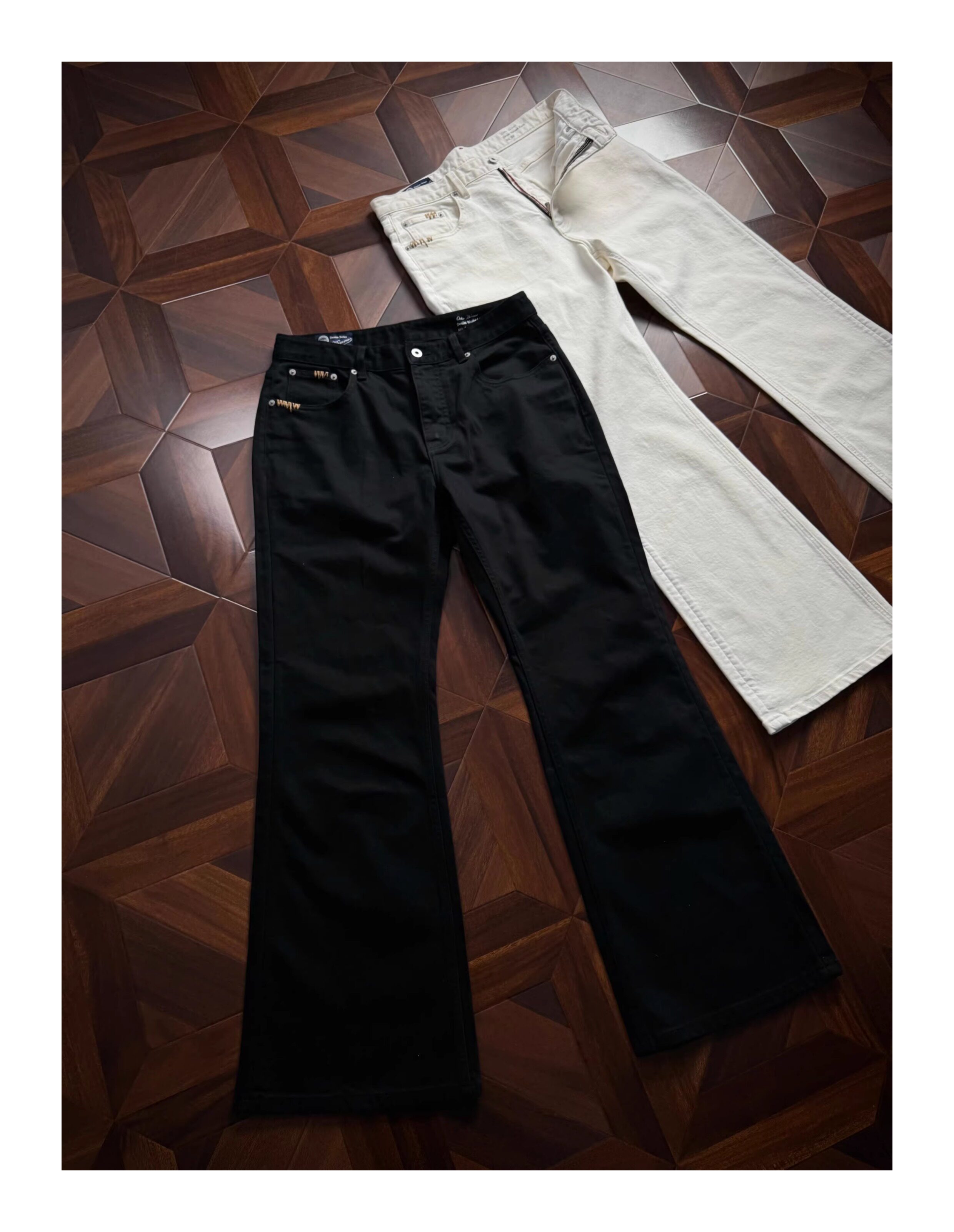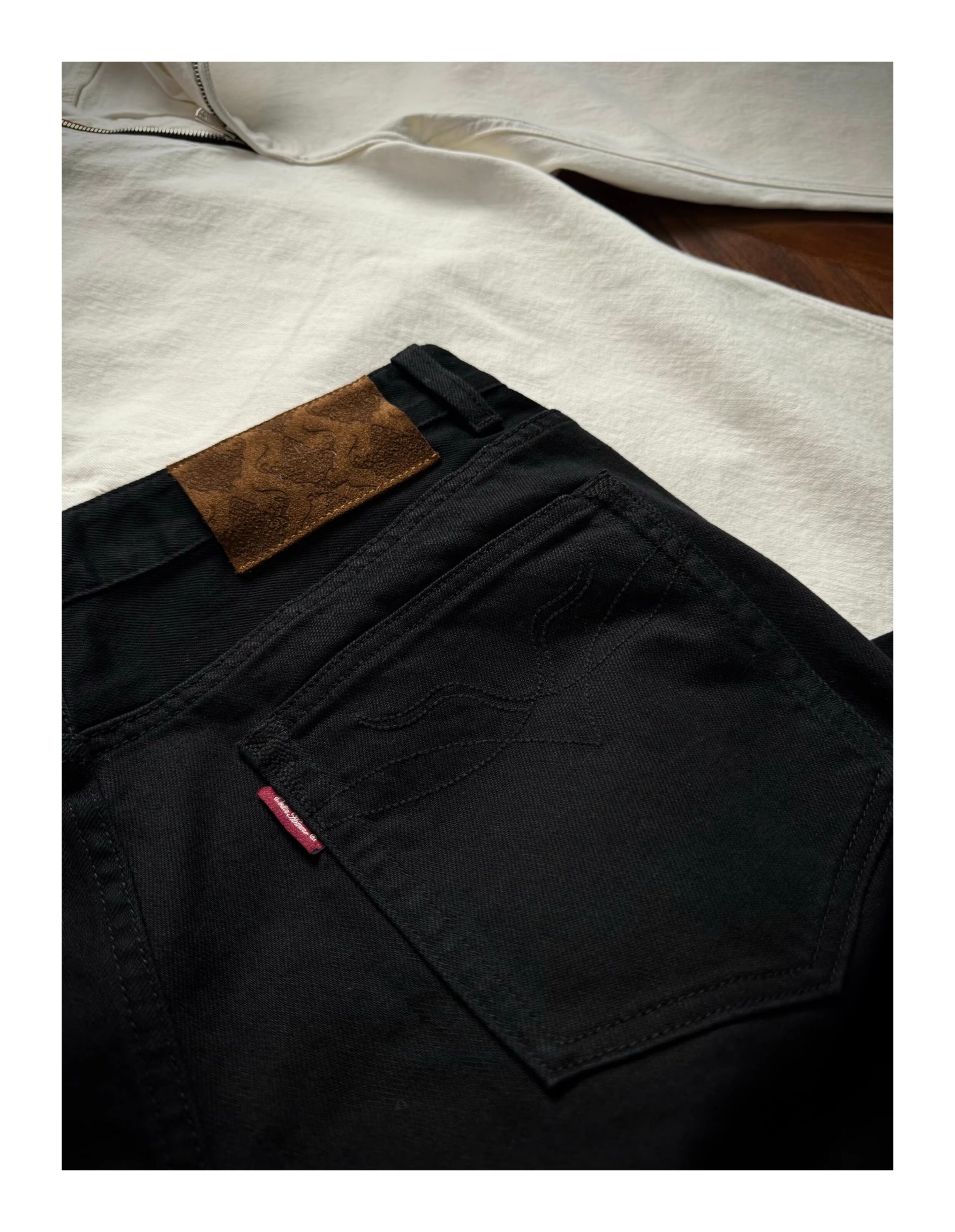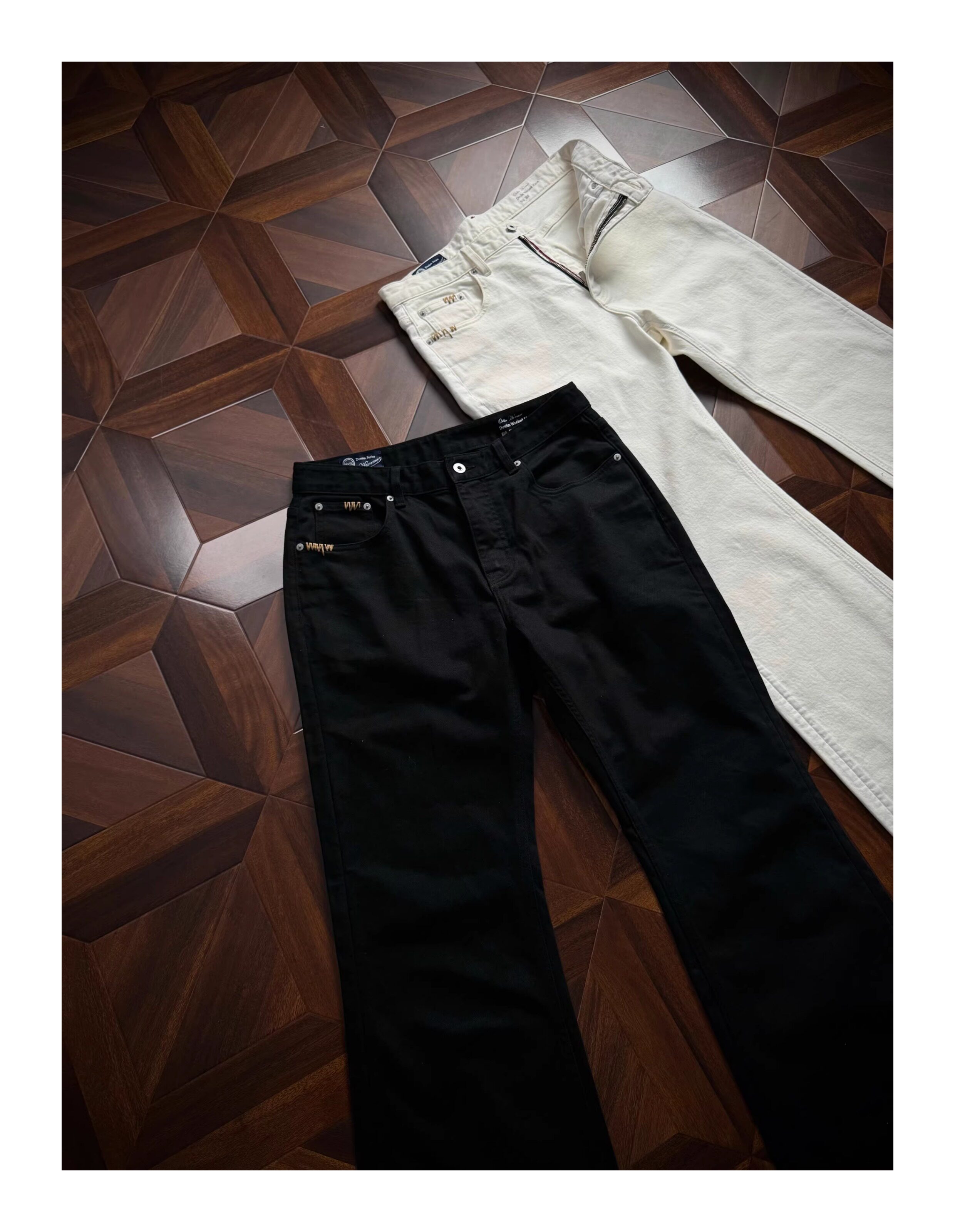Oclin Master Collaboration 008 Hand-Sewn Needle Black and White Kanglong Cow 646 Lightly Washed Slightly Stretchy Textured Jeans