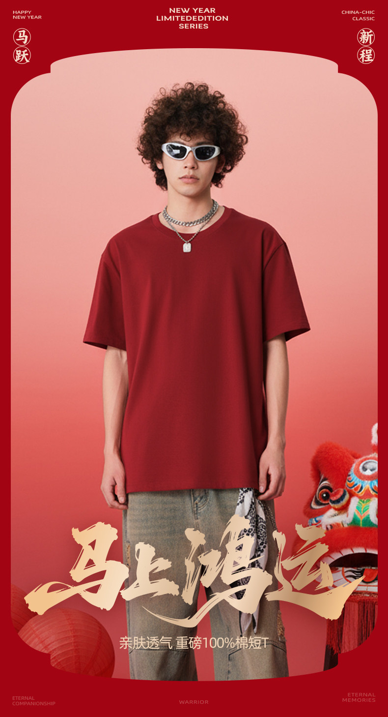 Pull Back to the Past 2026 Red Short-Sleeved T-Shirt for Men, New Model for the Year of the Horse, Zodiac Year Clothing, Pure Cotton, Large Size Men's Half-Sleeve