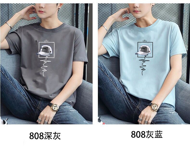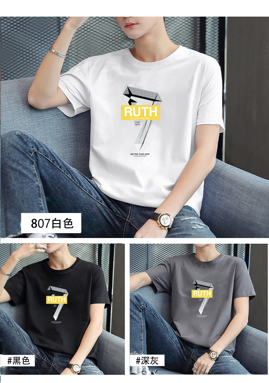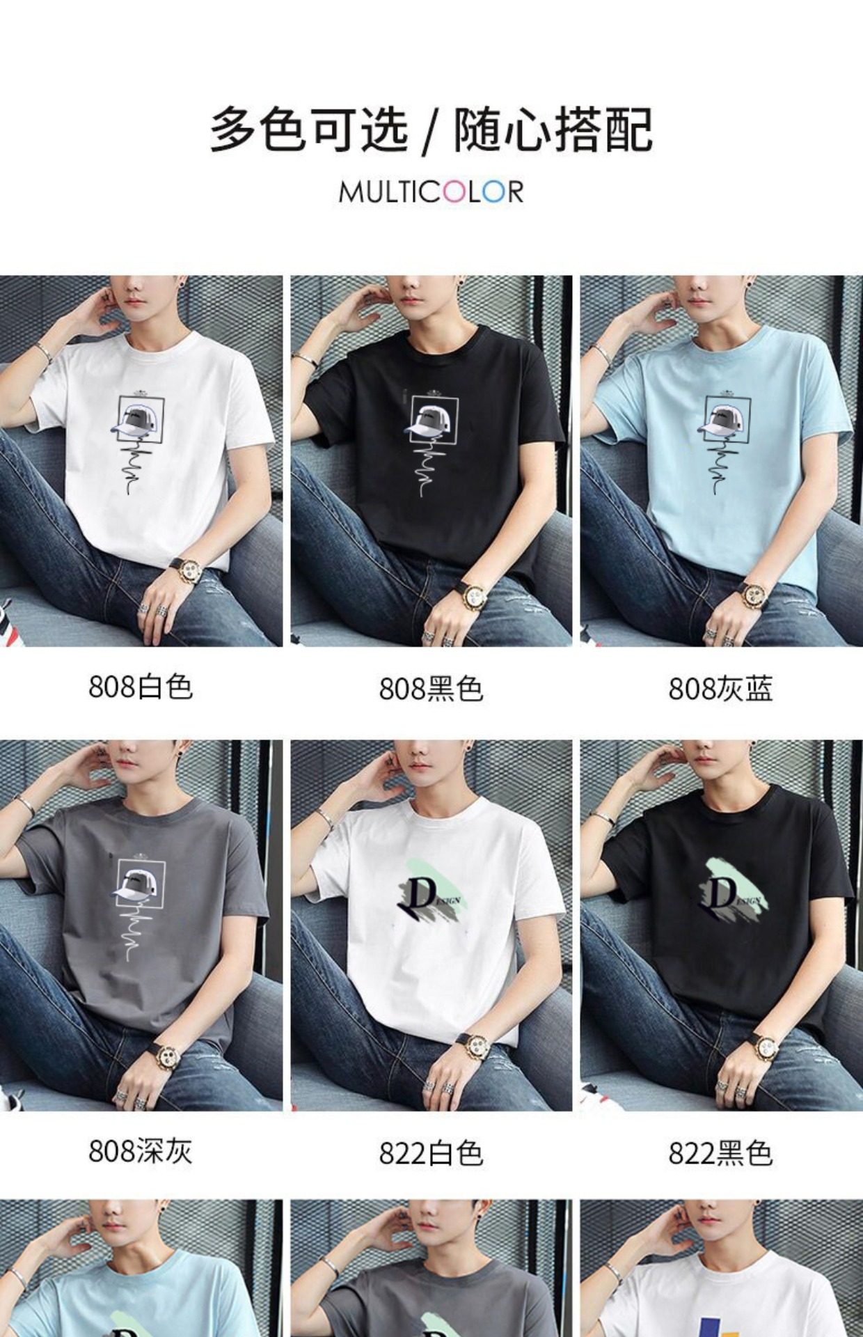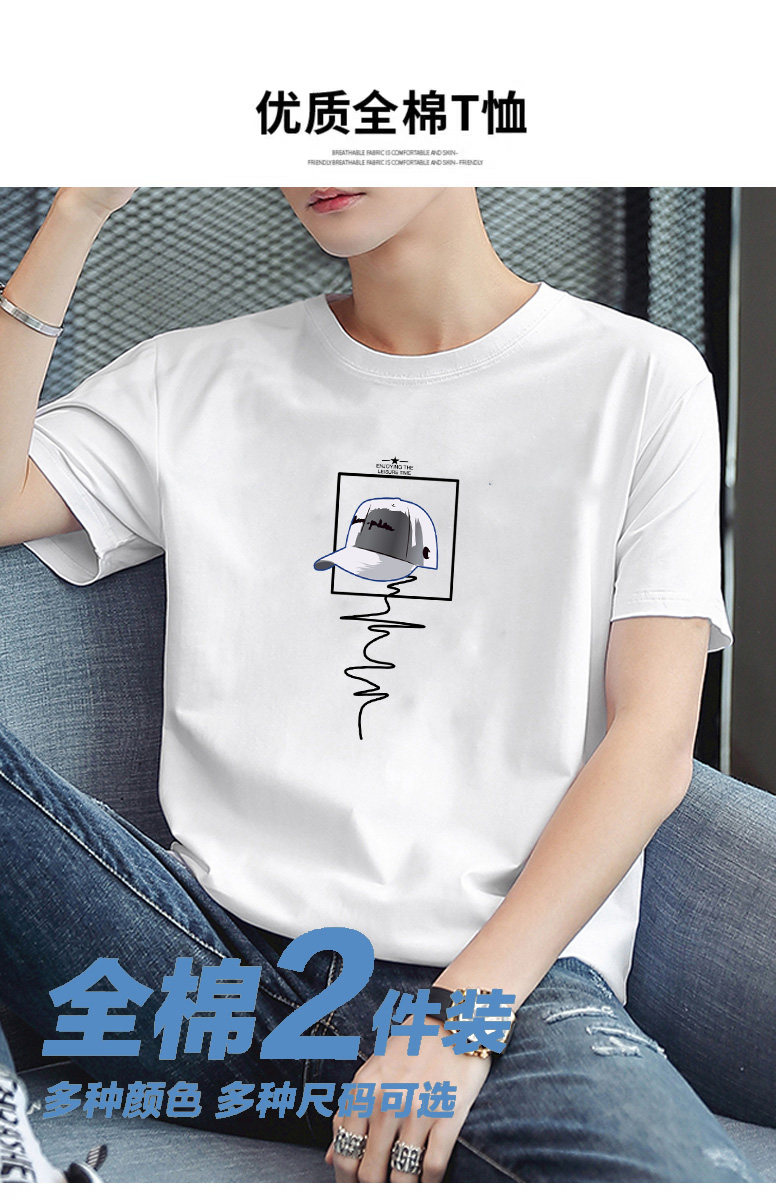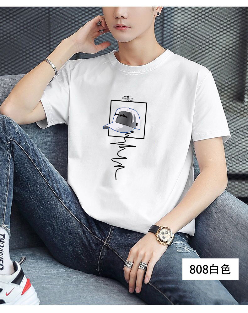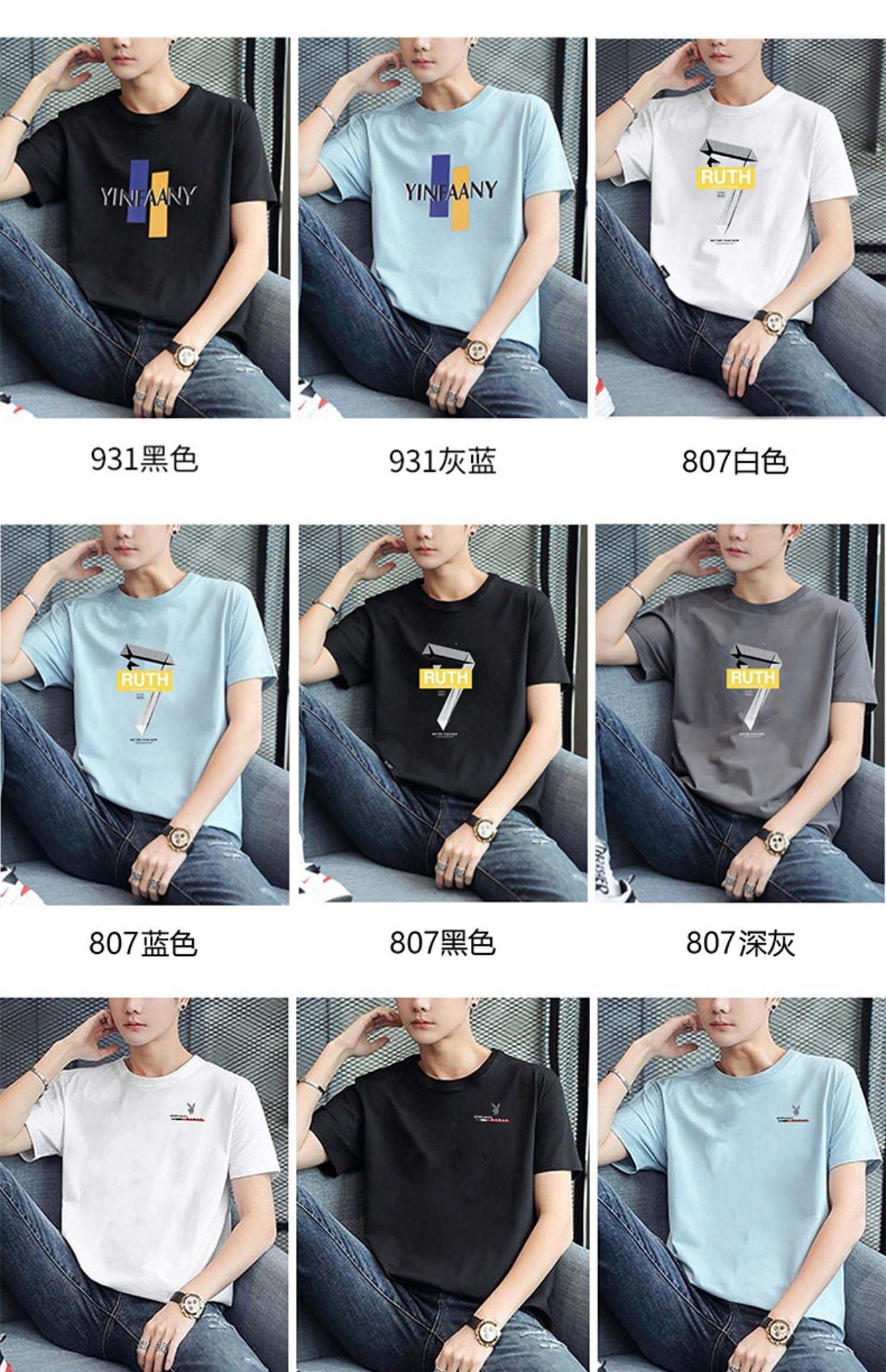 4 Pieces of Playboy 2025 Men's Short-Sleeve T-Shirts, Men's Pure White Versatile Pure Cotton Crew Neck Undershirts, Half-Sleeve Clothing