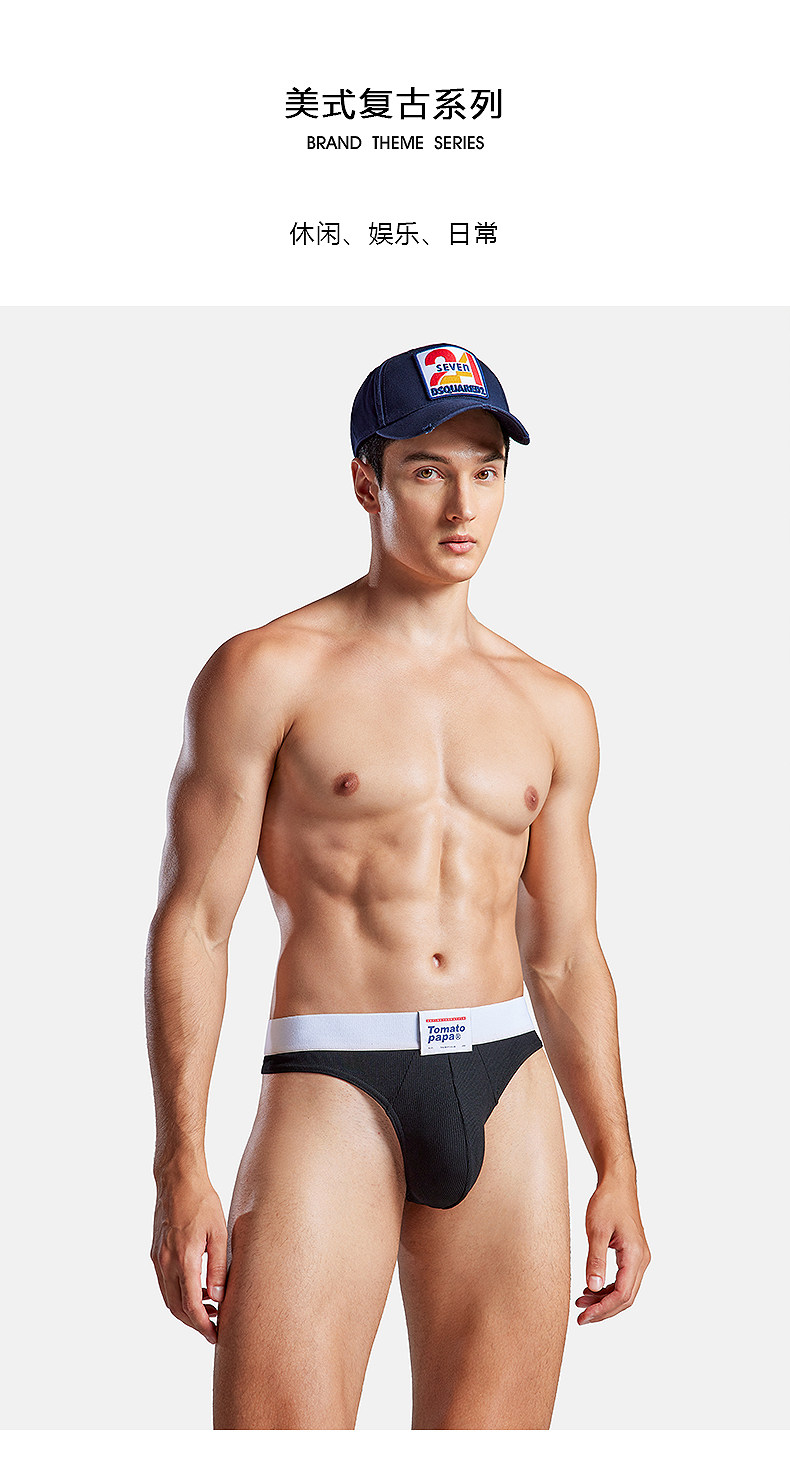 Tomatopapa American Style 1980 Series Thong Men's Simple Sexy Underwear Ribbed Basic Single Thong Underwear
