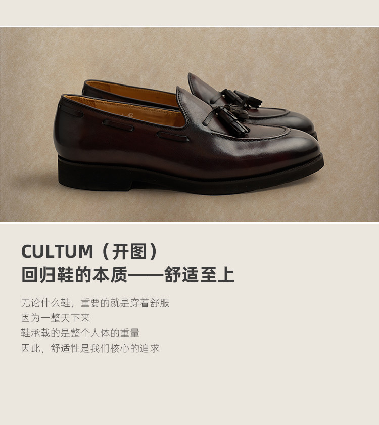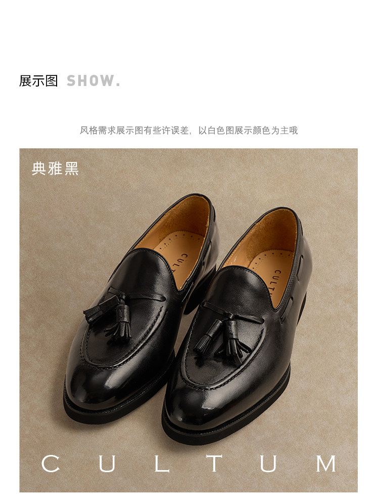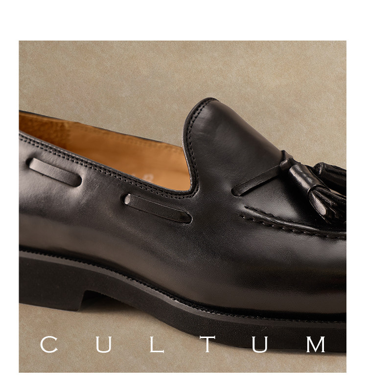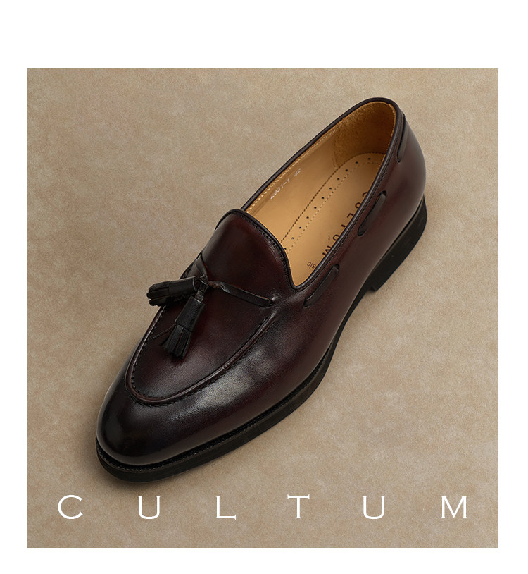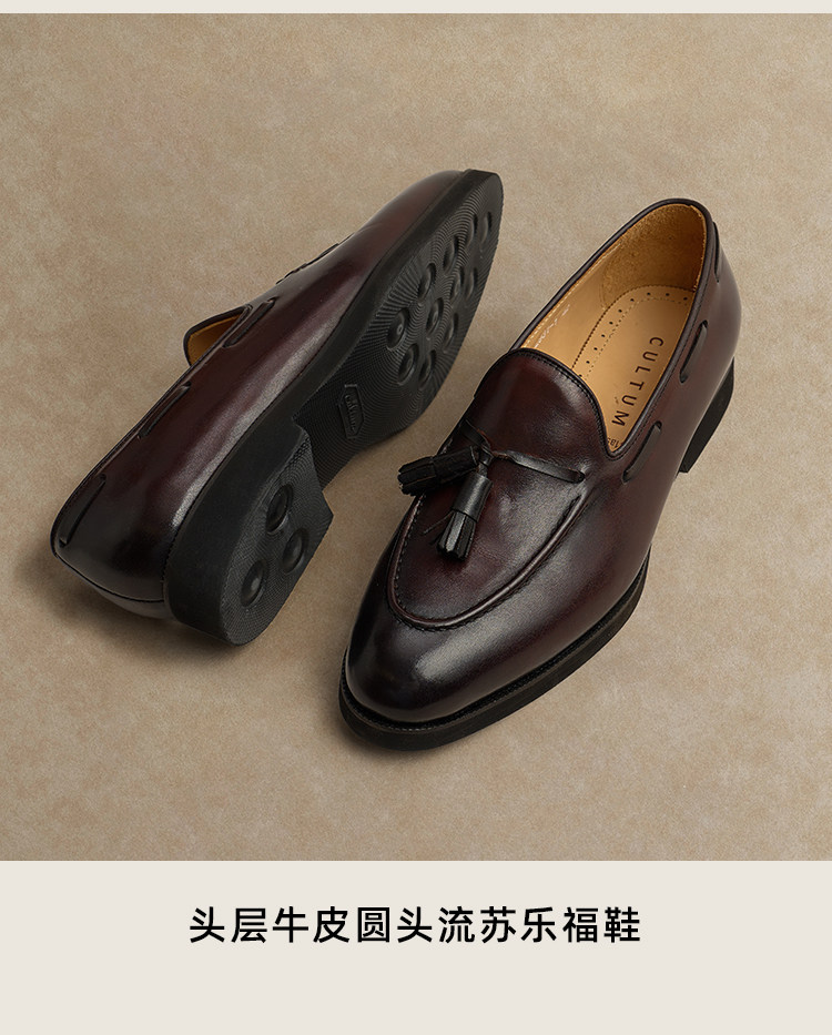 【First Layer Cowhide】Cultum Classic Versatile Round-Toe Tassel Loafers Handcrafted with Color Brushing Men's Flat Leather Shoes