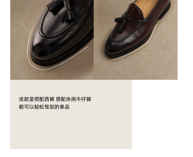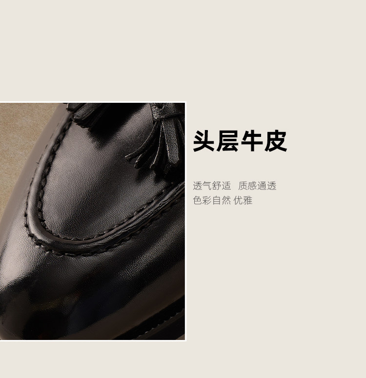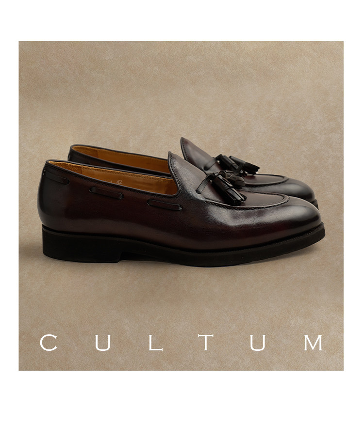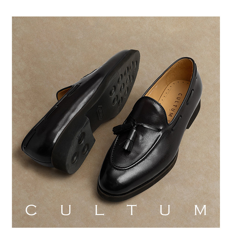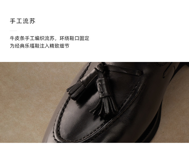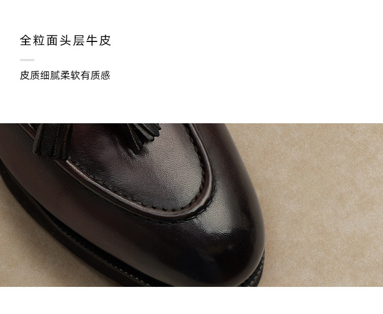 【First Layer Cowhide】Cultum Classic Versatile Round-Toe Tassel Loafers Handcrafted with Color Brushing Men's Flat Leather Shoes