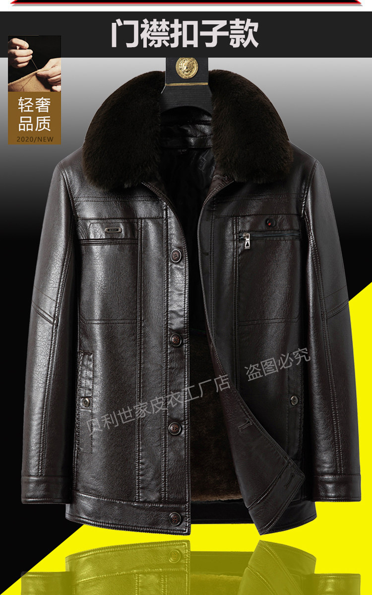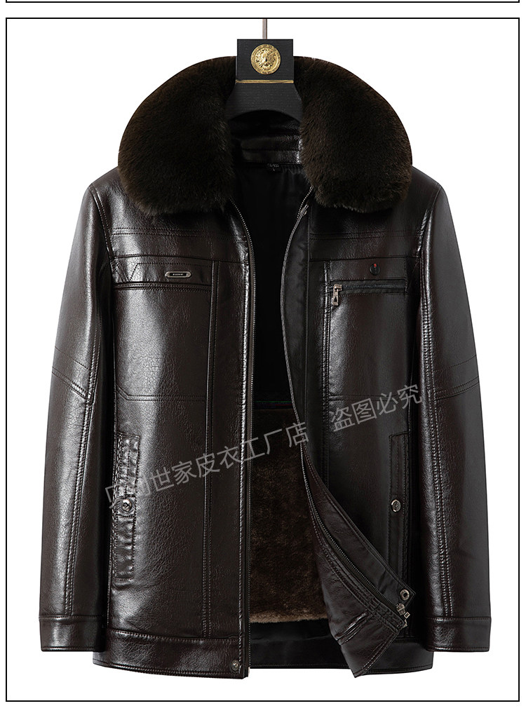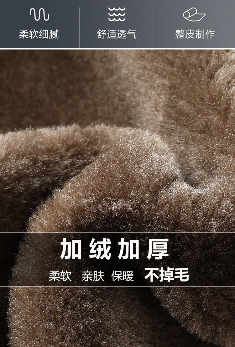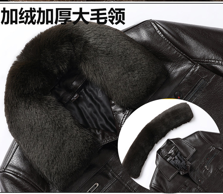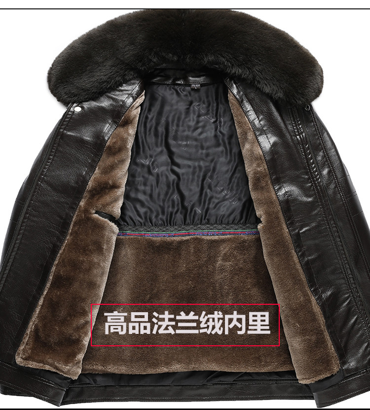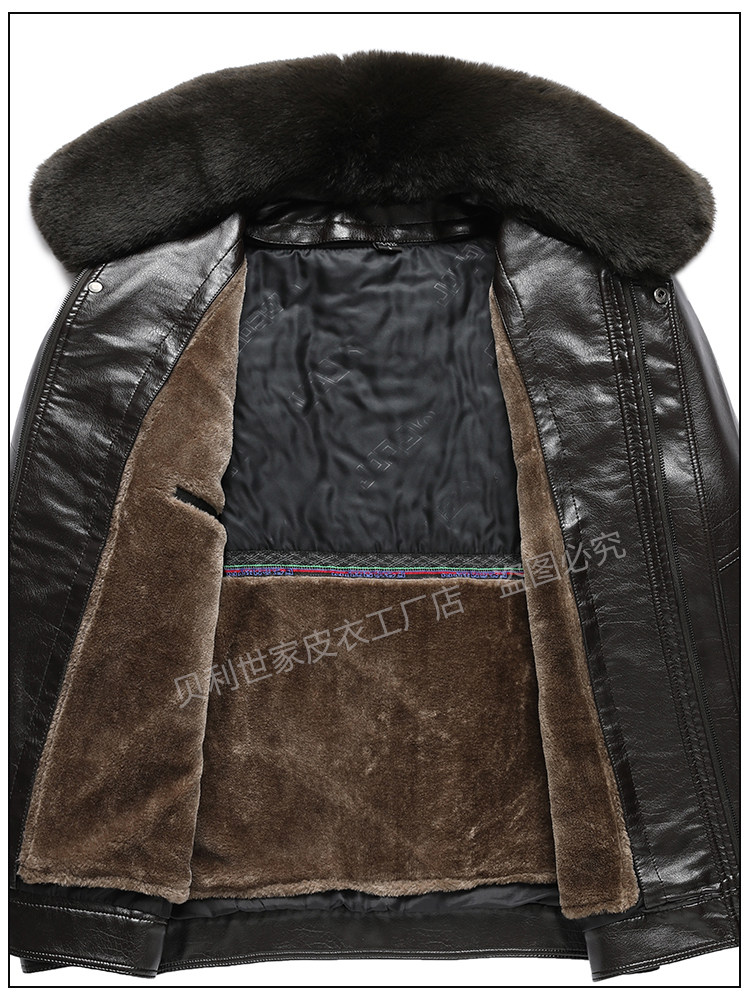 Woodpecker Leather Jacket for Men, Middle-Aged and Elderly, Genuine Sheep Leather Jacket, Autumn and Winter Fleece-Lined and Thickened, Fur Integrated Leather Jacket
